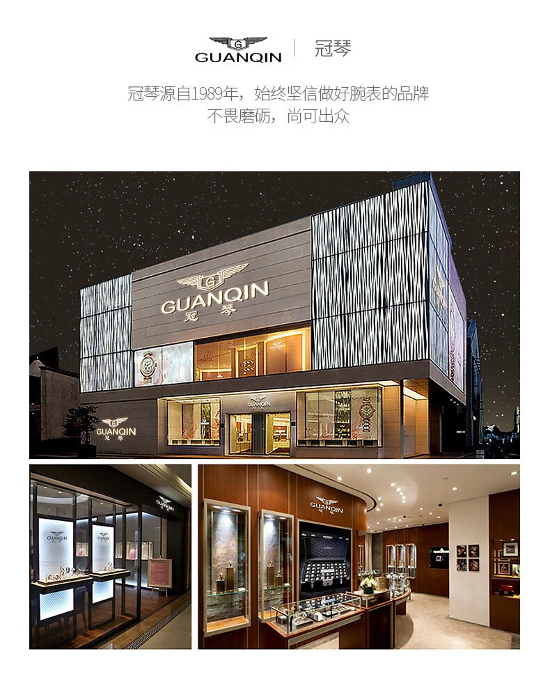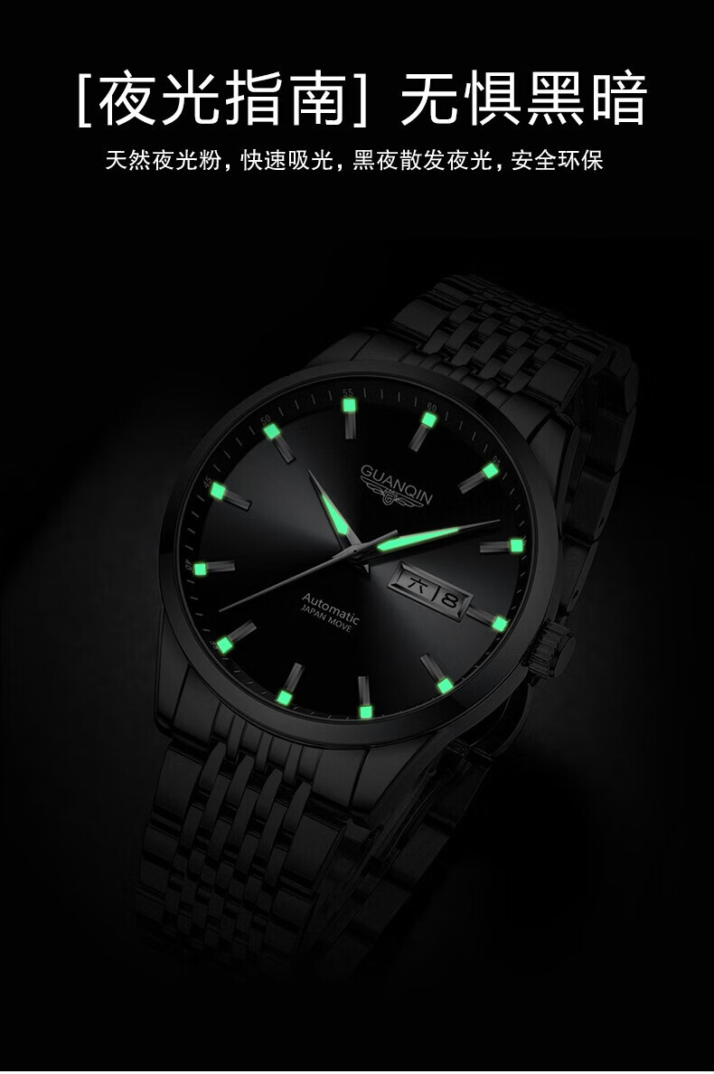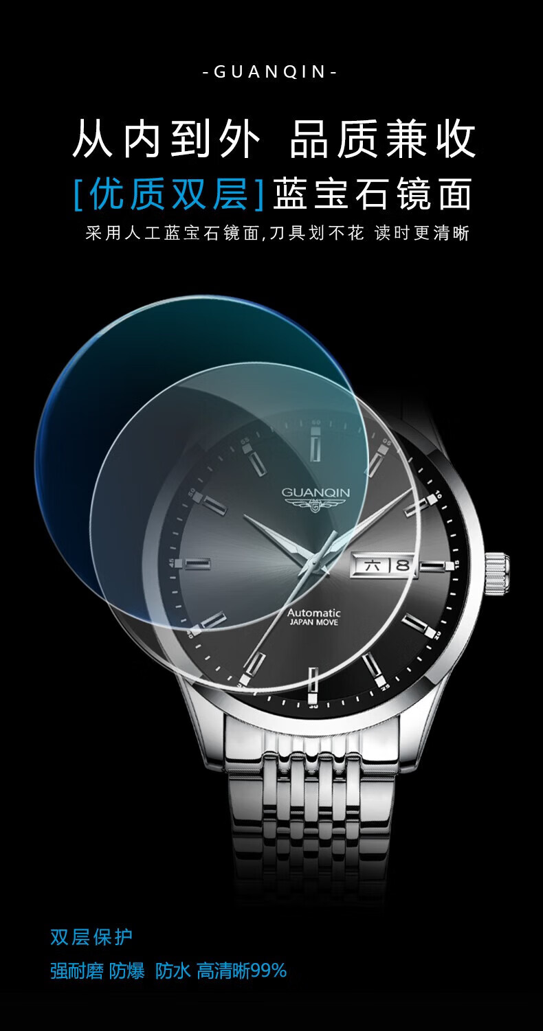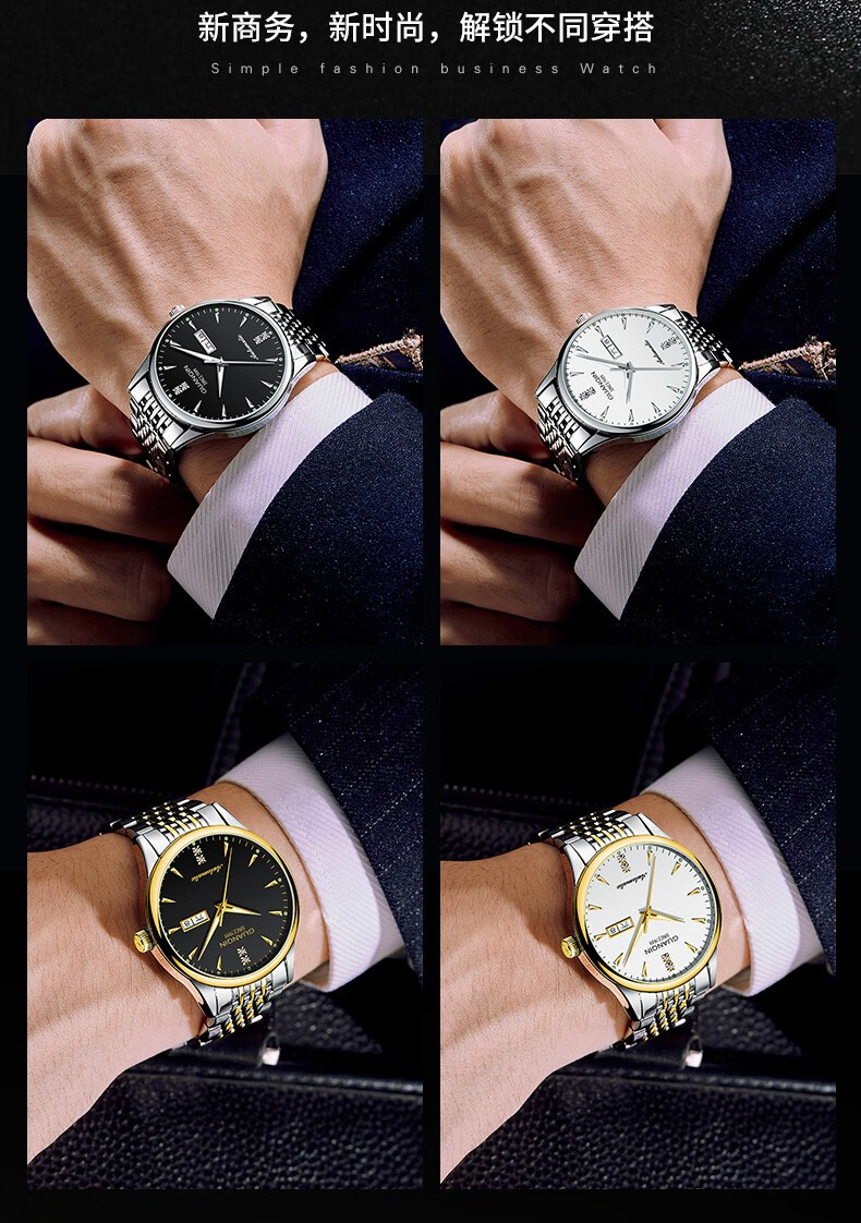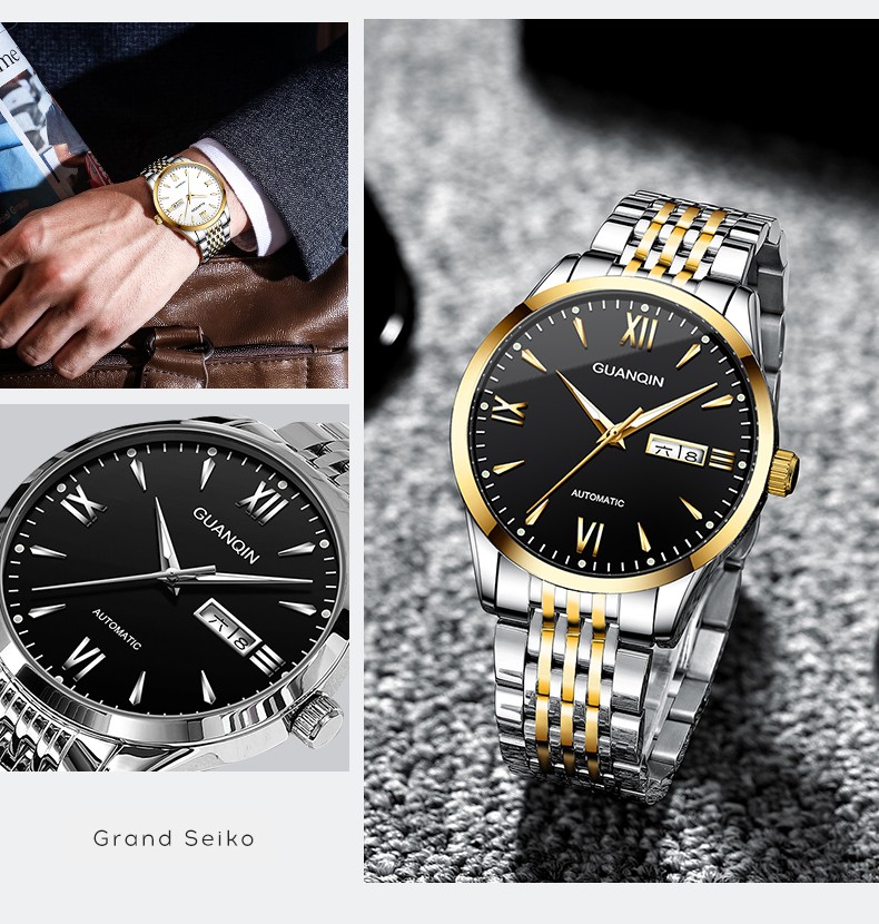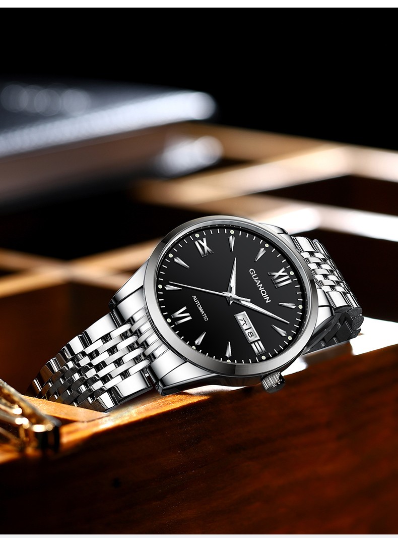 冠琴(GUANQIN) 名表 新款手表男士全自动机械商务休闲防水夜光男表精钢时尚简约 冠琴 16221间金白面 免费刻字