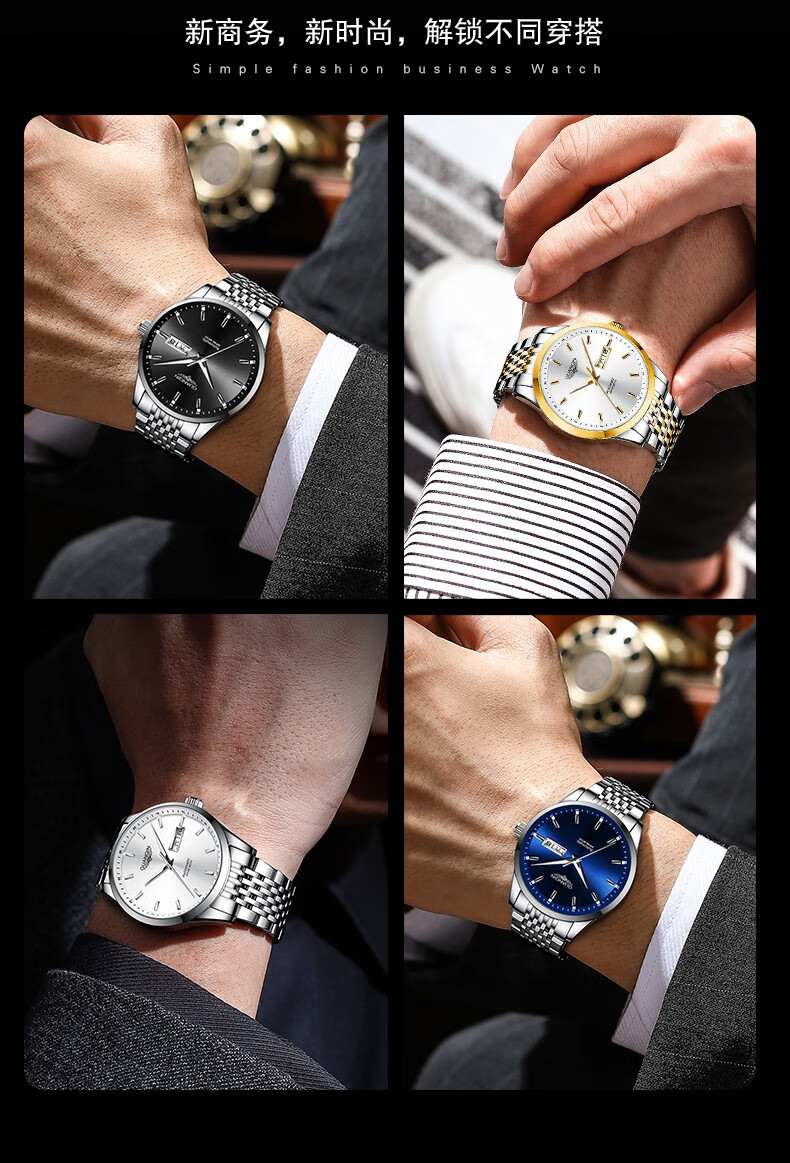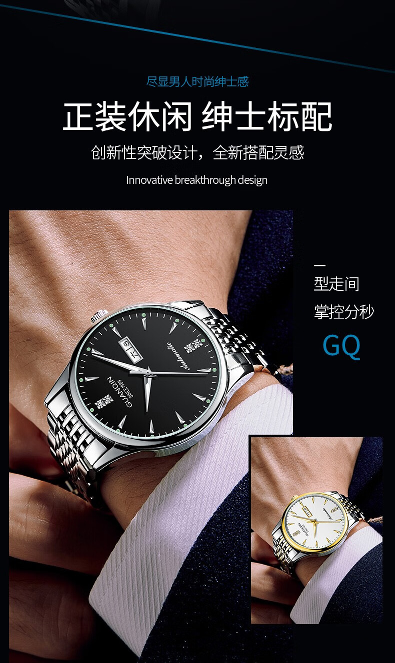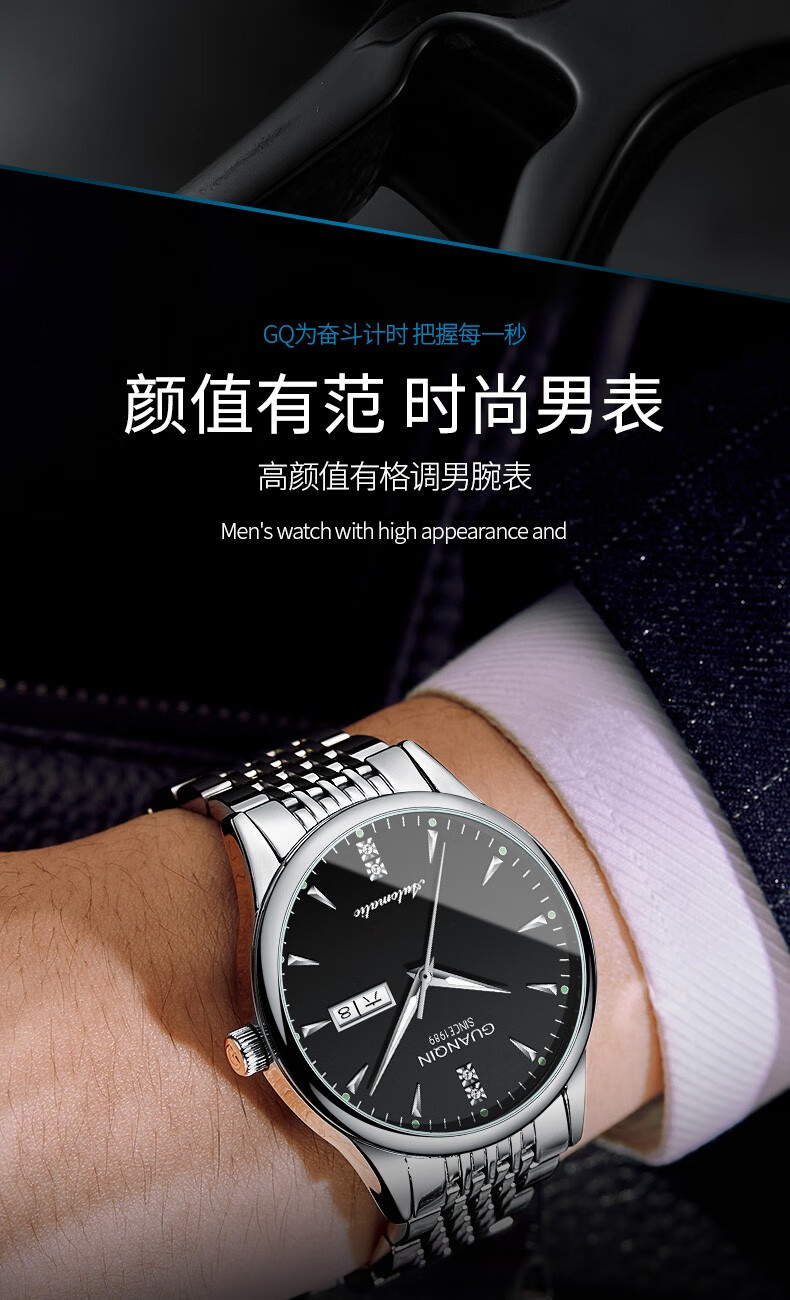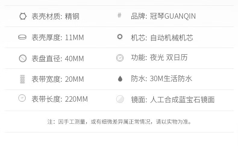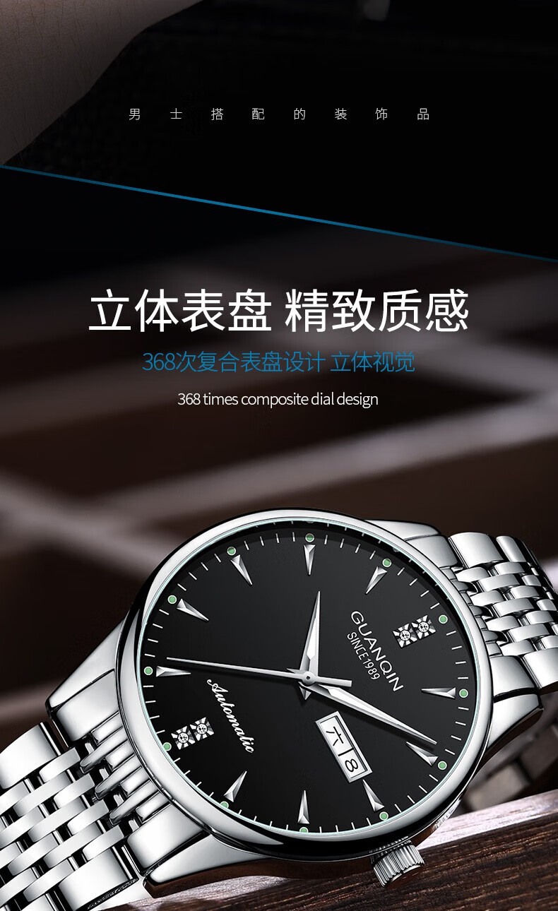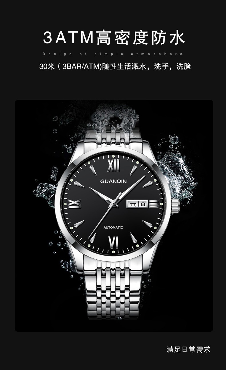 冠琴(GUANQIN) 名表 新款手表男士全自动机械商务休闲防水夜光男表精钢时尚简约 冠琴 16221间金白面 免费刻字