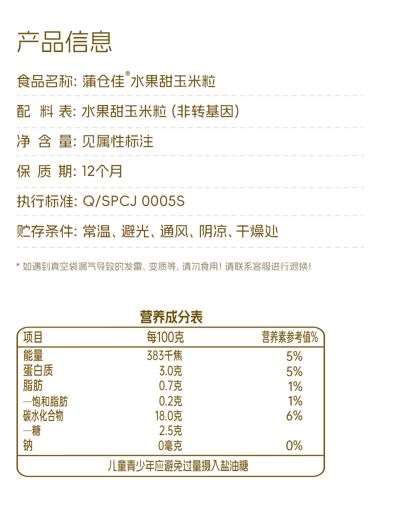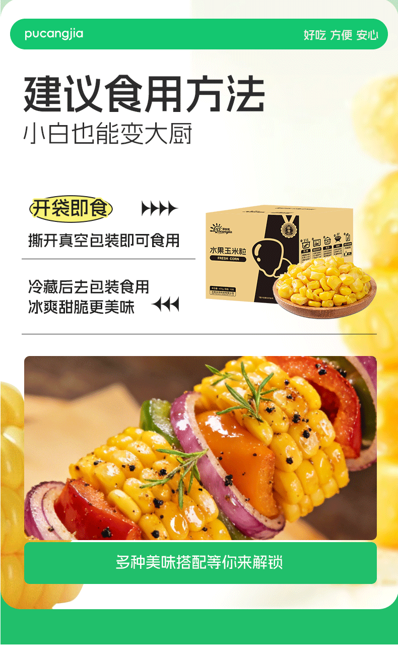蒲仓佳水果甜玉米粒 开袋即食 脆甜多汁非转基因低脂早餐代餐宝宝辅食 【开袋即食】水果玉米粒55g*10袋