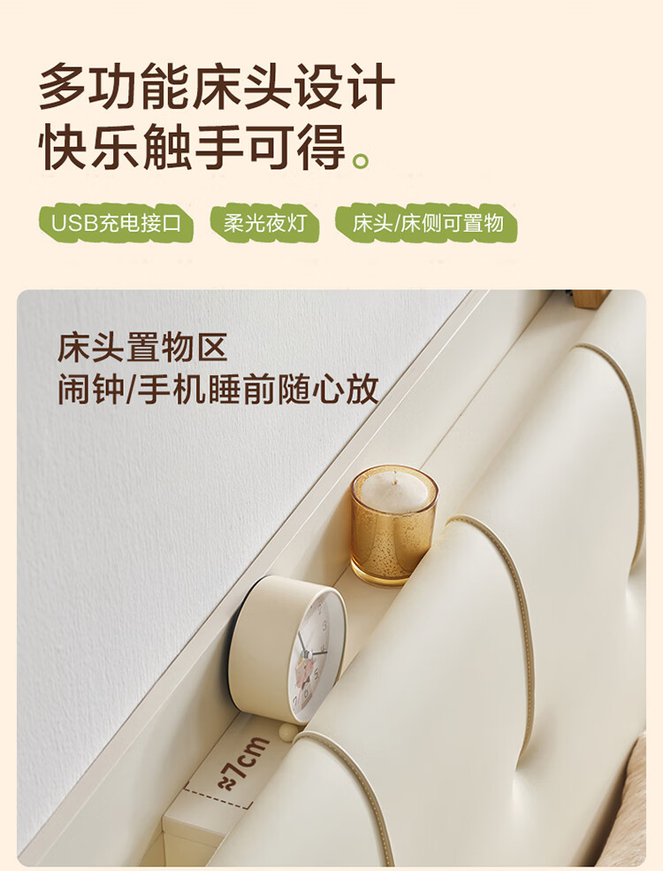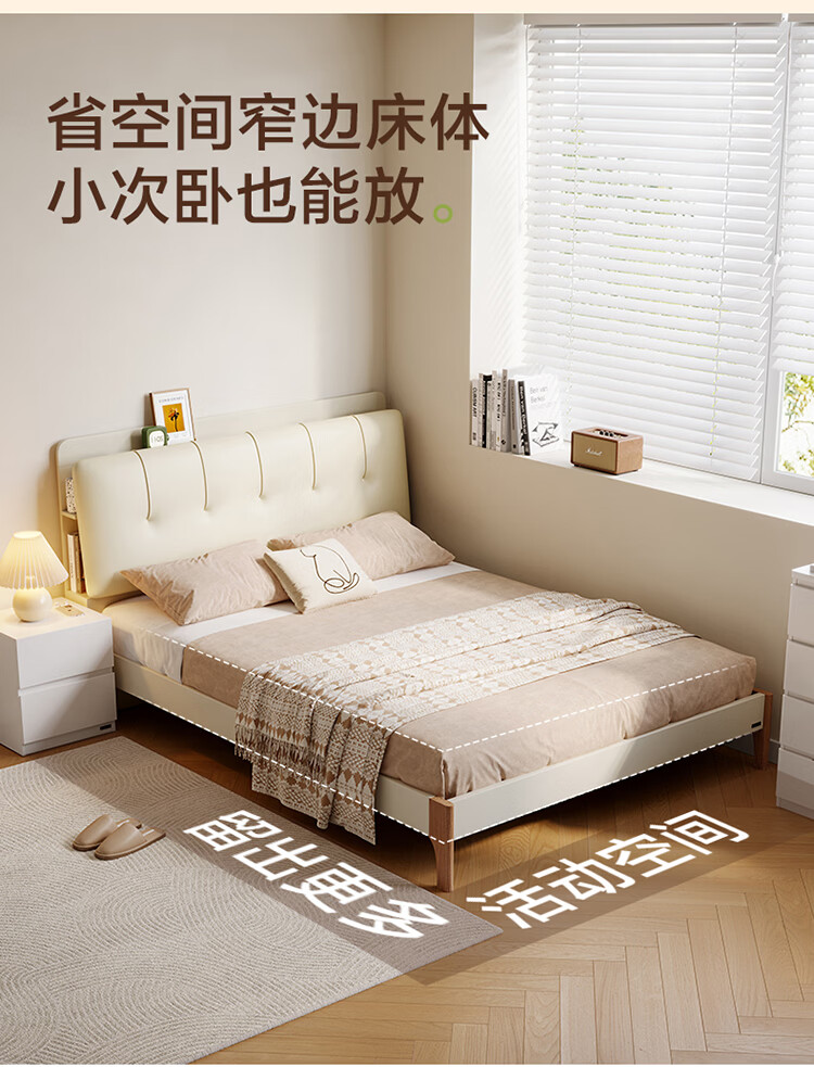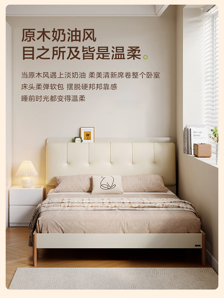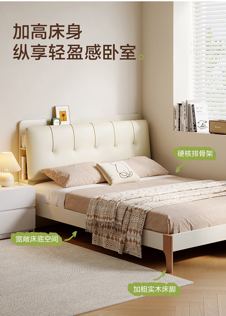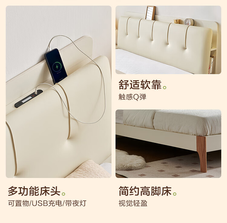 全友家居皮艺悬浮床1.8x2米主卧室双人大床奶油风头层牛皮真皮软包床 【云之垫安睡Pro】进口乳胶+独袋弹簧|厚23cm 1.5x2米