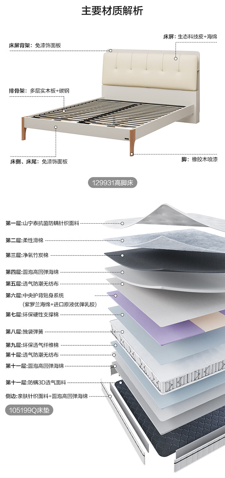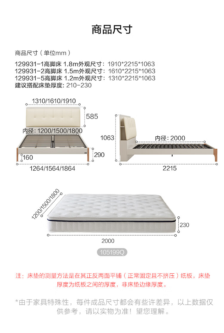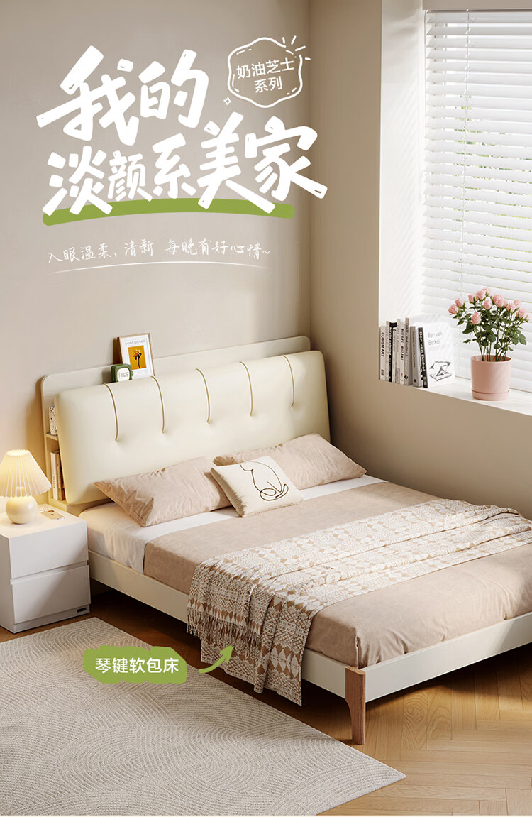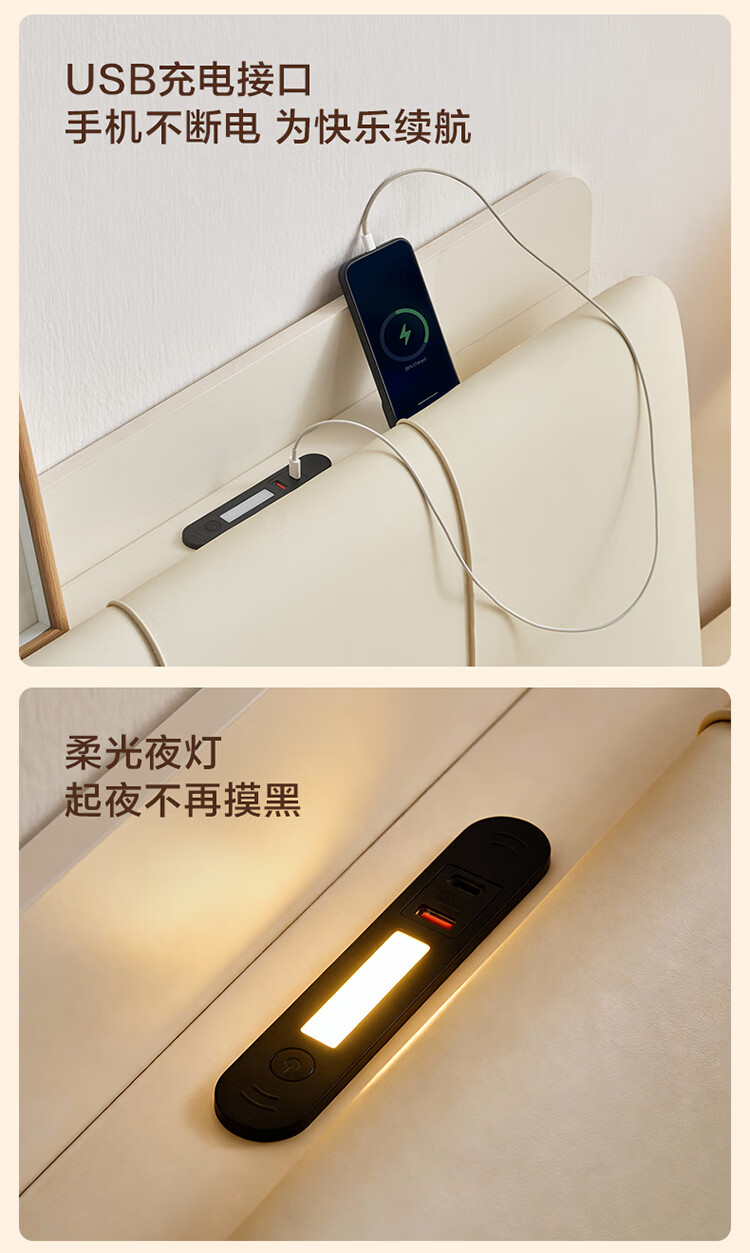 全友家居皮艺悬浮床1.8x2米主卧室双人大床奶油风头层牛皮真皮软包床 【云之垫安睡Pro】进口乳胶+独袋弹簧|厚23cm 1.5x2米