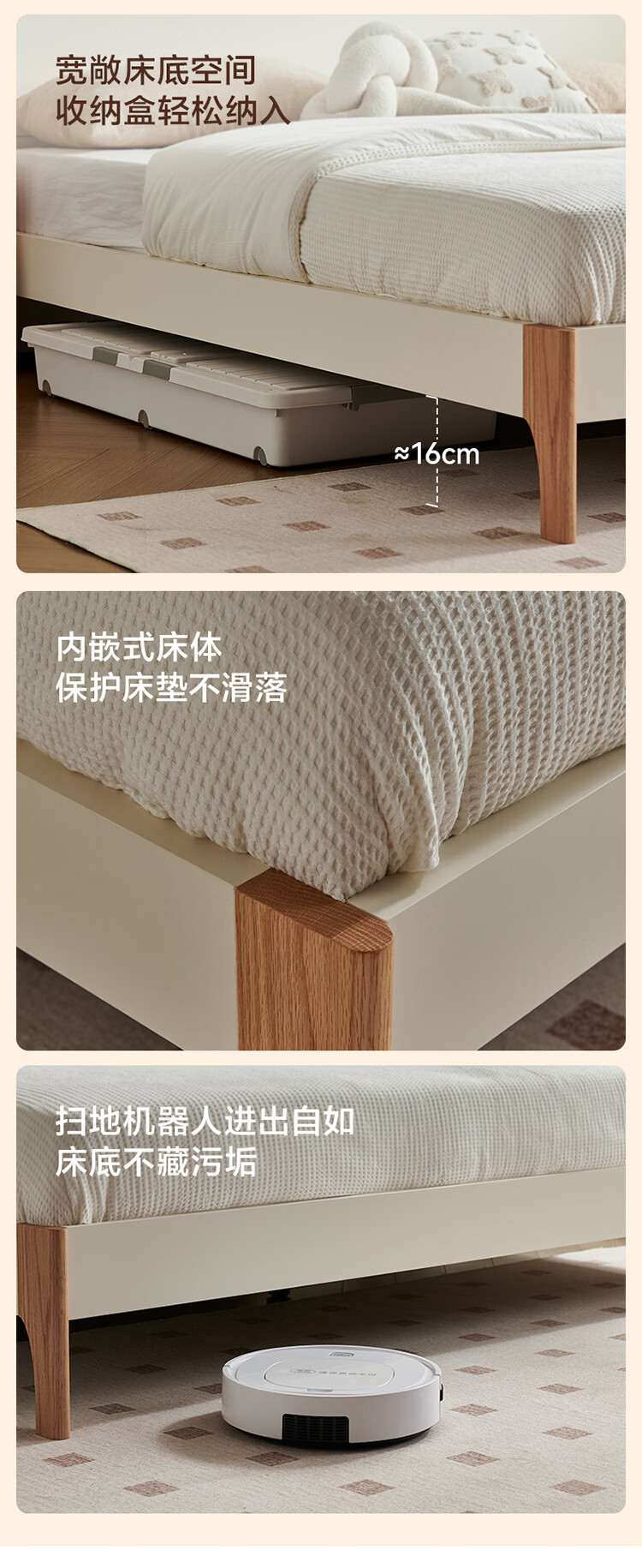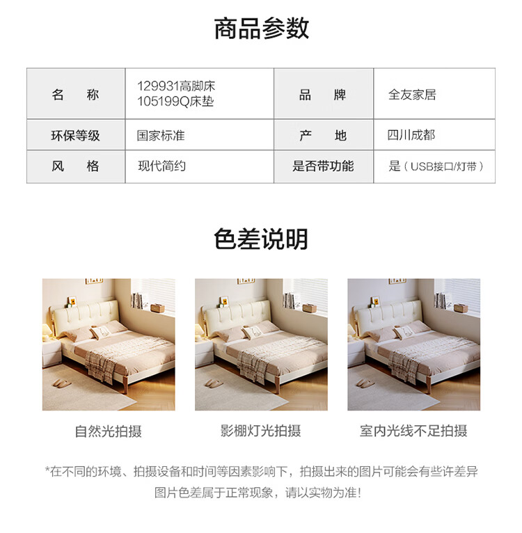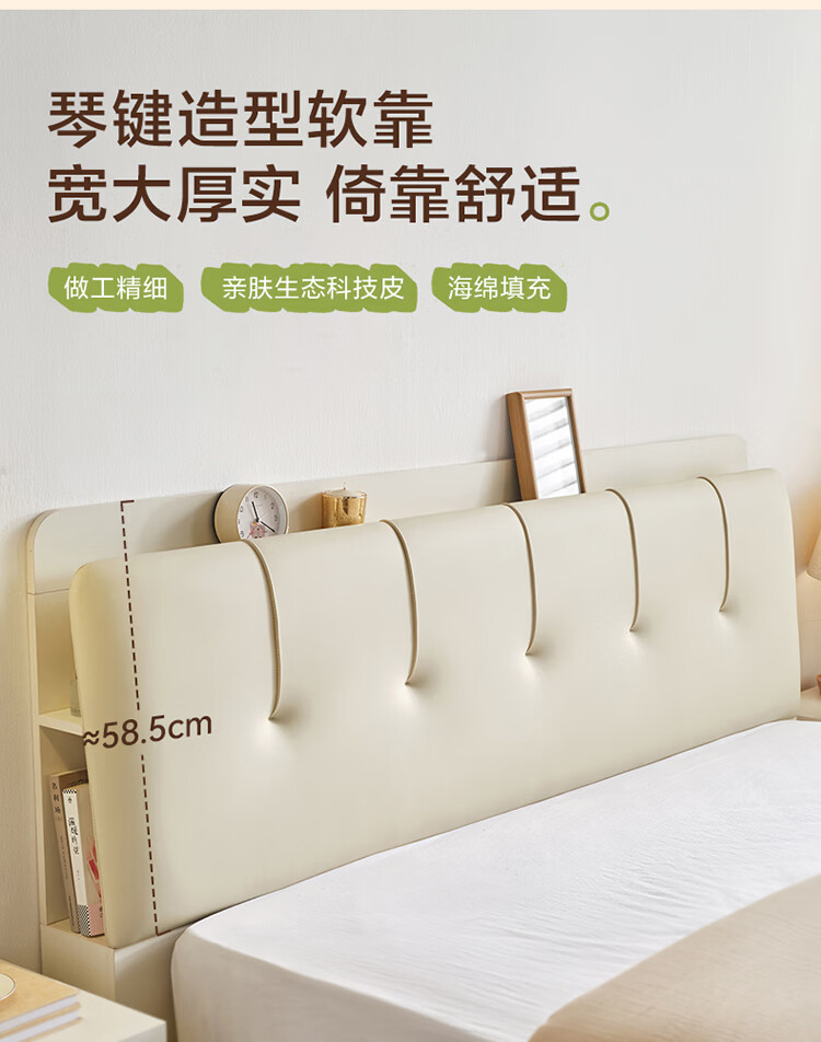 全友家居皮艺软包床现代简约主卧室家具1.8x2米高箱收纳储物双人床 【奶油白】单床+【乳胶紫罗兰 | 独袋弹簧】床垫 1.5x2米
