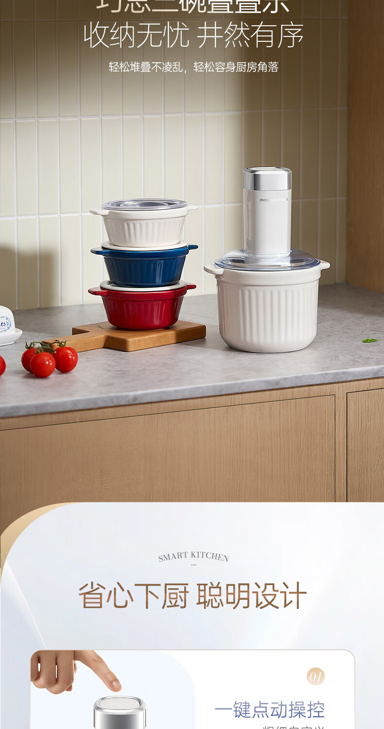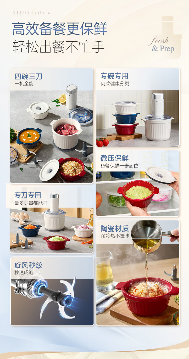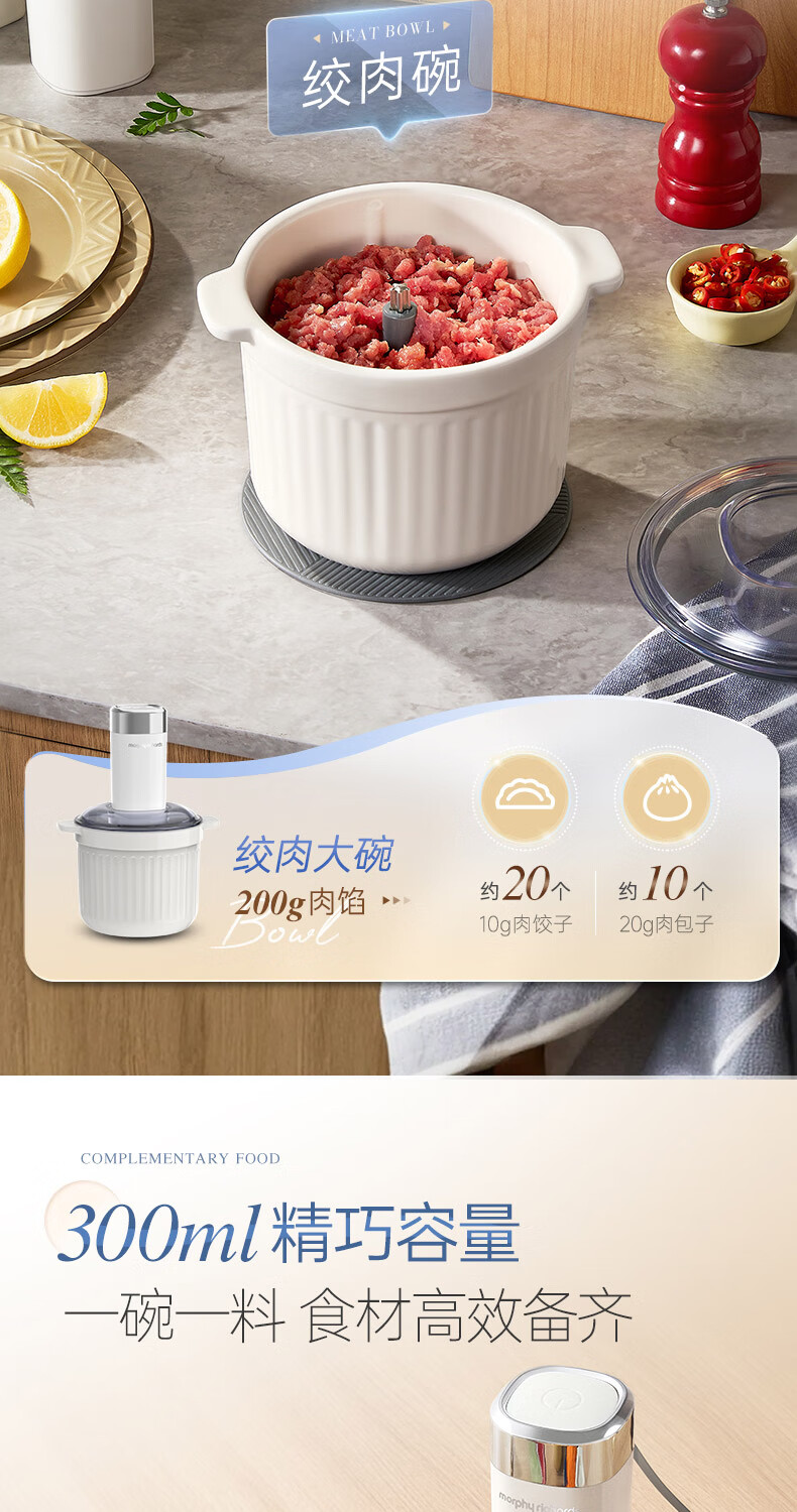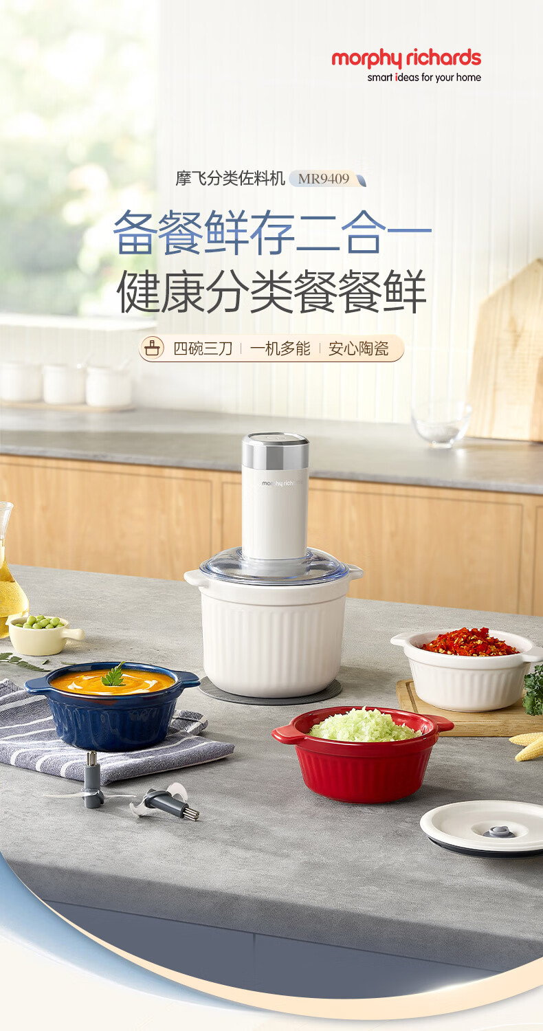 摩飞电器(Morphyrichards)绞肉机 家用佐料机辅食机 多功能备餐绞肉切菜机电动料理机捣蒜器 搅拌机绞馅机碎肉机 MR9409
