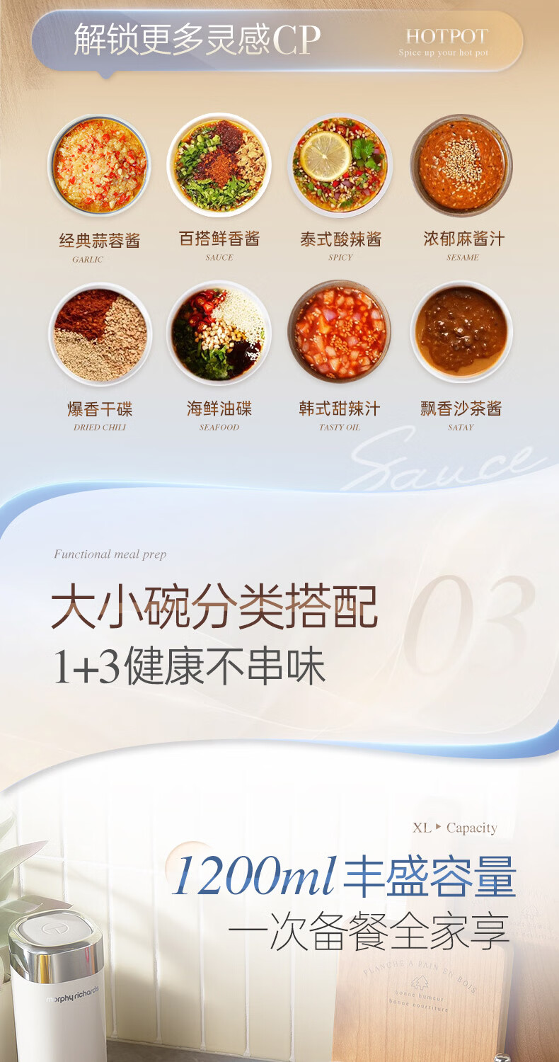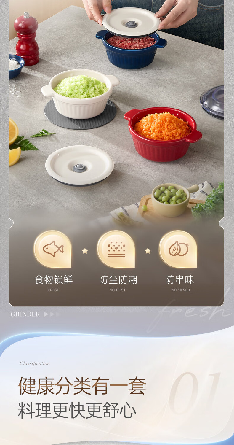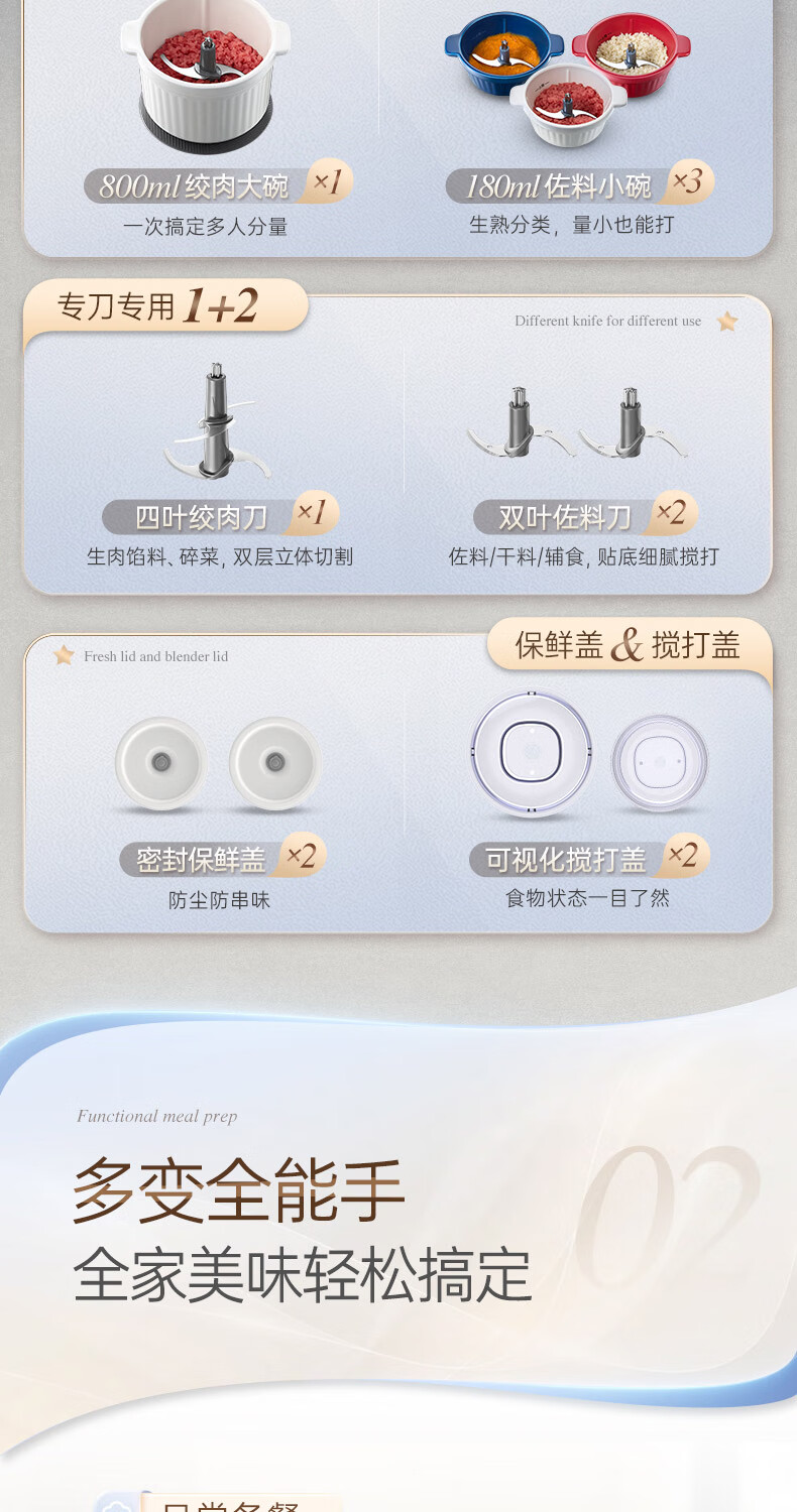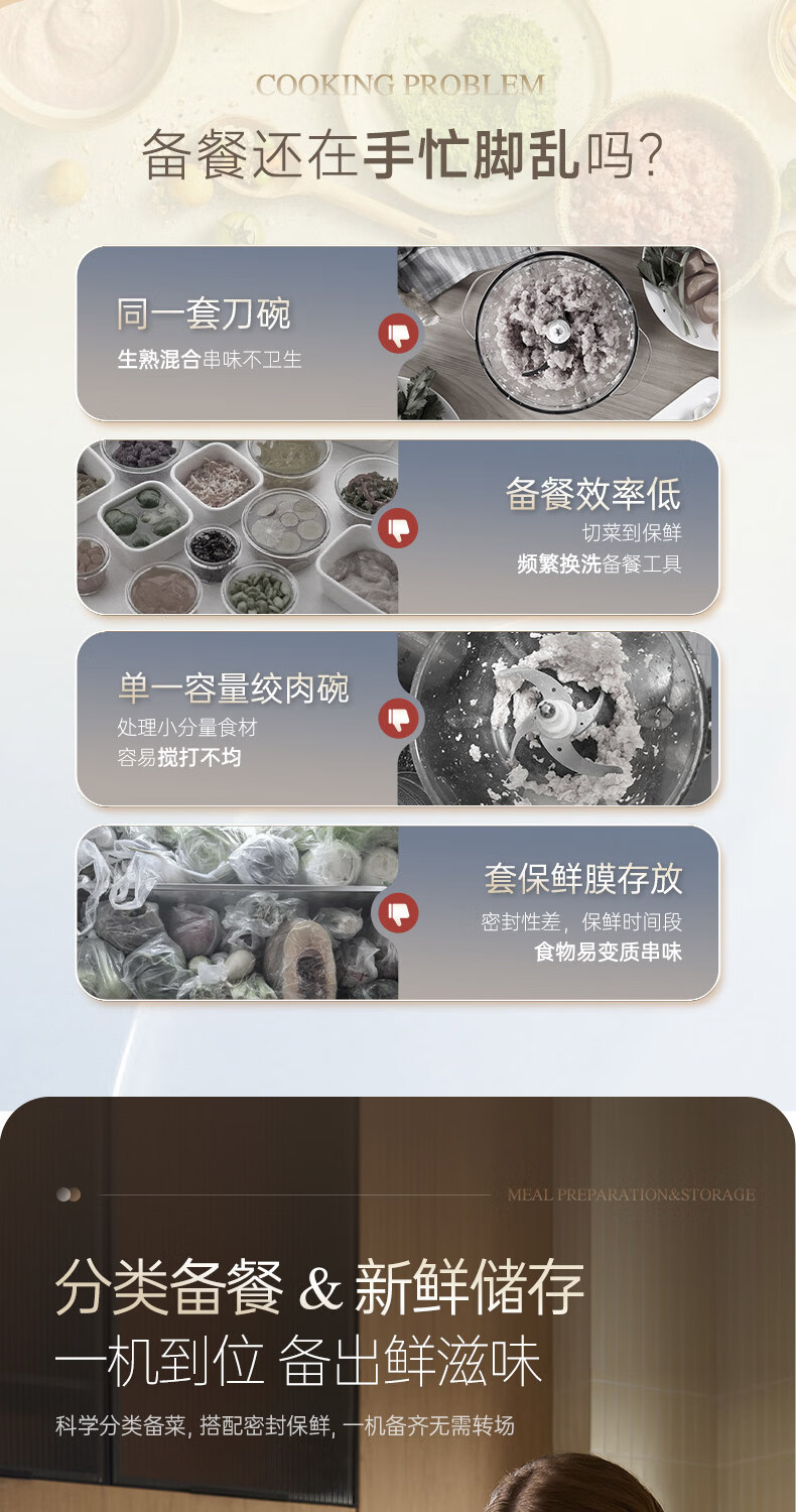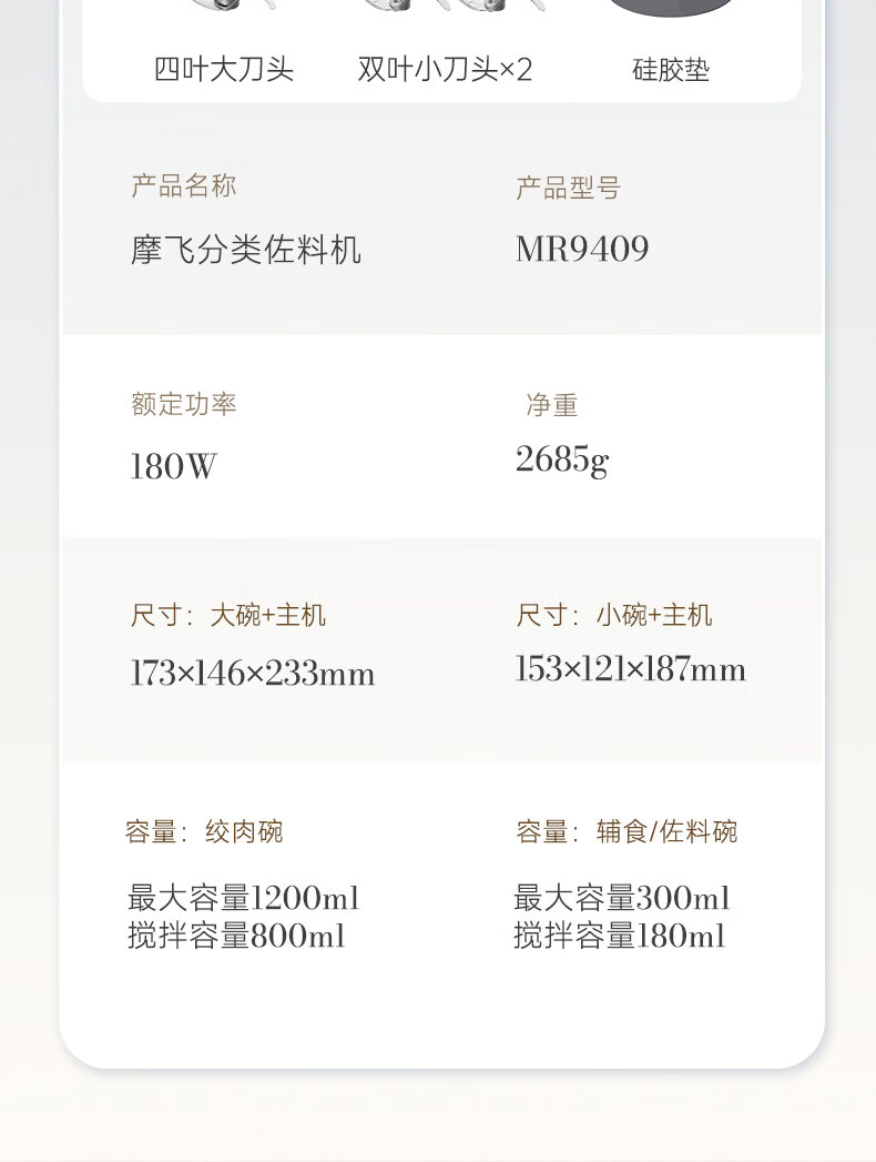 摩飞电器(Morphyrichards)绞肉机 家用佐料机辅食机 多功能备餐绞肉切菜机电动料理机捣蒜器 搅拌机绞馅机碎肉机 MR9409
