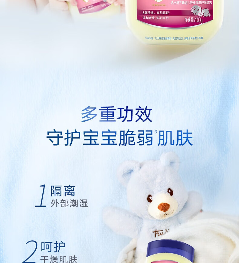 凡士林婴幼儿经典保湿舒润晶冻100g 保湿滋润防干裂【临期清仓】