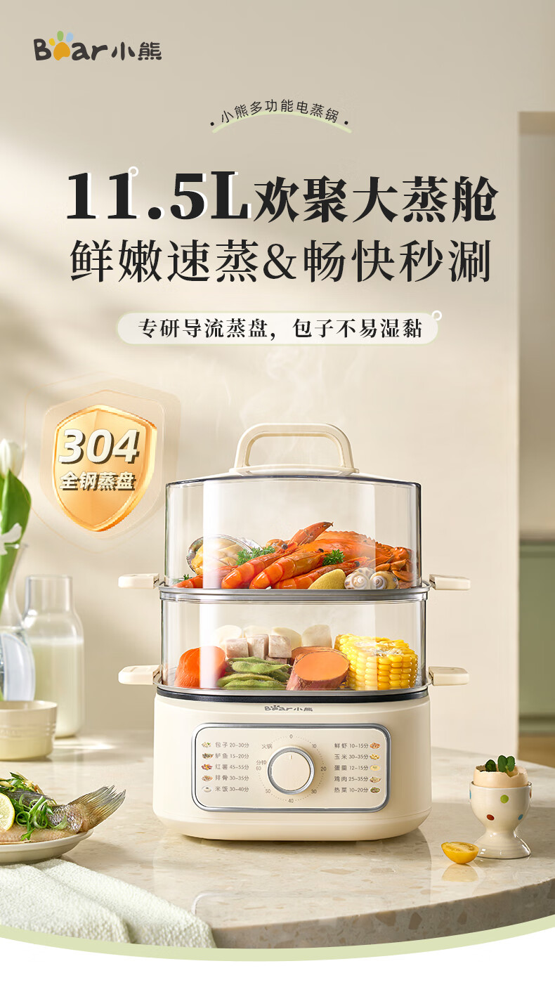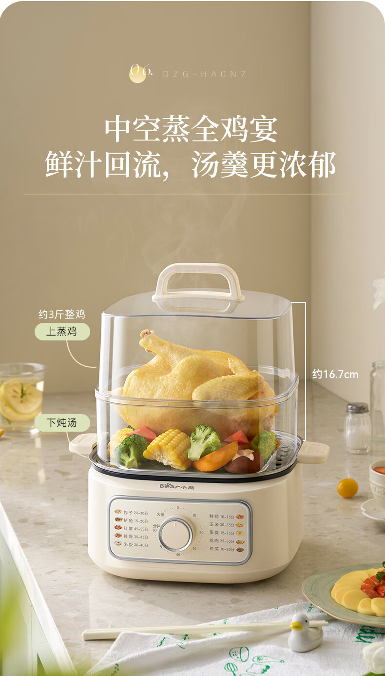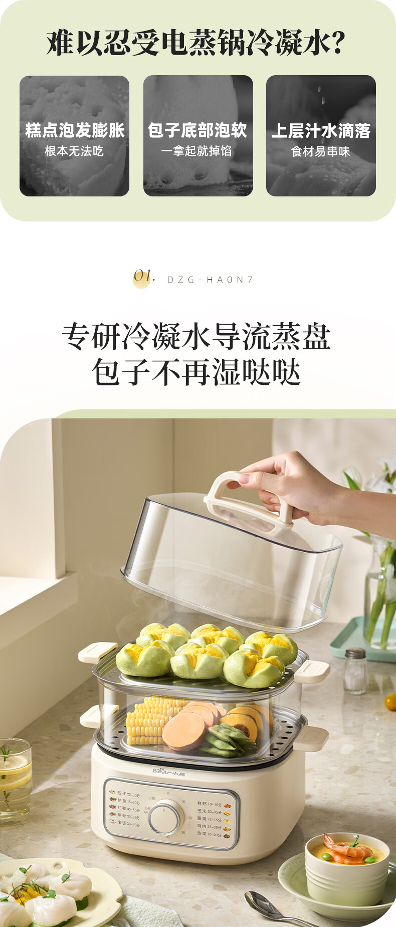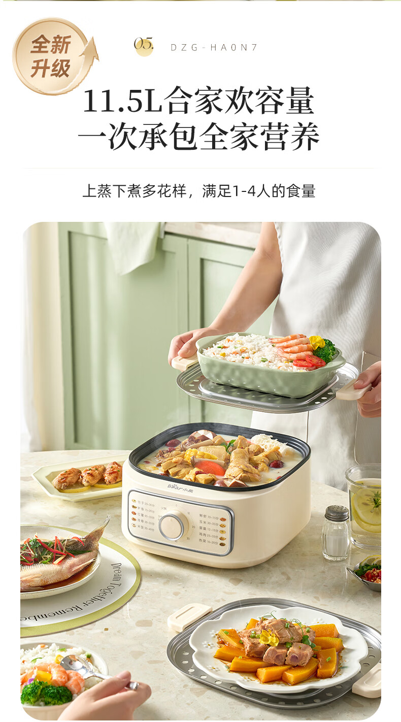小熊(Bear)电蒸锅 家用电锅小型2-3人用 火锅蒸煮炒一体多功能锅 11.5L三层大容量DZG-HA0N7