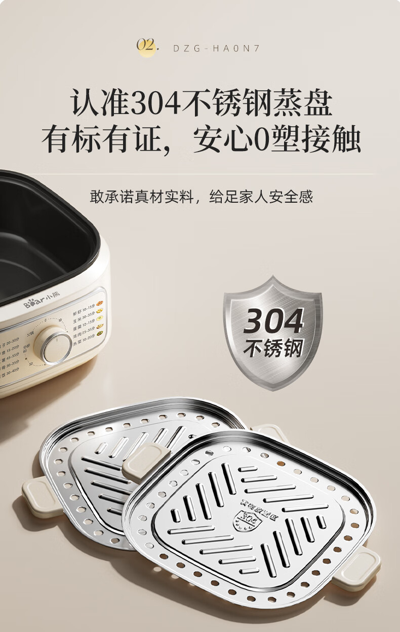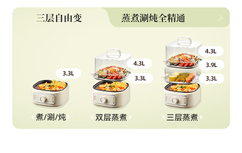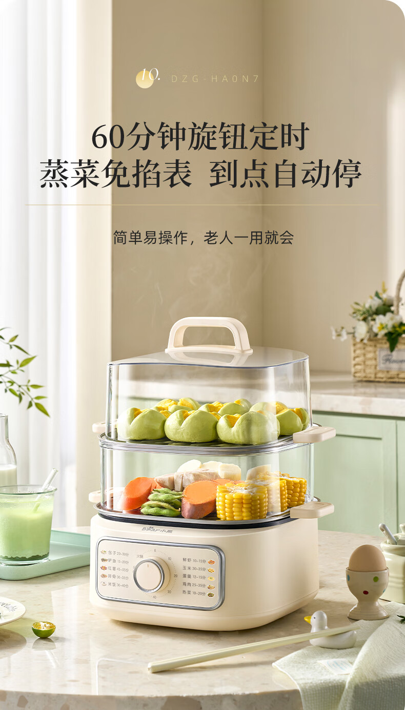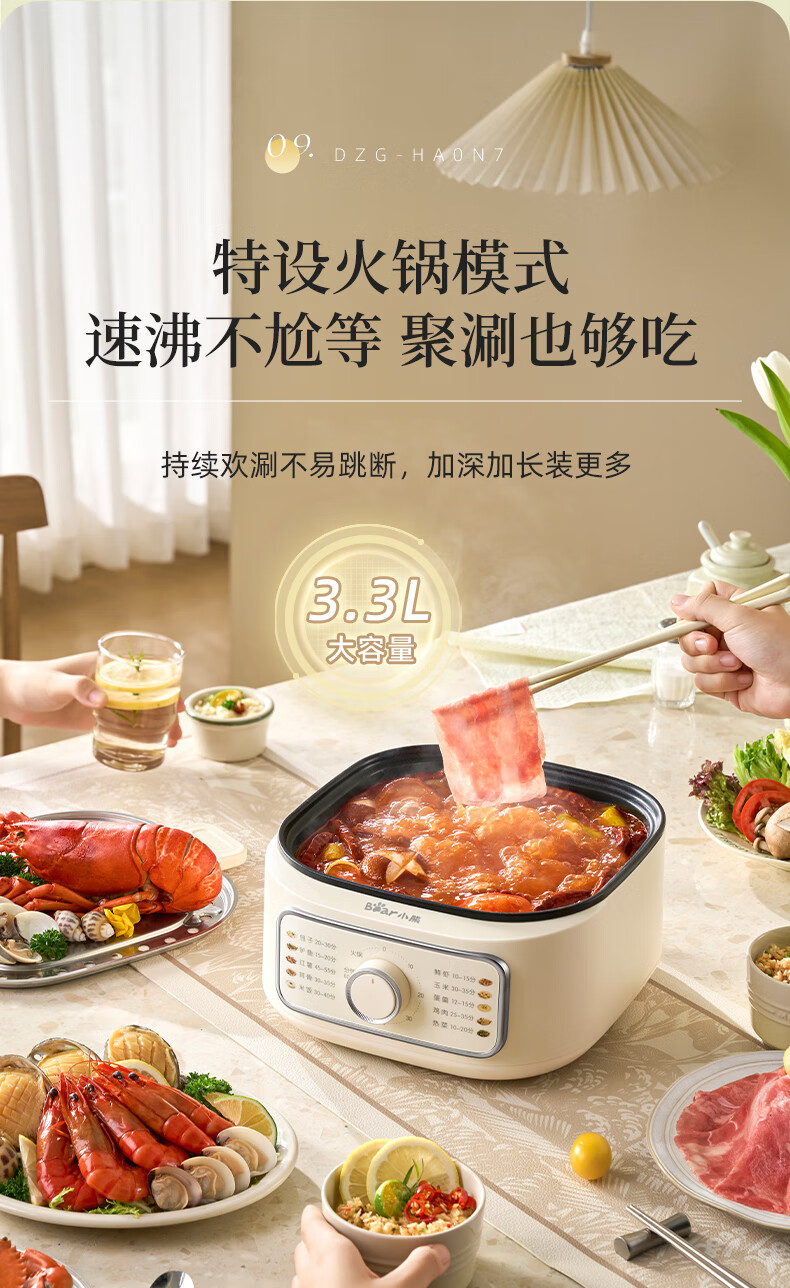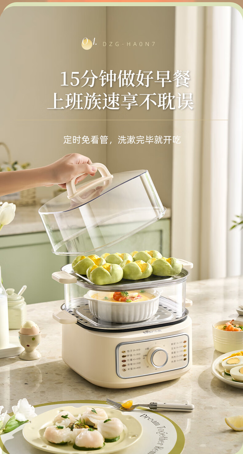 小熊(Bear)电蒸锅 家用电锅小型2-3人用 火锅蒸煮炒一体多功能锅 11.5L三层大容量DZG-HA0N7