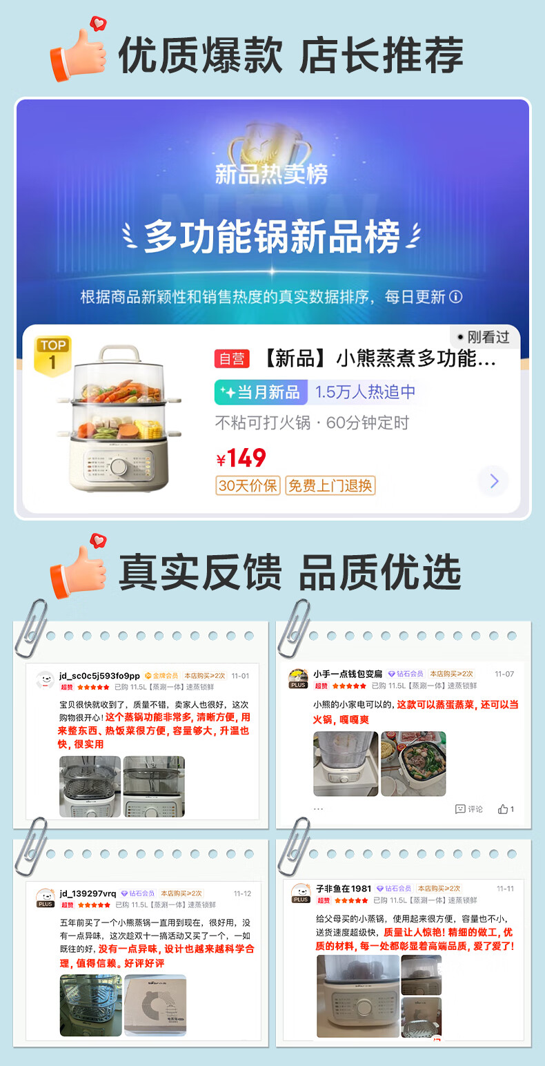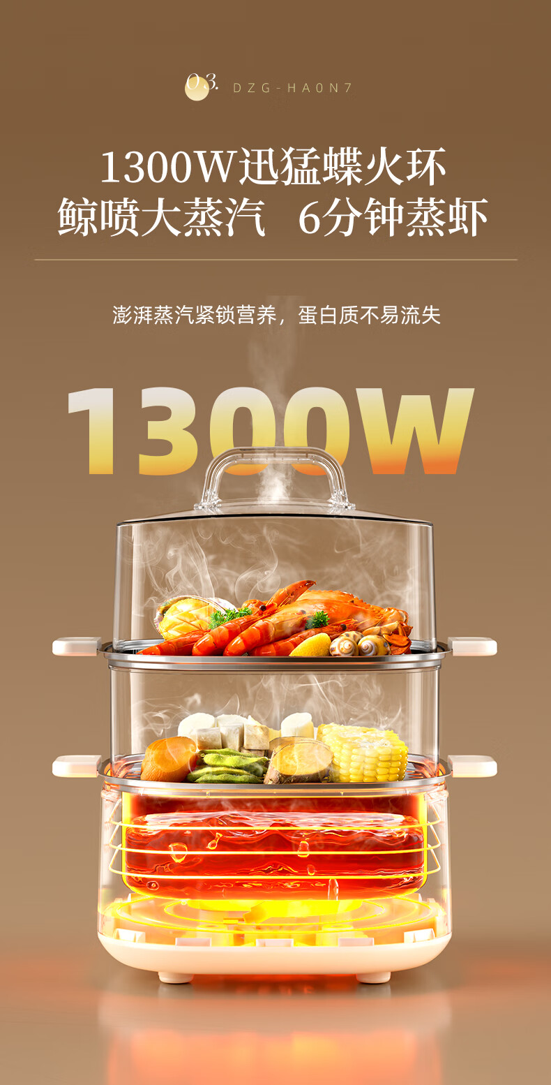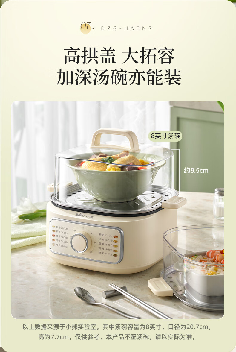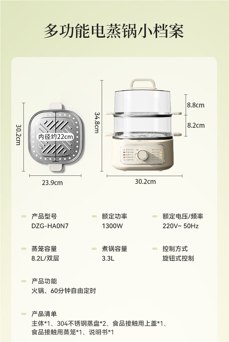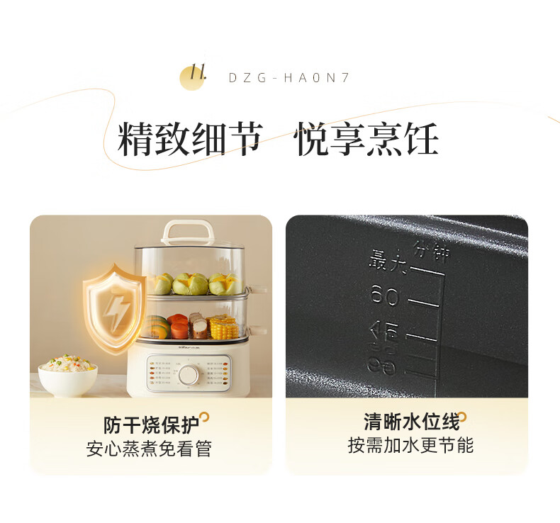 小熊(Bear)电蒸锅 家用电锅小型2-3人用 火锅蒸煮炒一体多功能锅 11.5L三层大容量DZG-HA0N7