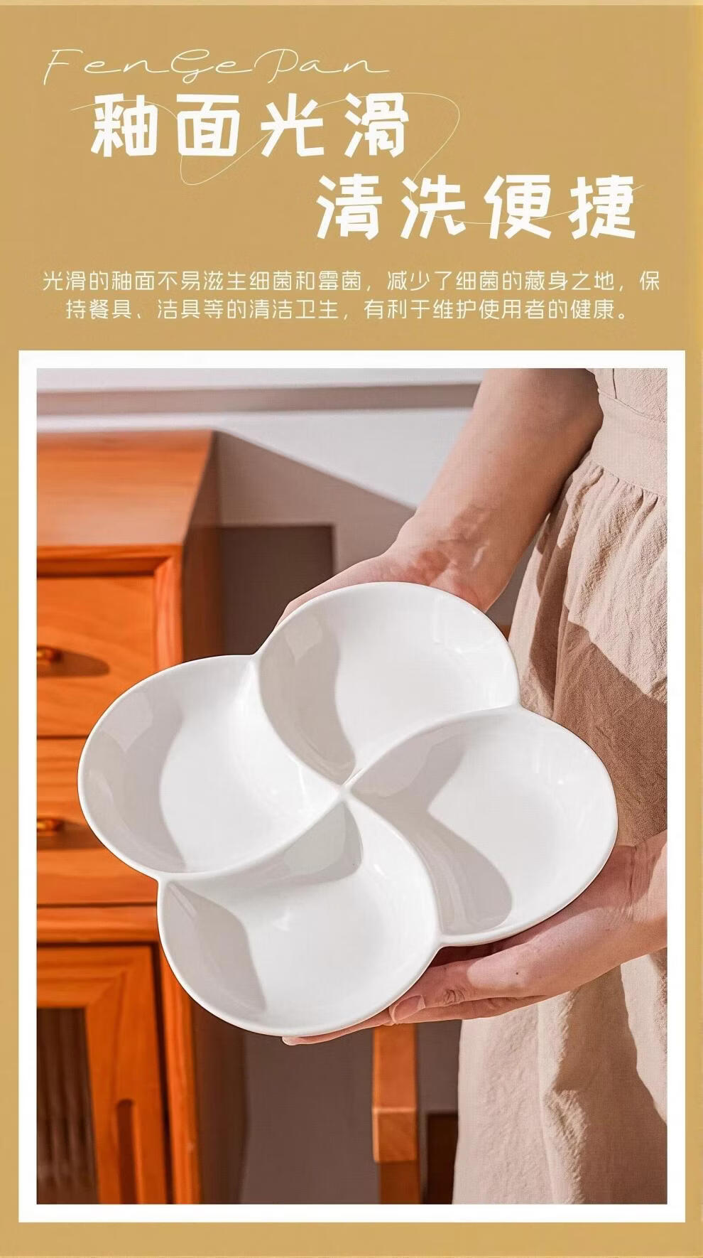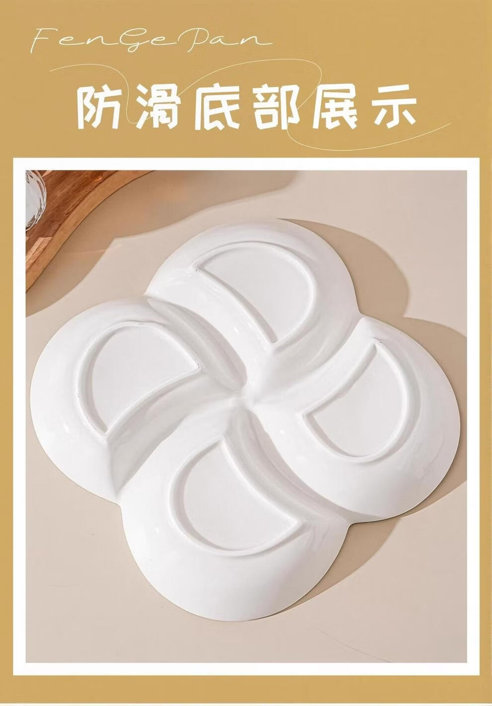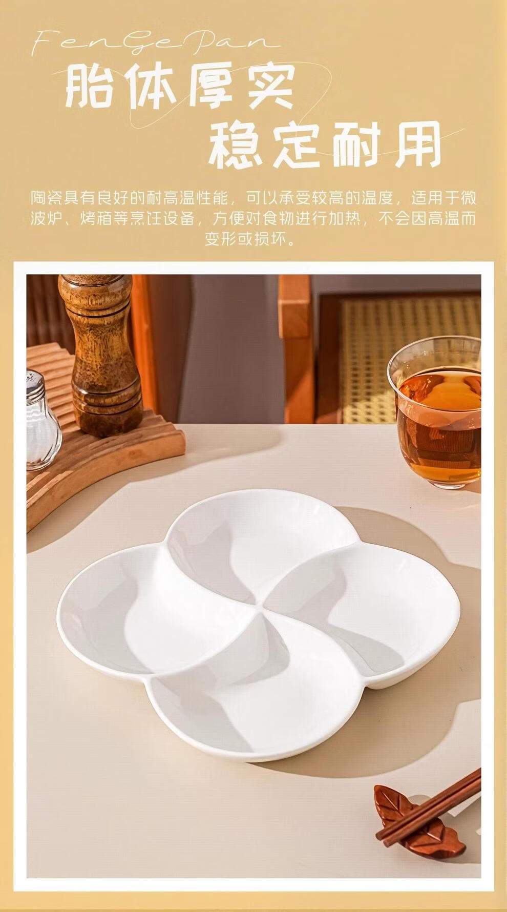 OEING早餐一锅出四分格陶瓷蒸盘点心水果盘子卤水拼盘菜盘家用分格盘 中号-四格分餐盘【瓷质厚实/紧久耐用】