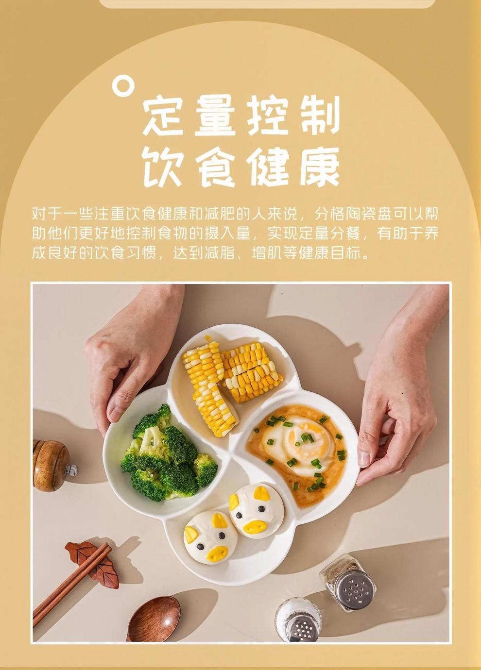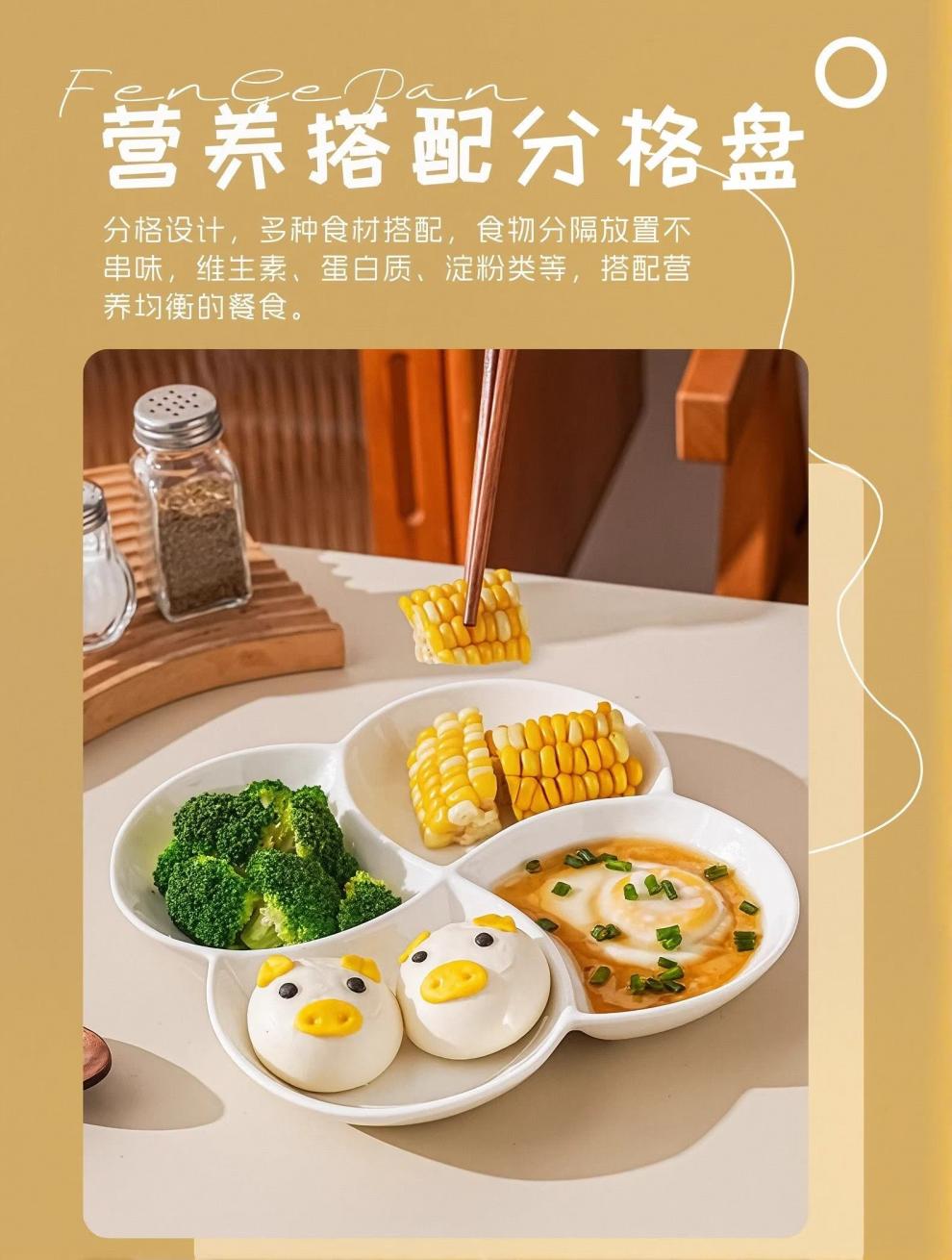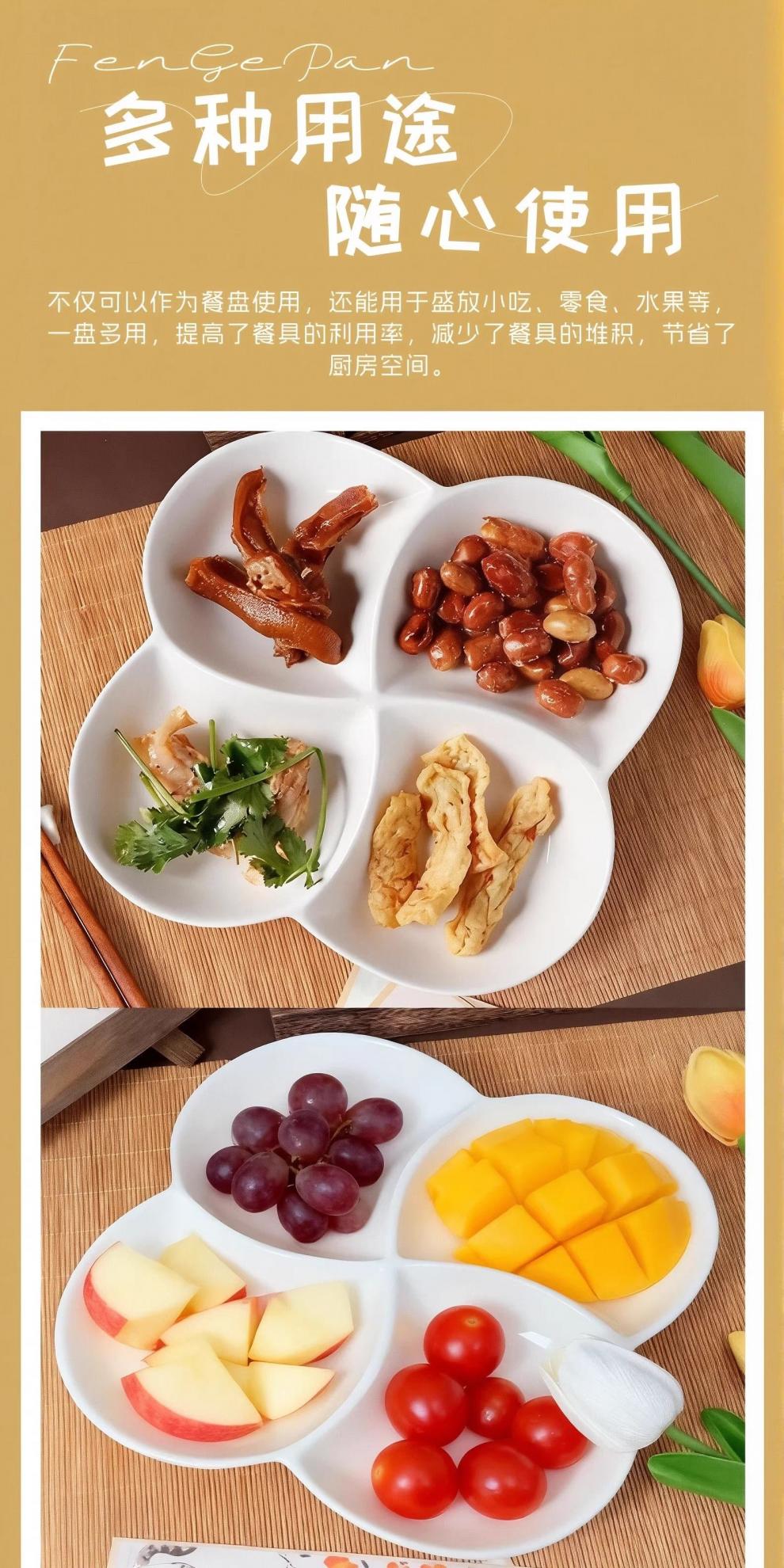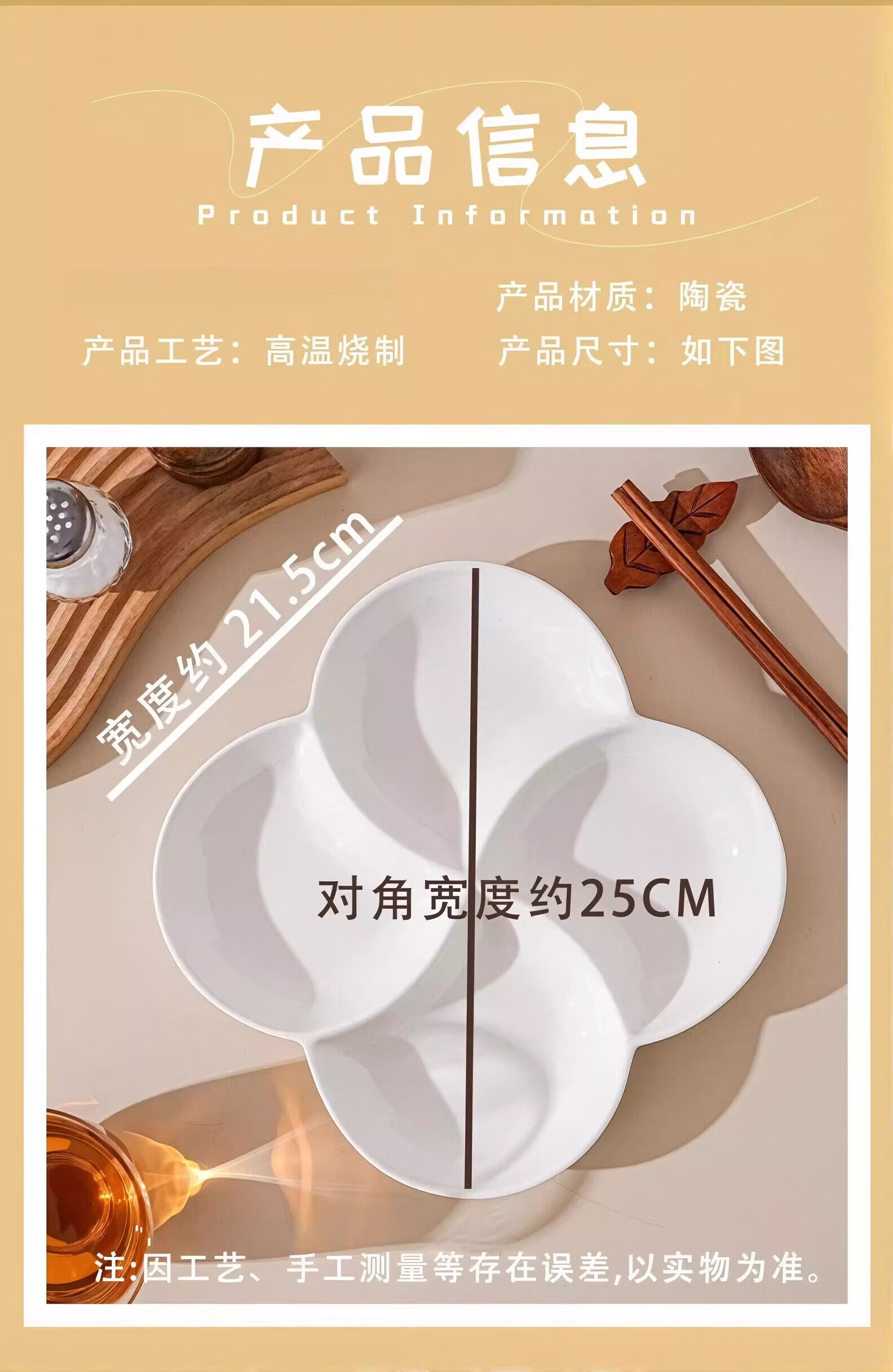 OEING早餐一锅出四分格陶瓷蒸盘点心水果盘子卤水拼盘菜盘家用分格盘 中号-四格分餐盘【瓷质厚实/紧久耐用】