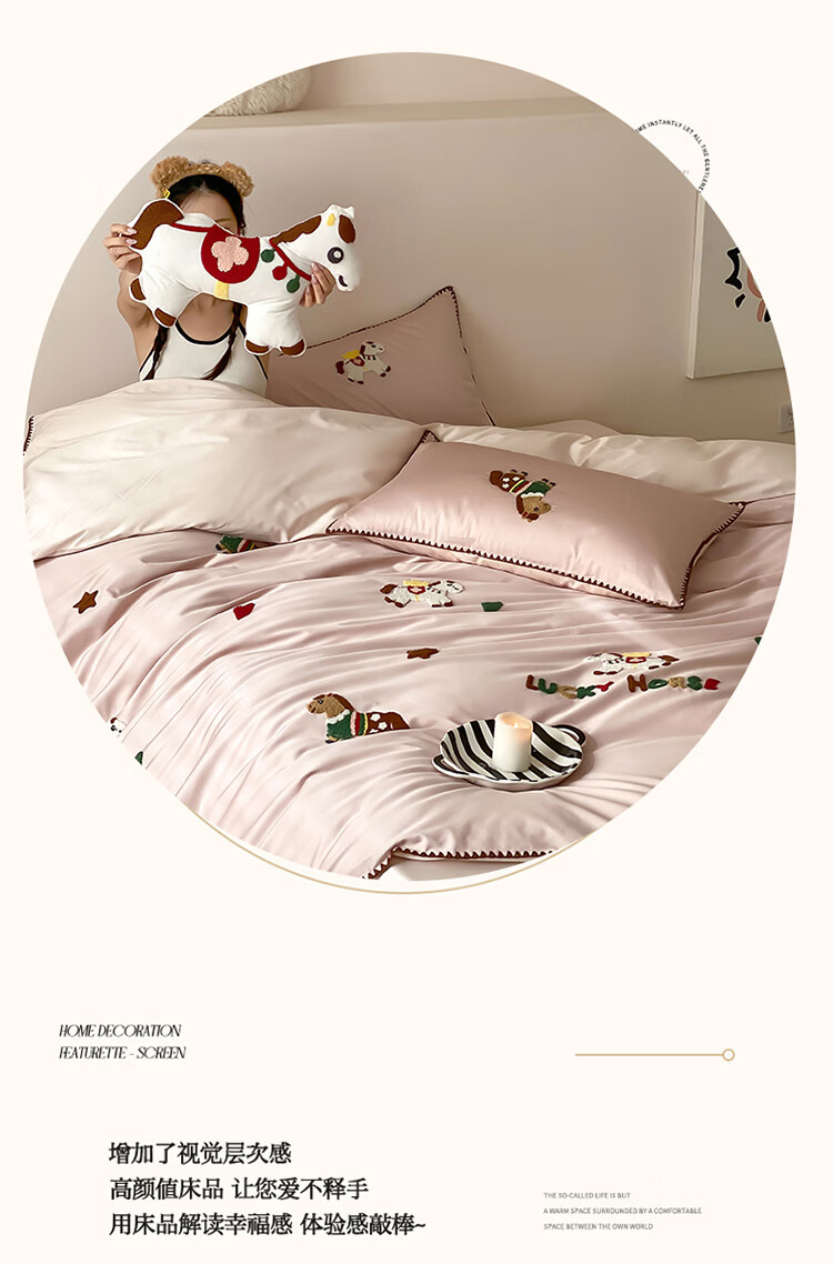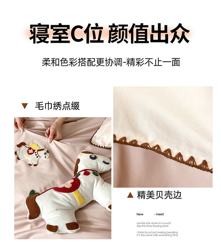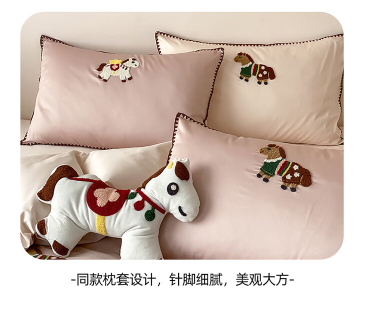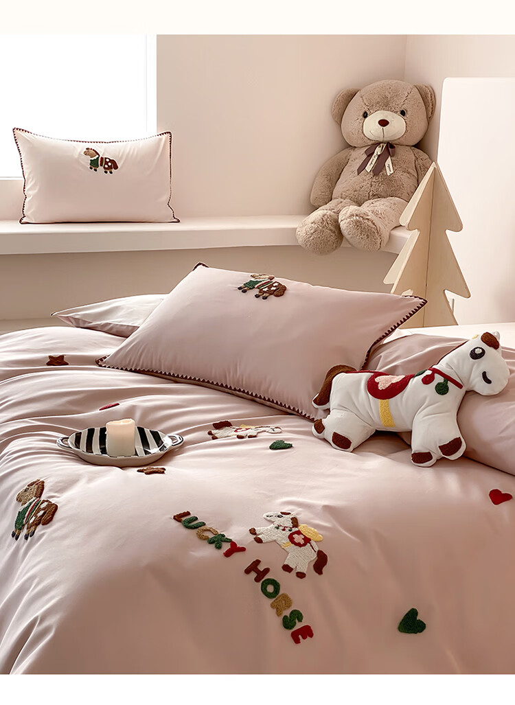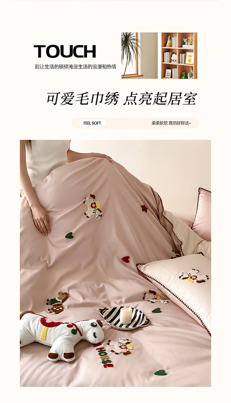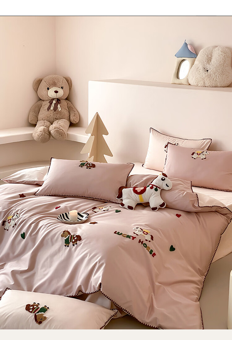 ROLAND LIVE春夏长绒棉可爱毛巾绣四件套亲肤AB版设计被套床单全棉床上用品 FOR 长绒棉毛巾绣套件-旋转木马 1.8米床 床笠款 【被套200*230cm】