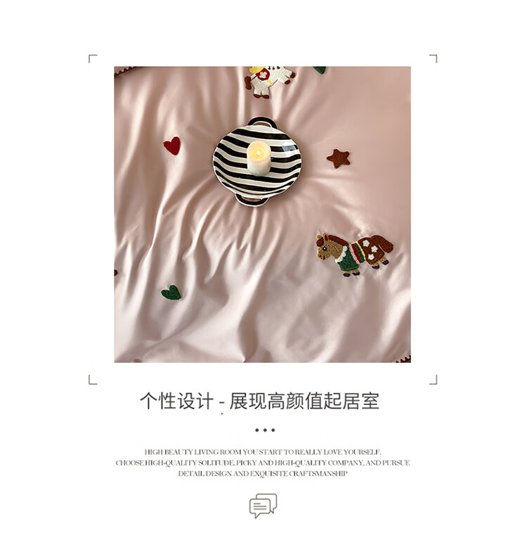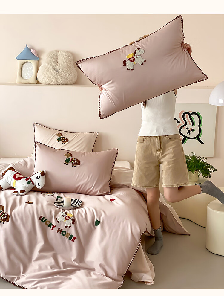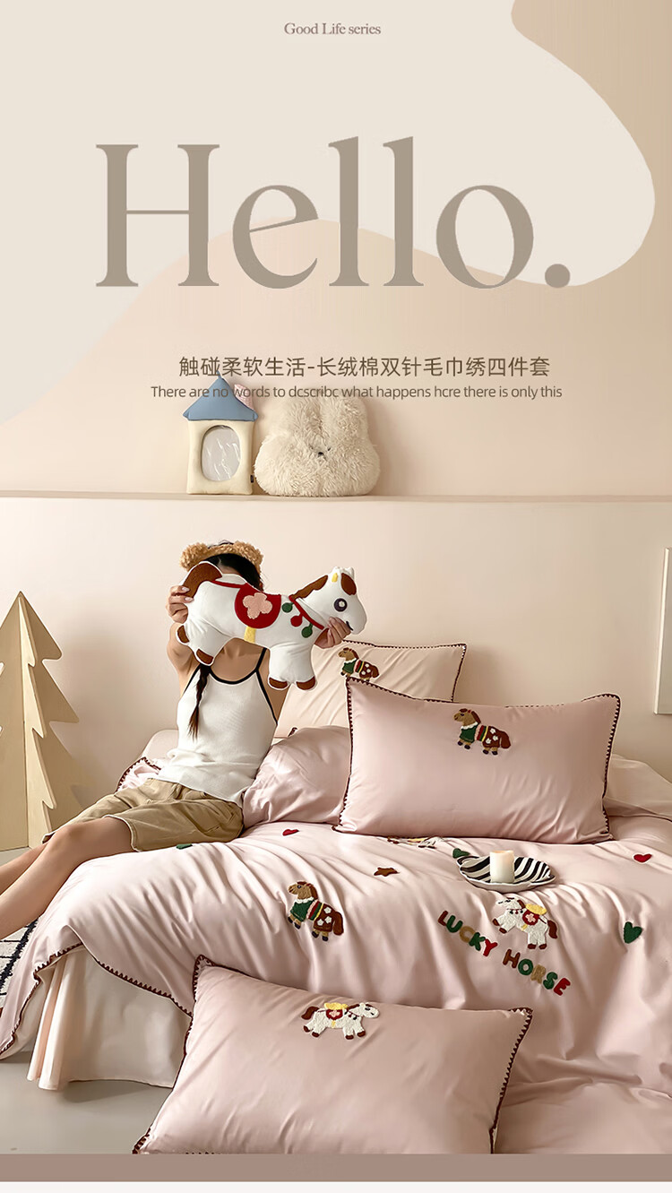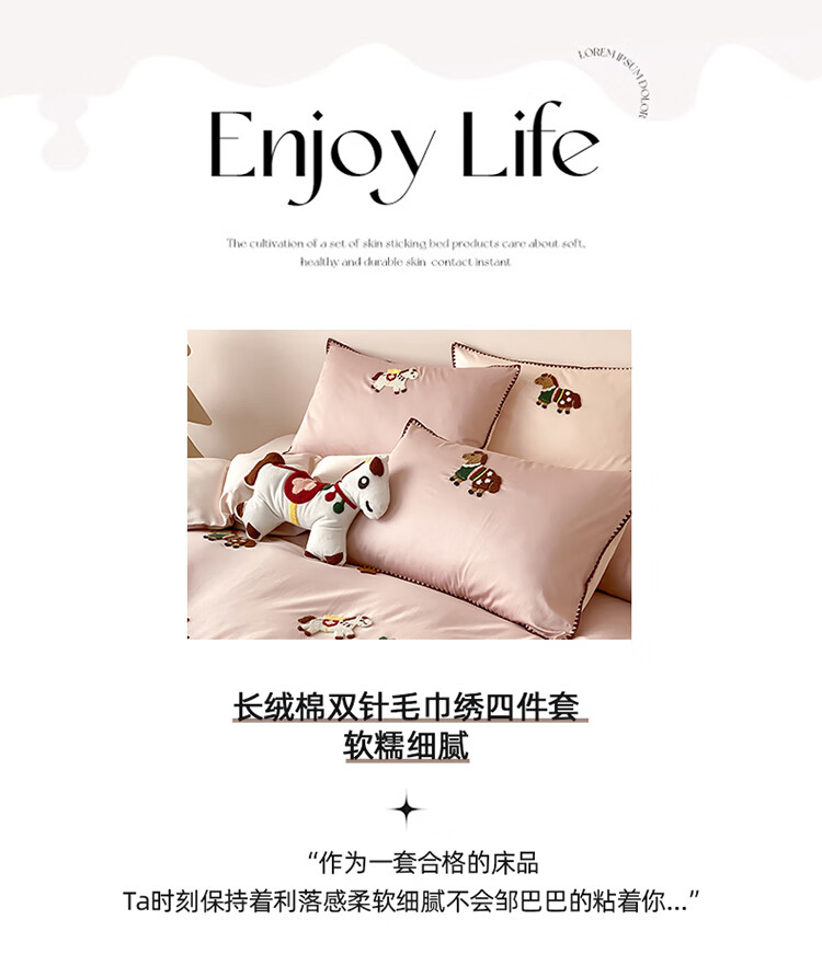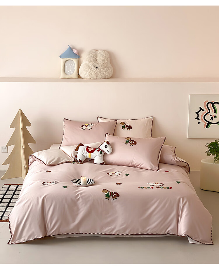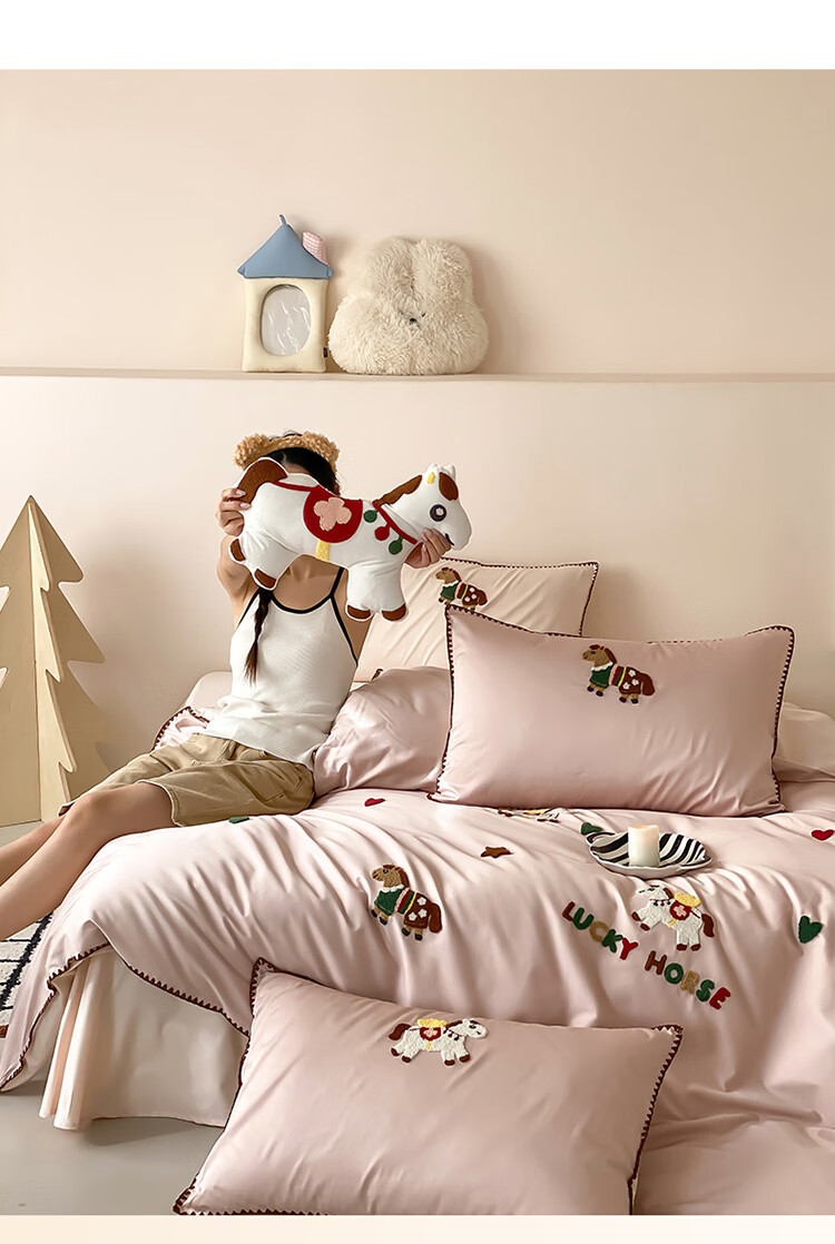 ROLAND LIVE春夏长绒棉可爱毛巾绣四件套亲肤AB版设计被套床单全棉床上用品 FOR 长绒棉毛巾绣套件-旋转木马 1.8米床 床笠款 【被套200*230cm】