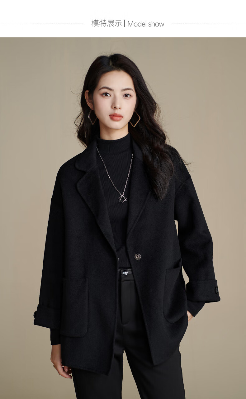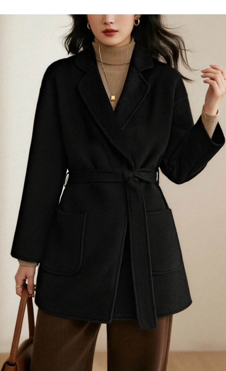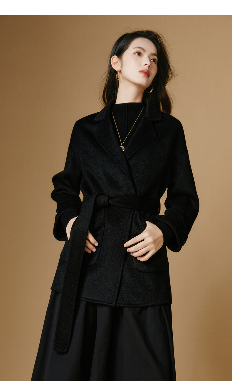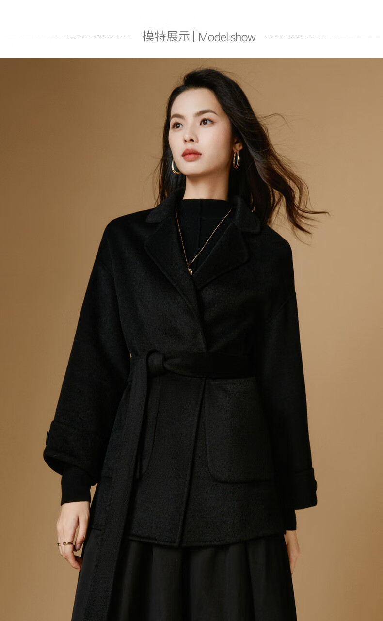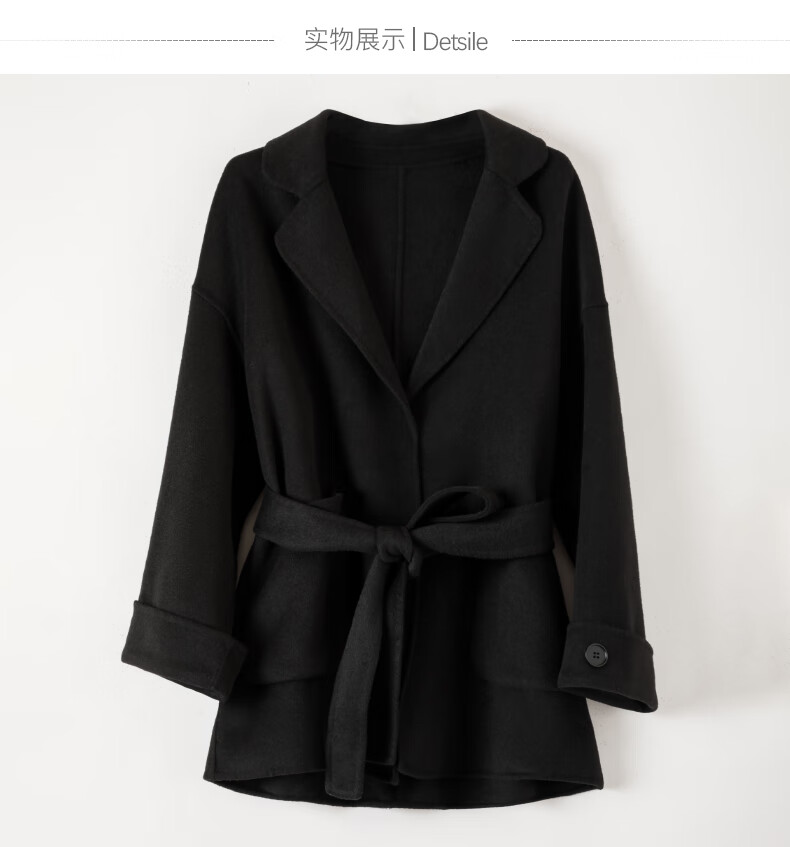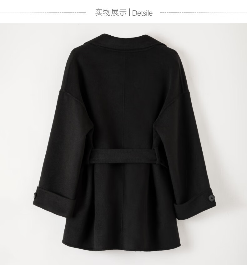晚白【新品】小个子双面呢羊毛大衣女冬款纯色百搭通勤保暖外套 黑色 M