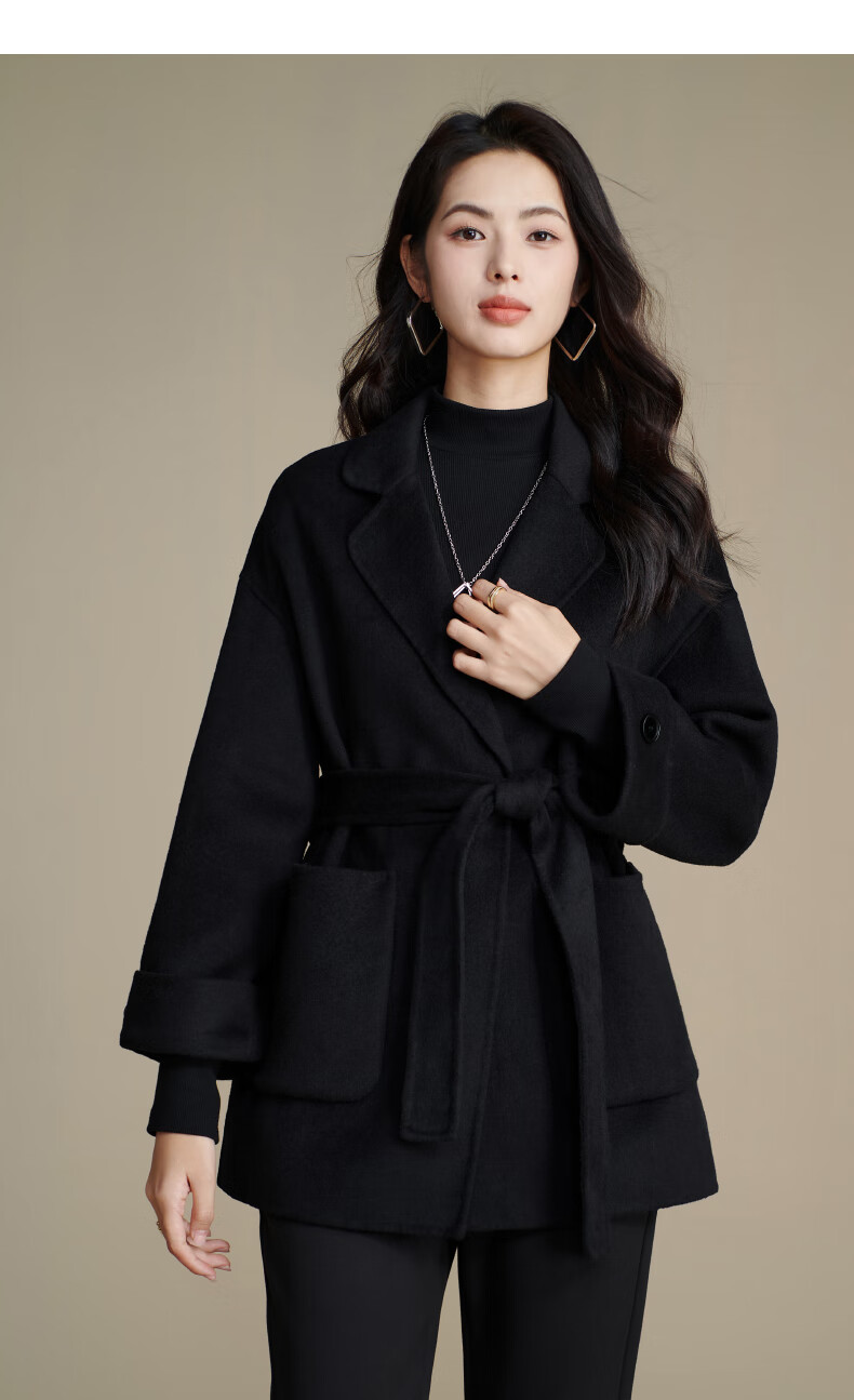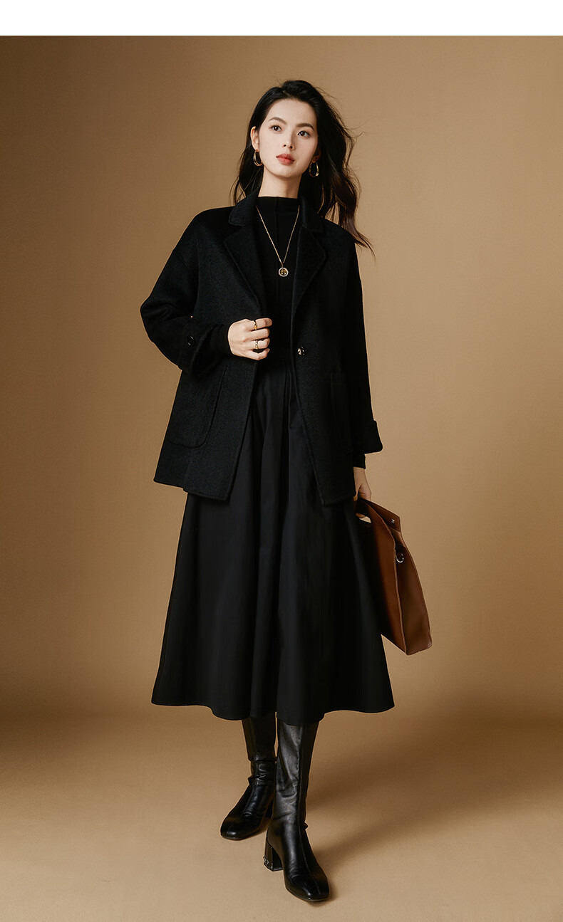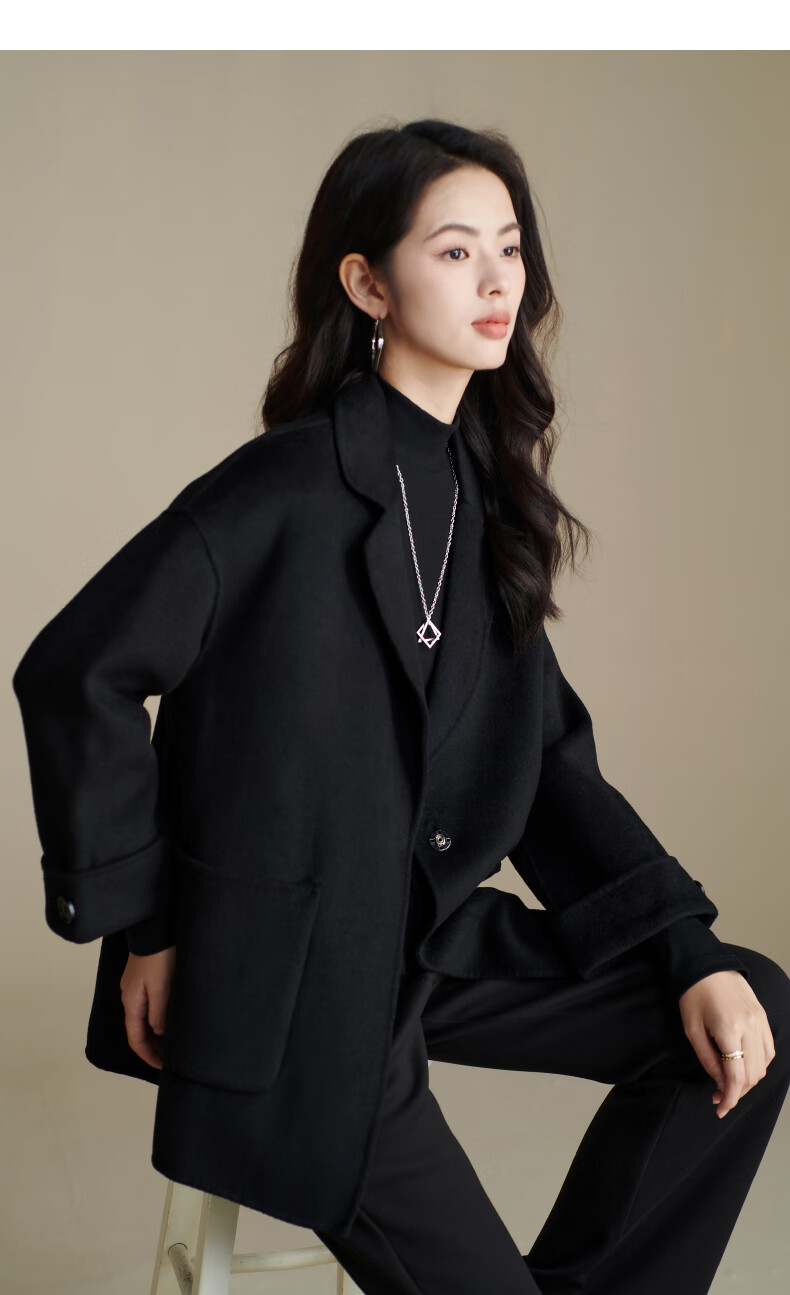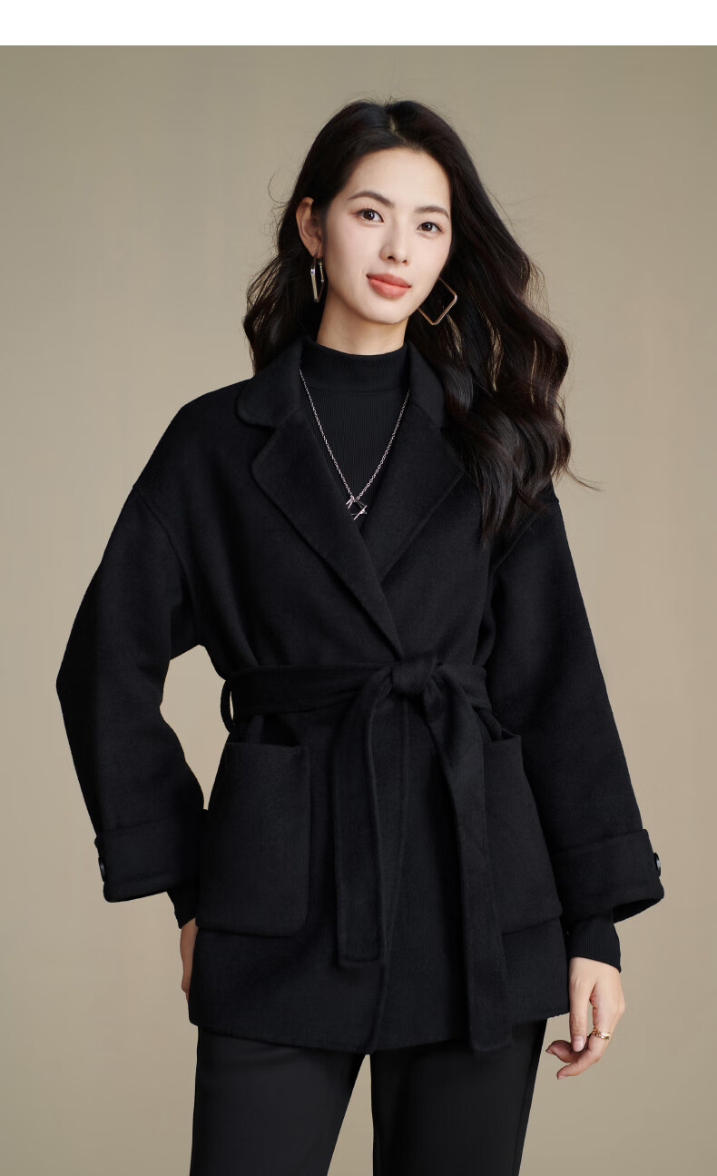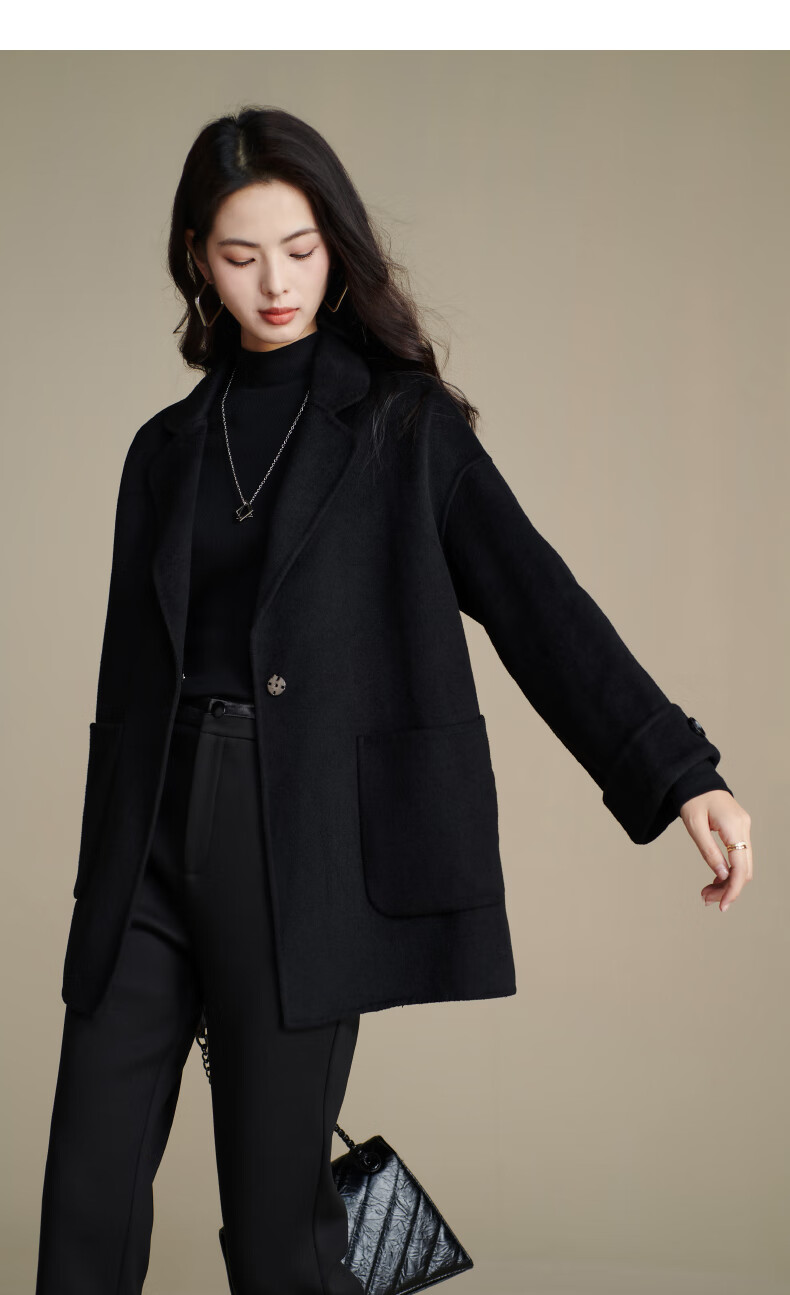 晚白【新品】小个子双面呢羊毛大衣女冬款纯色百搭通勤保暖外套 黑色 M