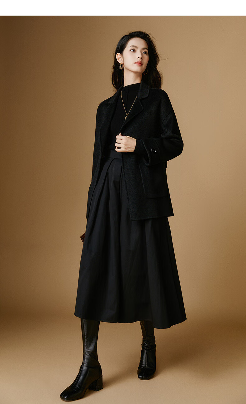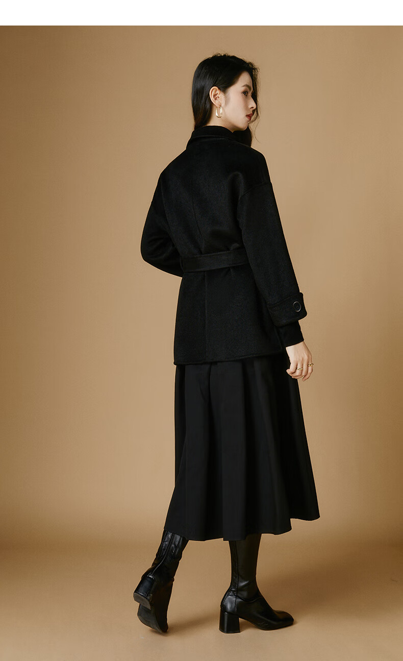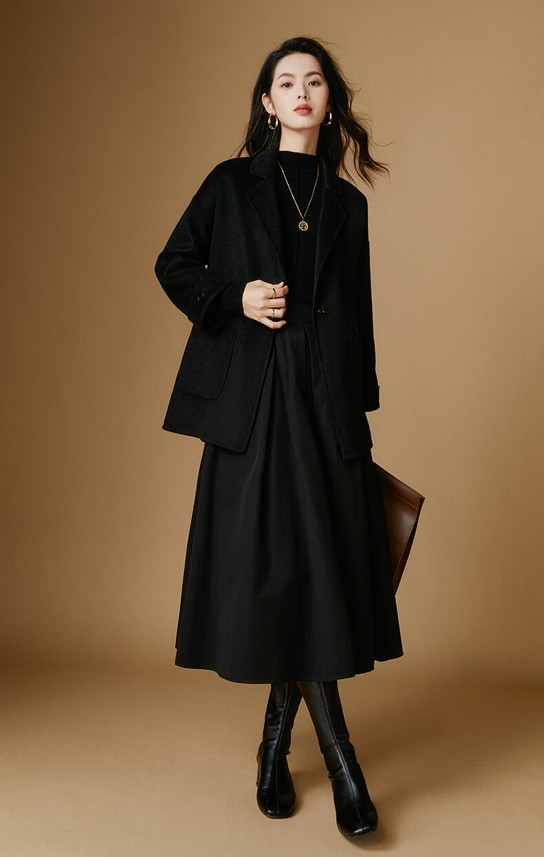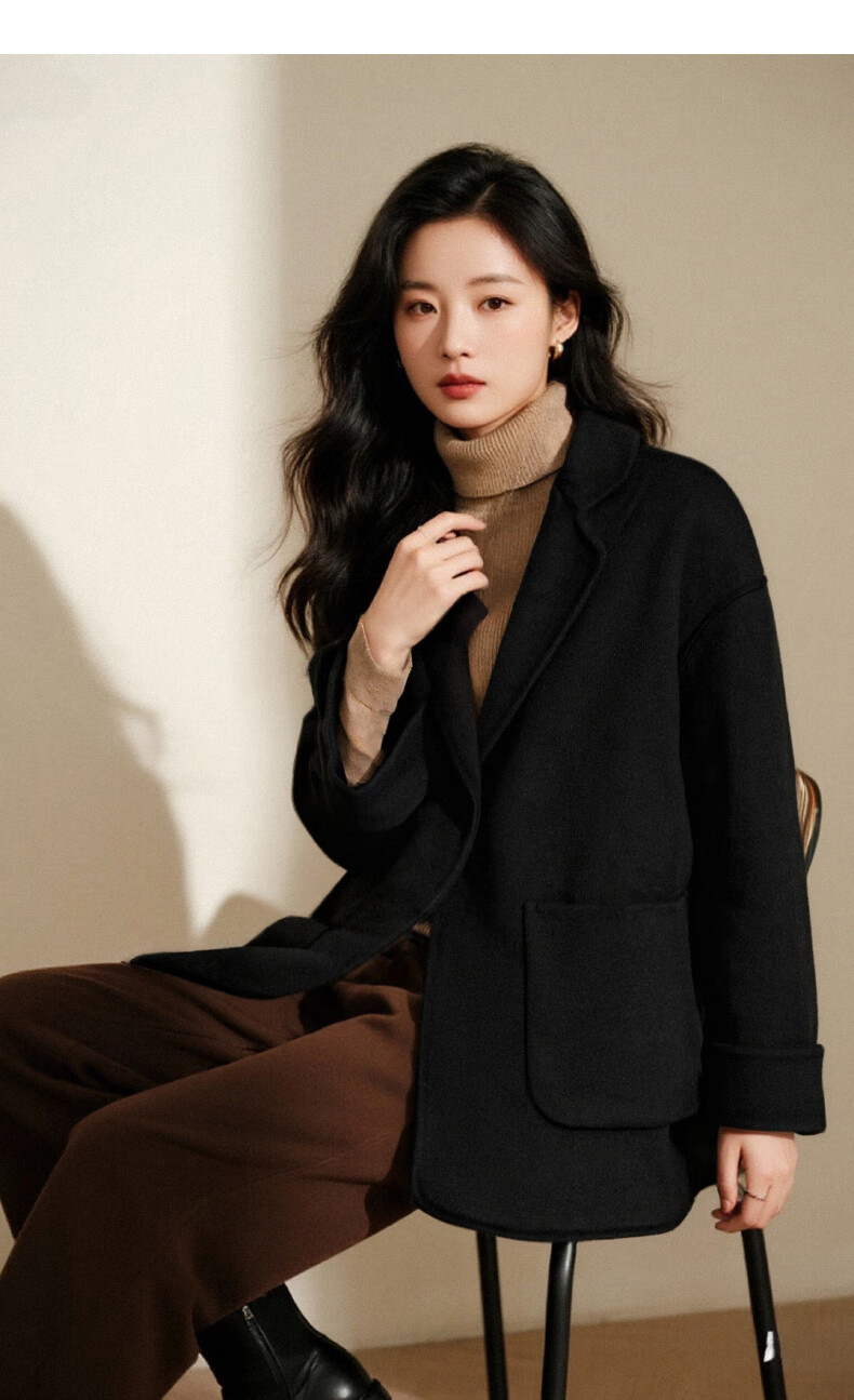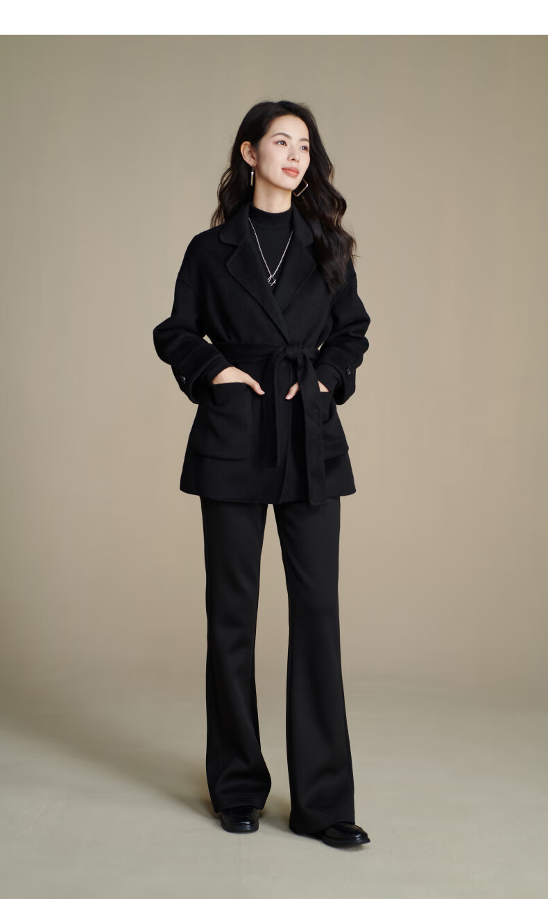 晚白【新品】小个子双面呢羊毛大衣女冬款纯色百搭通勤保暖外套 黑色 M
