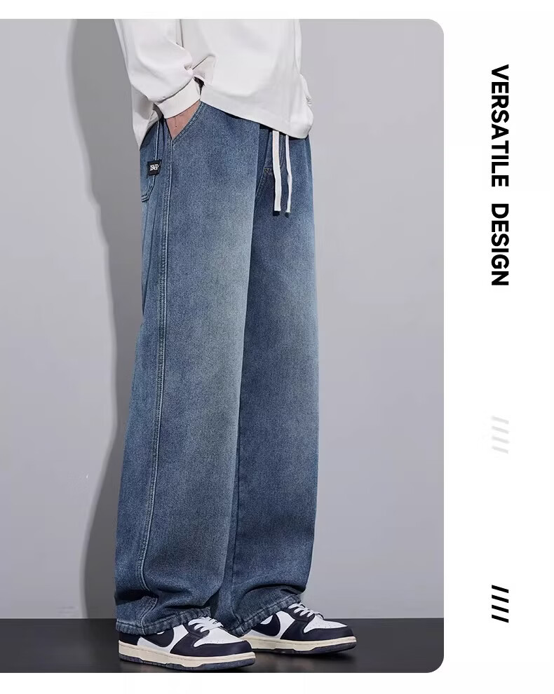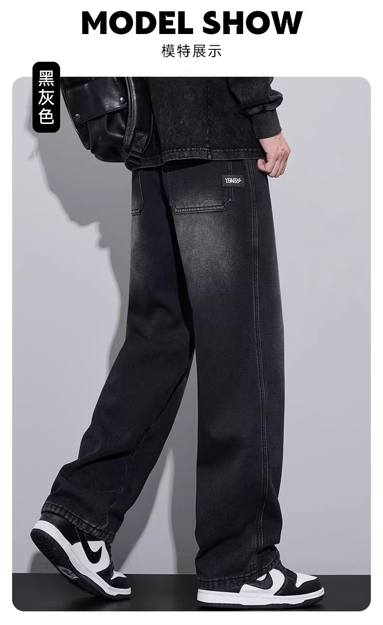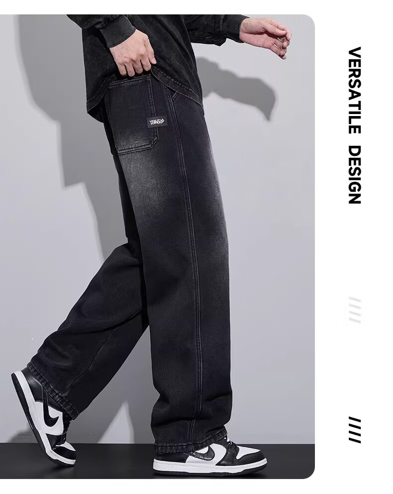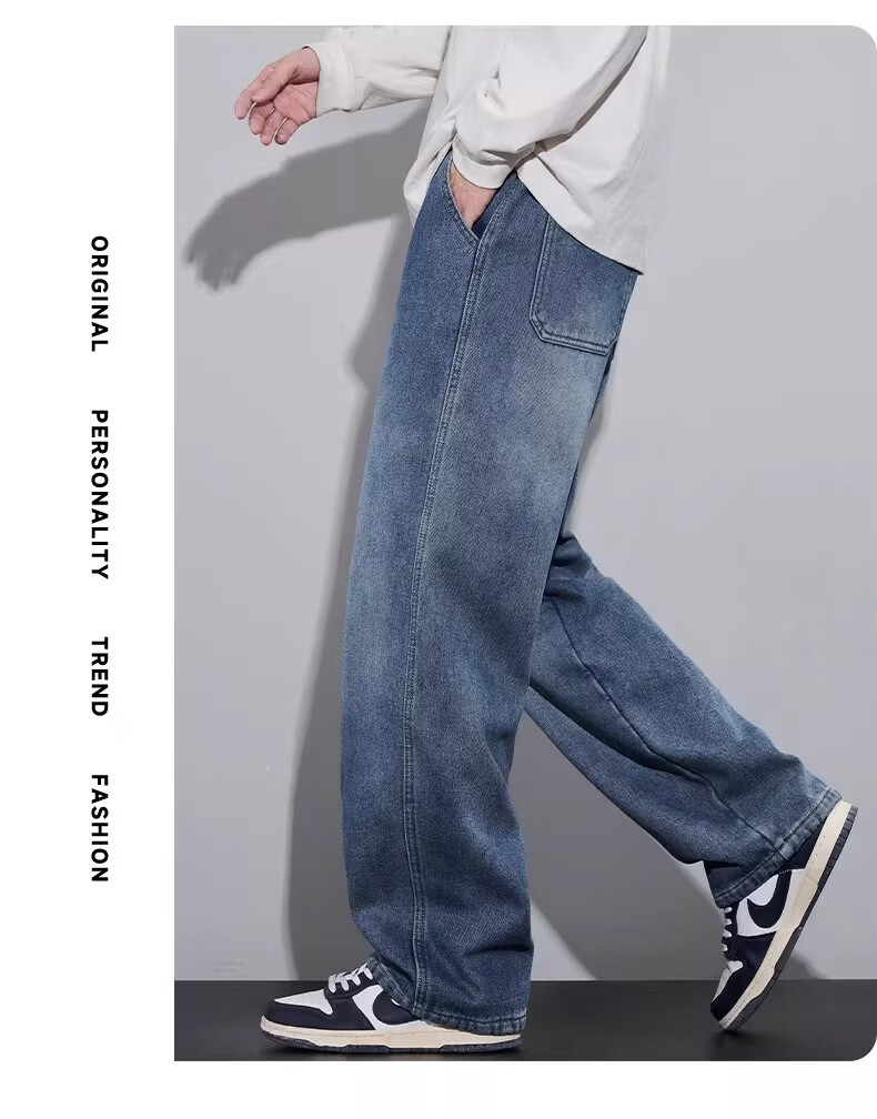 真维斯(Jeanswest)原色牛仔裤男冬季新款加绒加厚直筒宽松美式潮牌阔腿休闲裤 蓝色加绒 【加厚保暖】 28 【建议110-115斤】