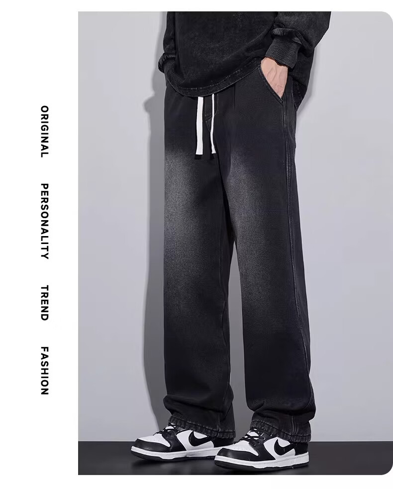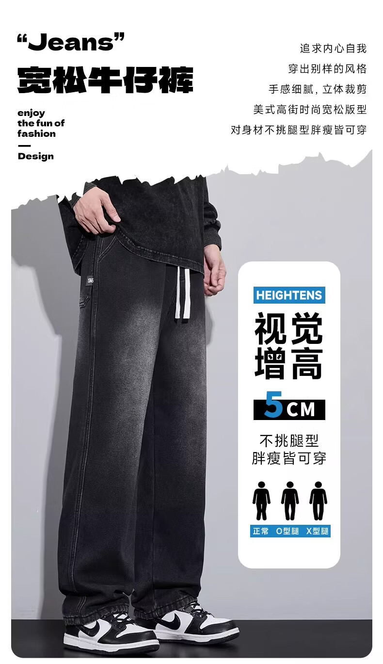 真维斯(Jeanswest)牛仔裤男潮牌新款男高街休闲裤男士2026春秋季百搭垂感直筒长裤男 黑色 纯色 31 (2尺4)