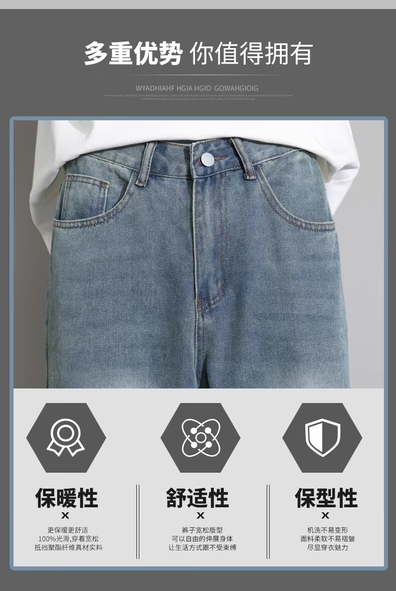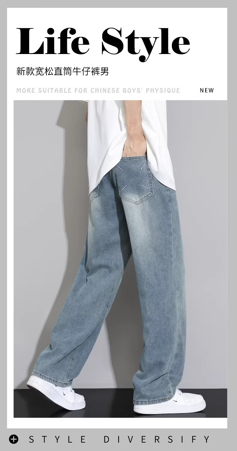 真维斯2026新款春季美式牛仔裤男生潮牌男士宽松直筒阔腿垂感休闲长裤子 M2怀旧蓝 28