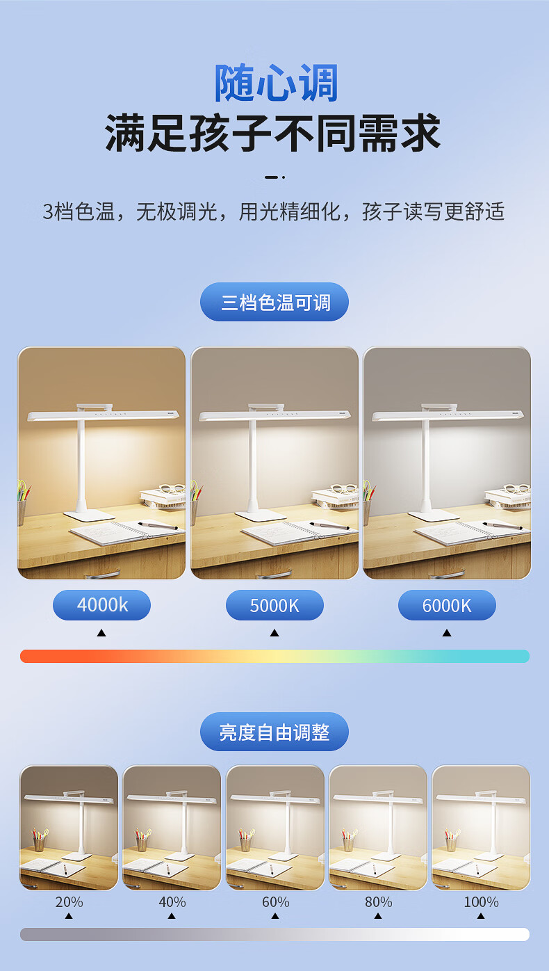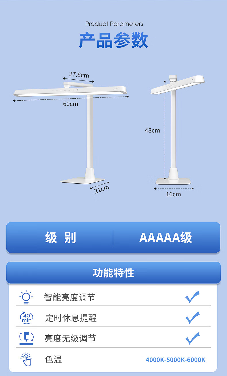 飞利浦护眼台灯 国AA级学生学习专用儿童阅读看书led床头灯桌路灯 【近视防控认证】 5A级护眼认证