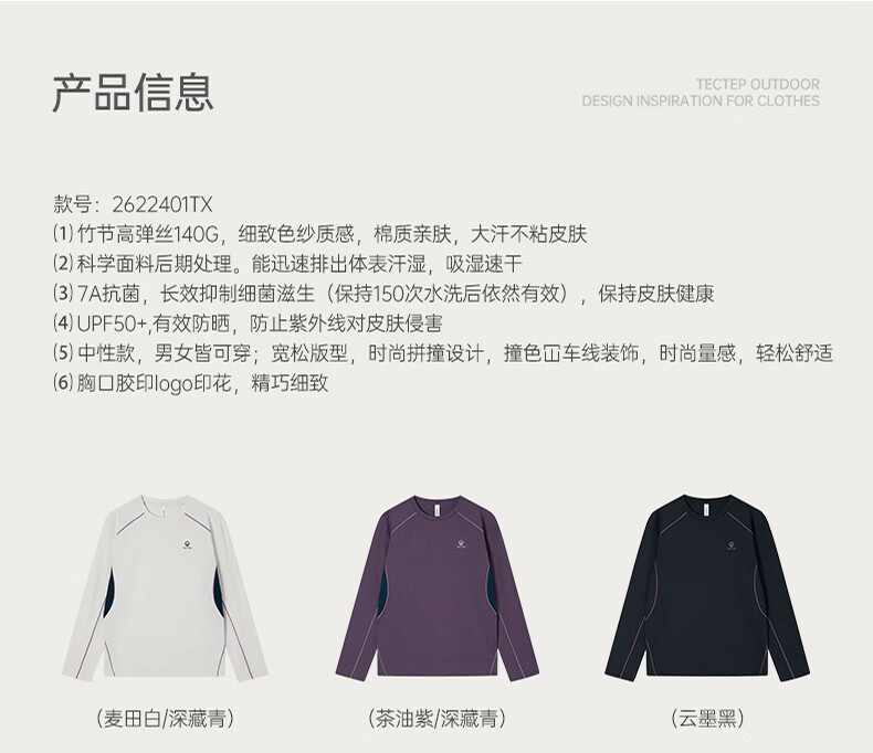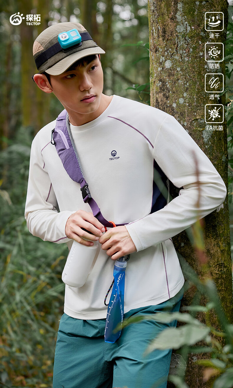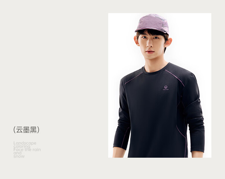 探拓(TECTOP)26新款速干衣男运动长袖t恤户外情侣跑步登山徒步 云墨黑 2XL