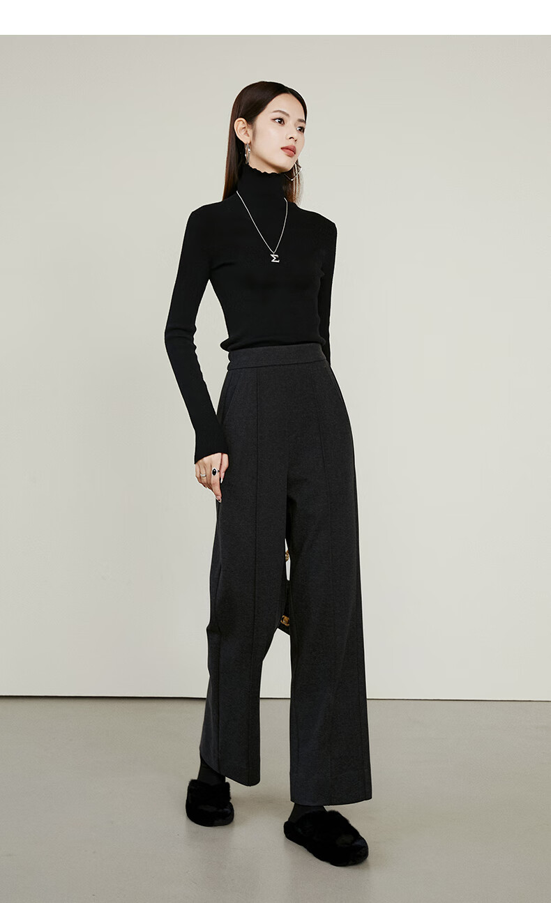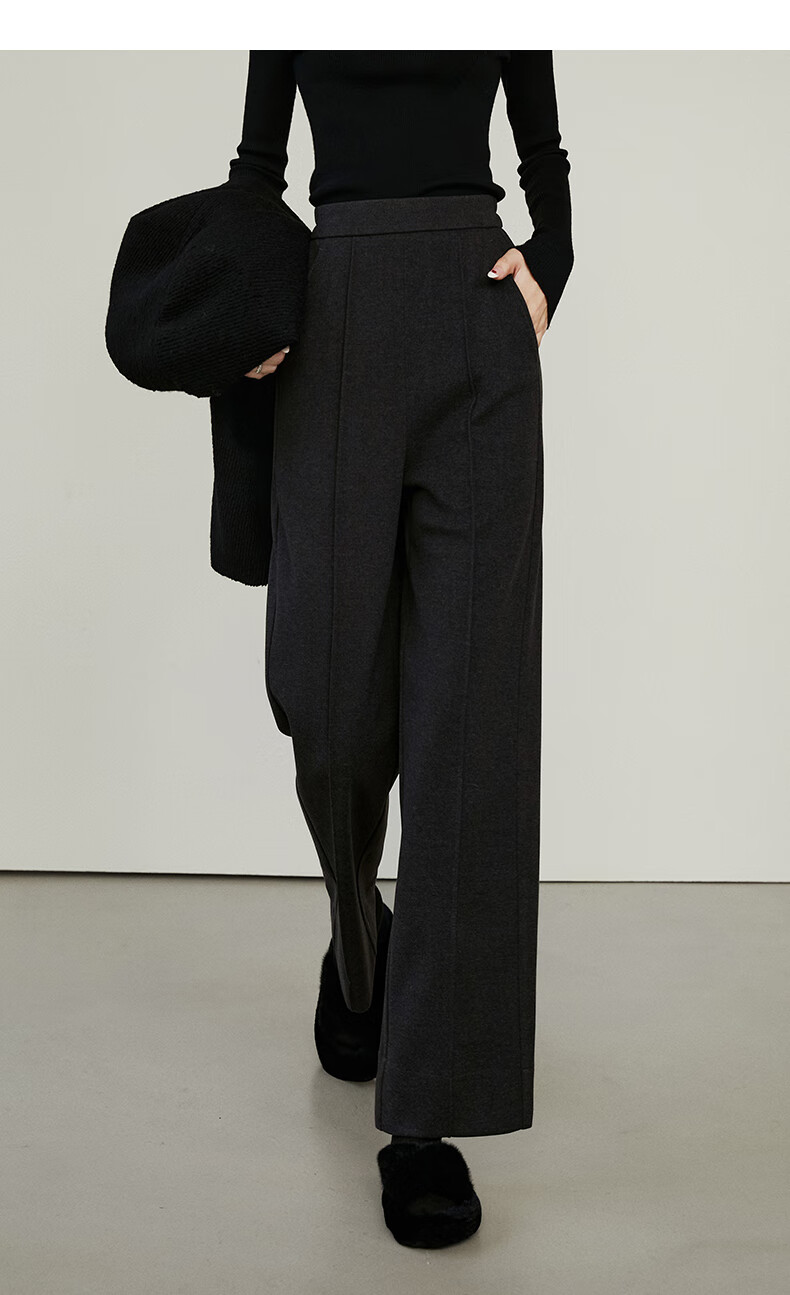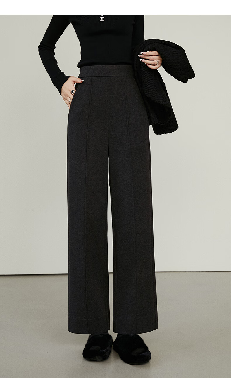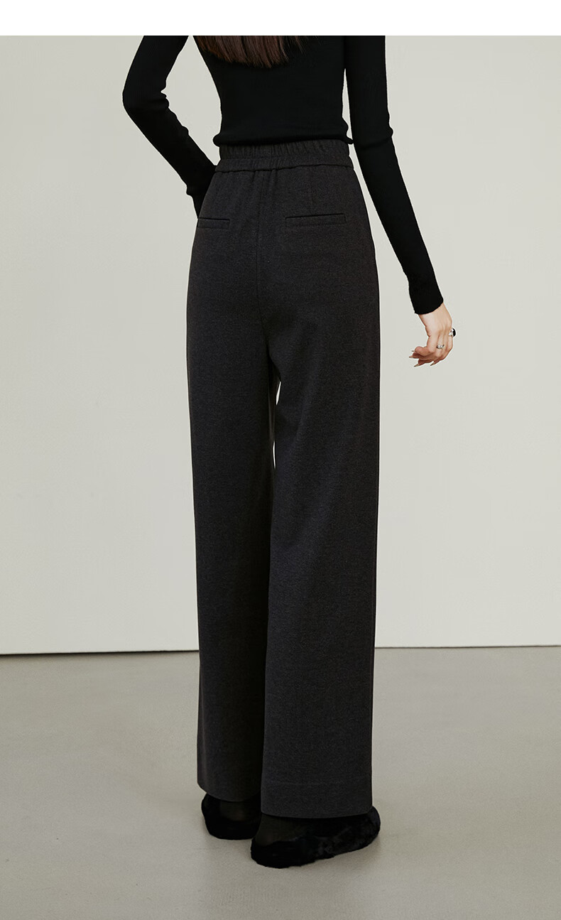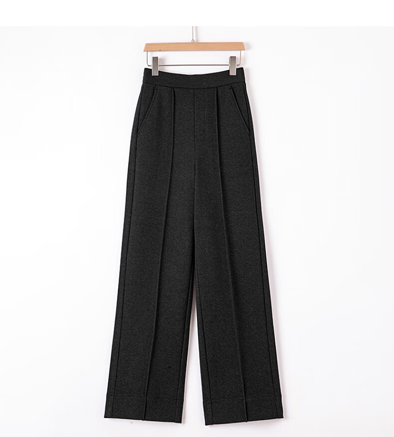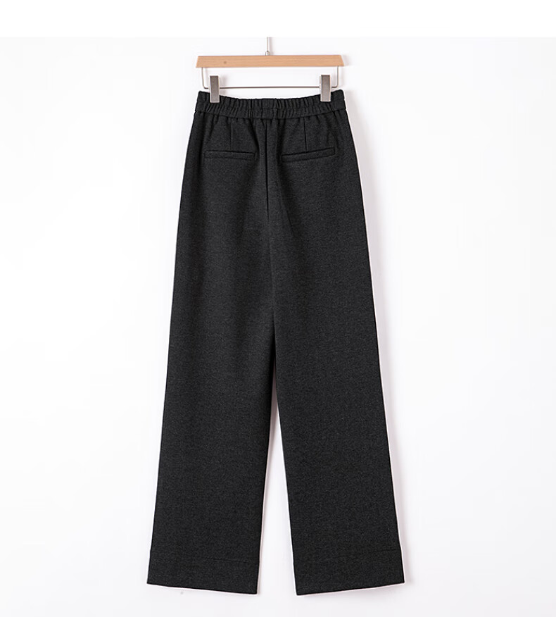 晚白【新品】冬款时尚简约裤子全松紧高腰厚毛呢直筒休闲裤女 麻灰色 26