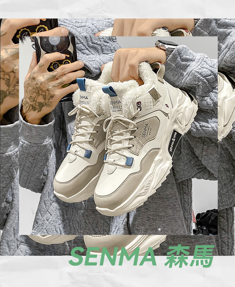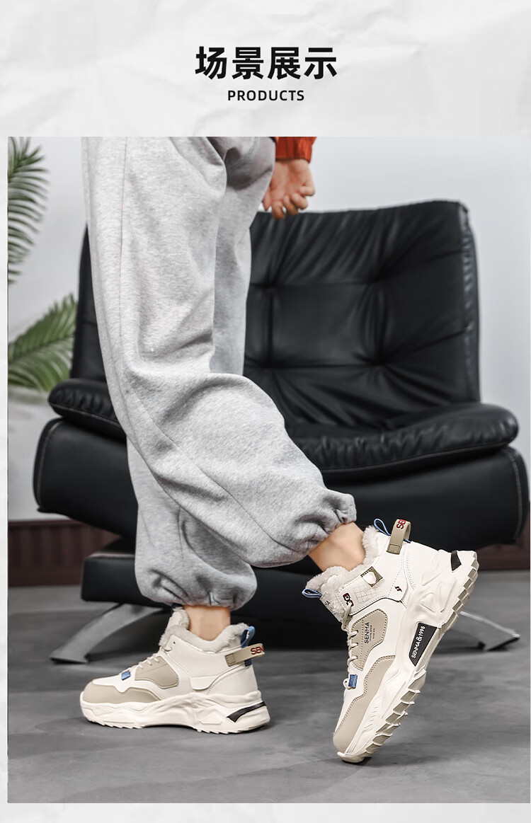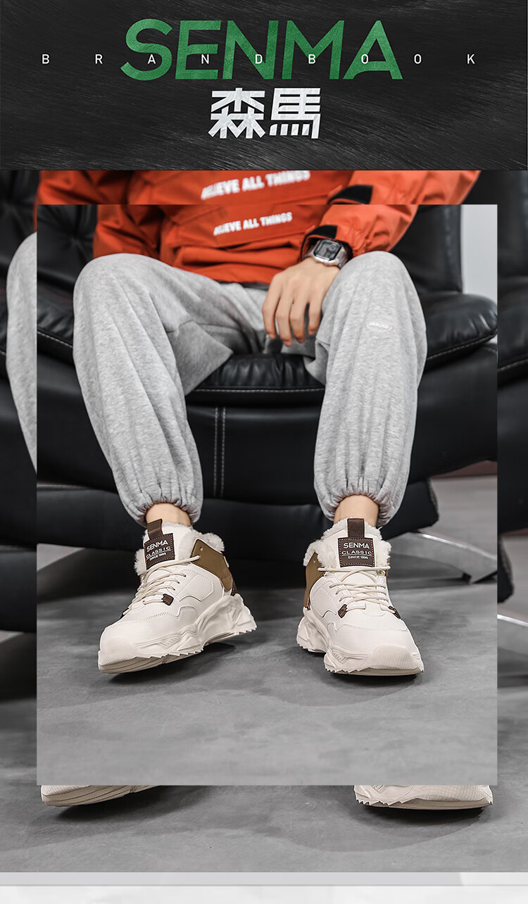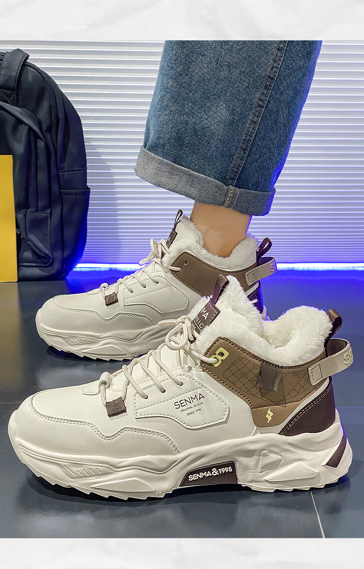 森馬雪地靴男鞋冬季加绒保暖防寒棉鞋男士高帮防滑耐磨增高运动老爹鞋 米黑【单鞋款】 41 标准码数/现货秒发