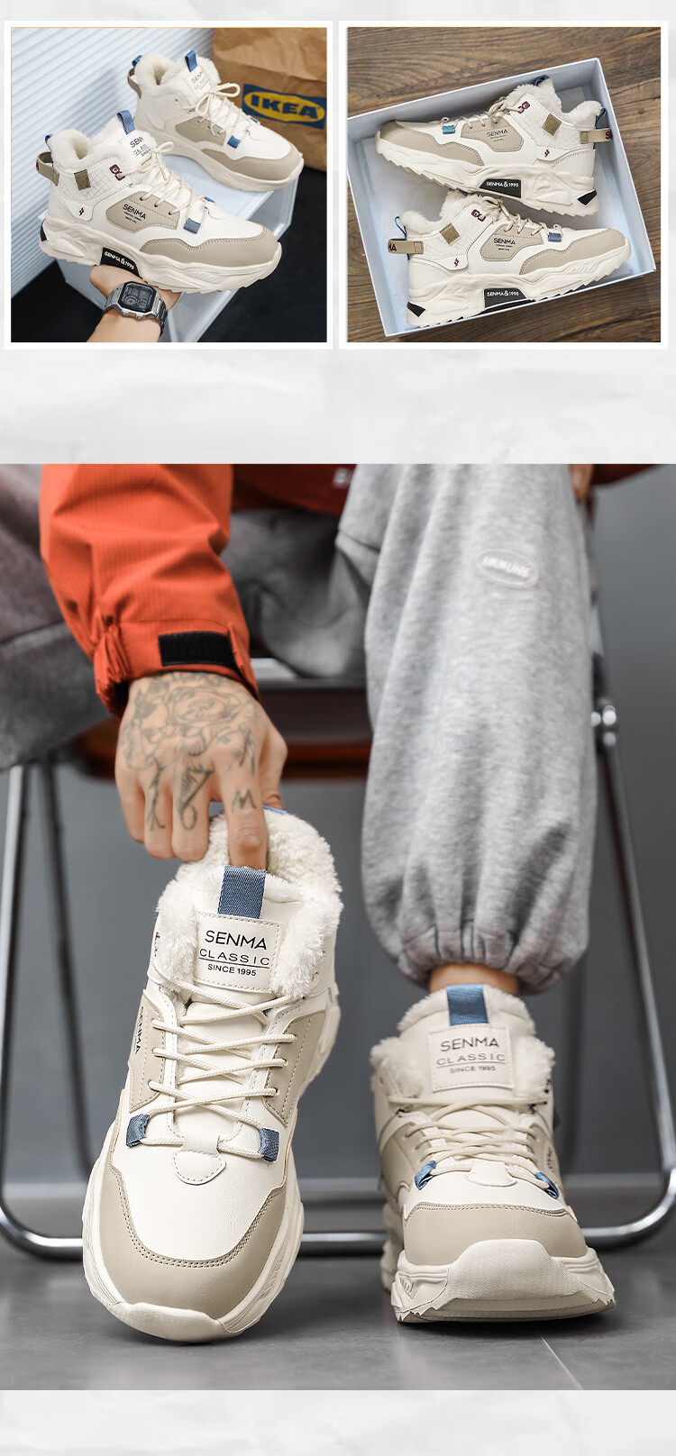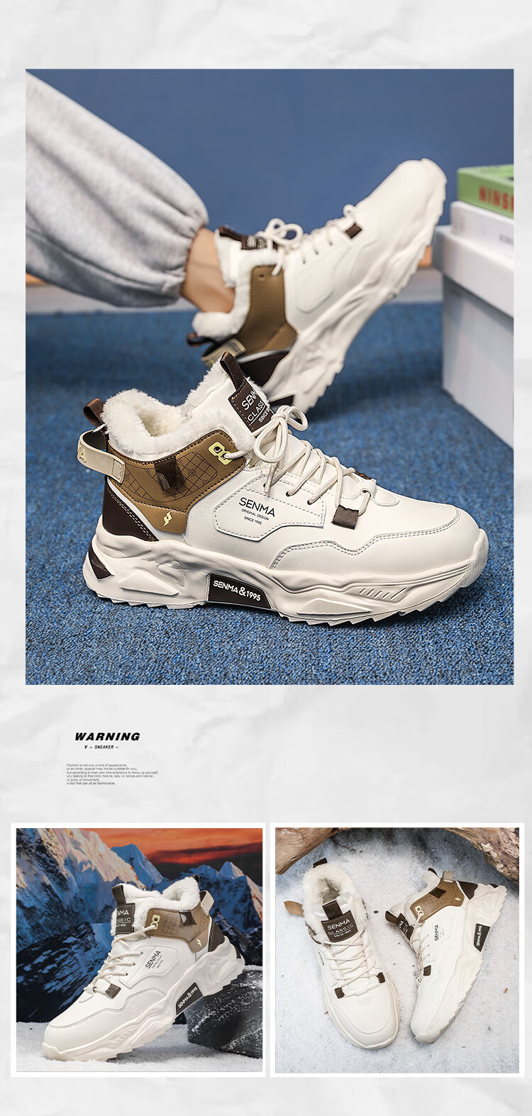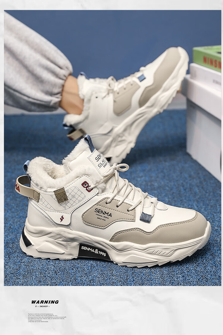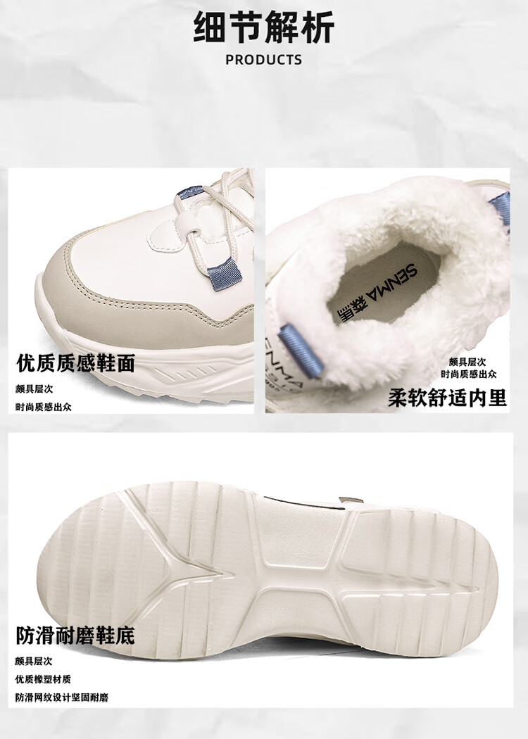 森馬雪地靴男鞋冬季加绒保暖防寒棉鞋男士高帮防滑耐磨增高运动老爹鞋 米黑【单鞋款】 41 标准码数/现货秒发