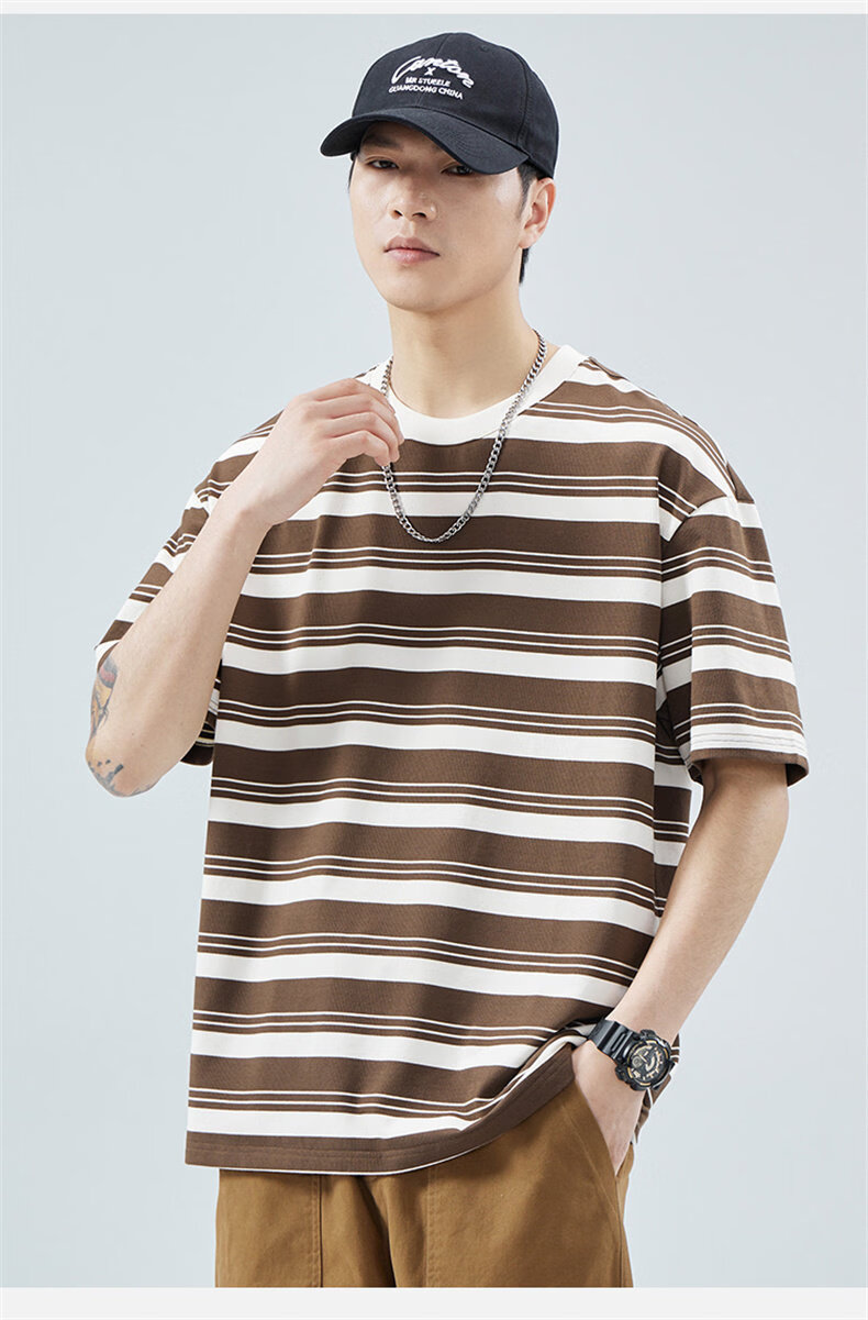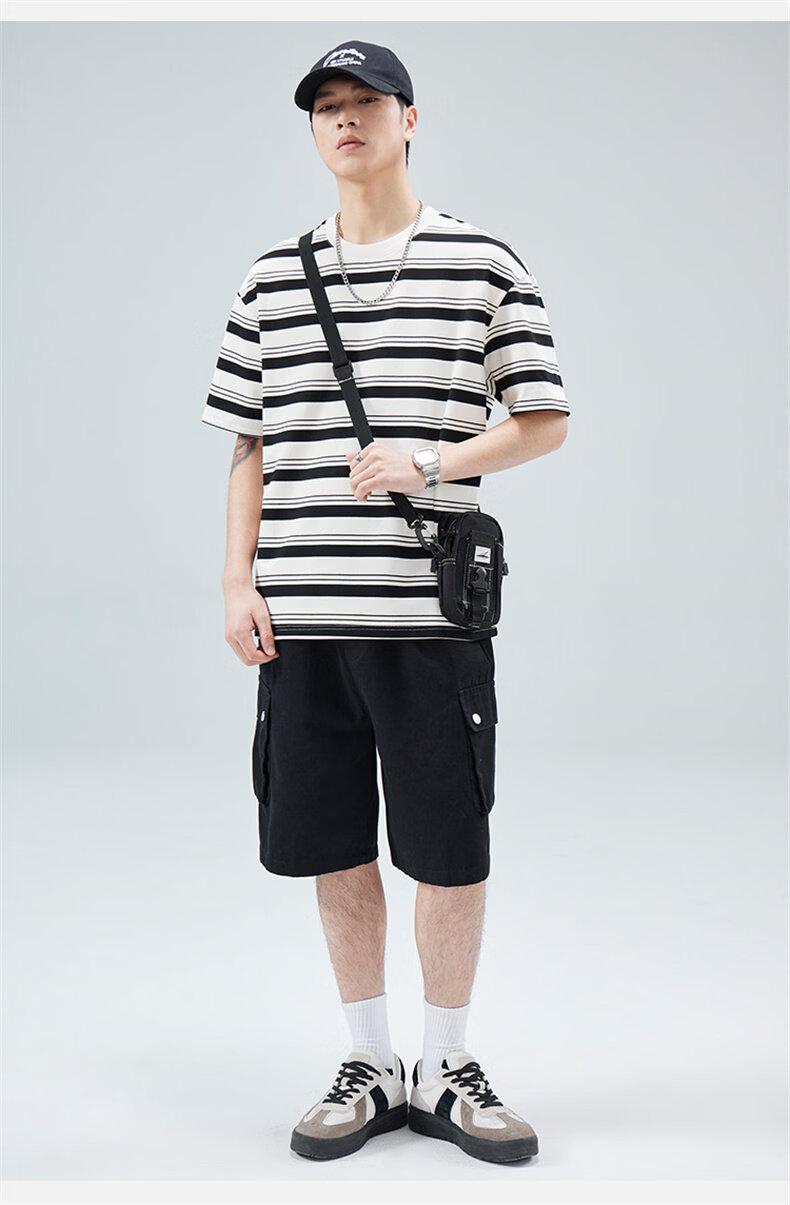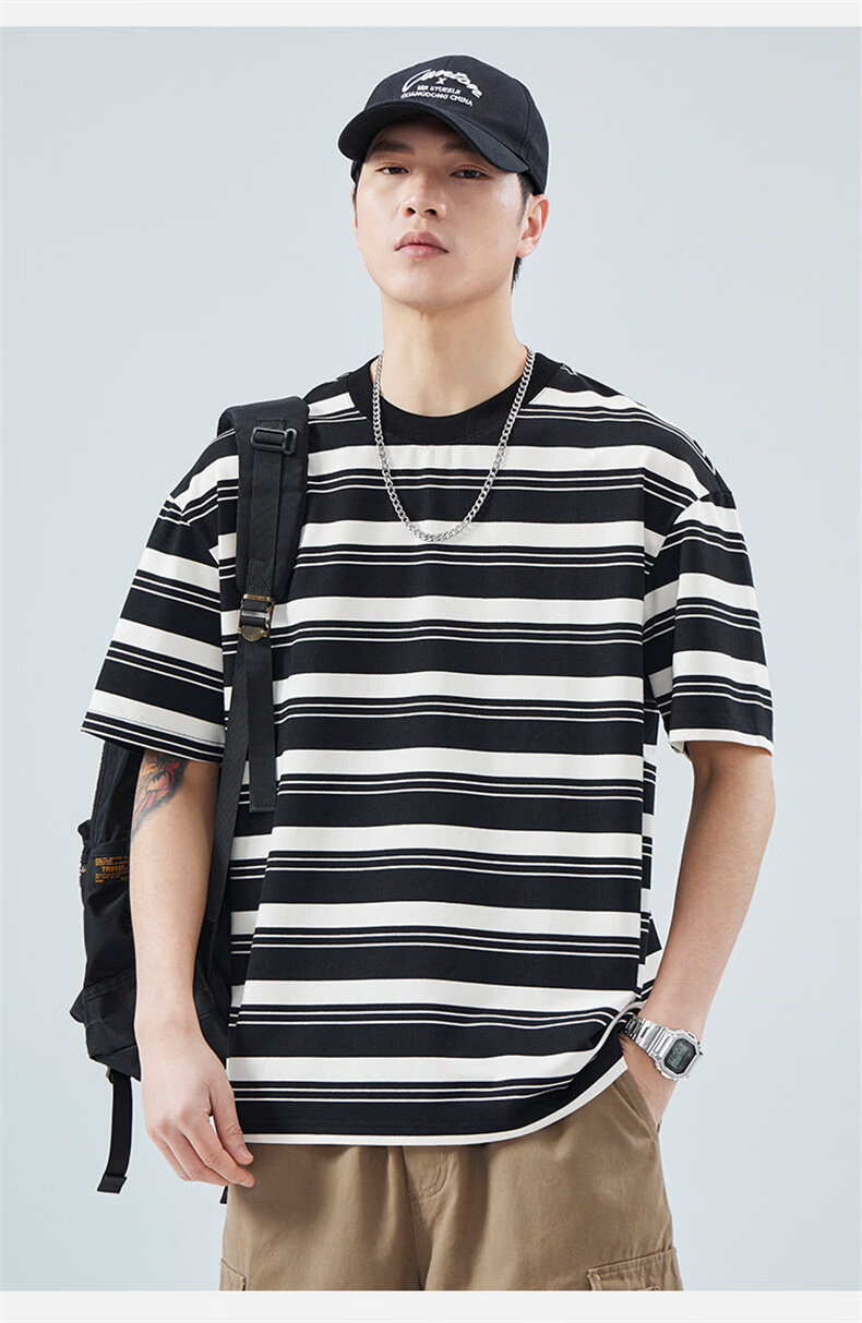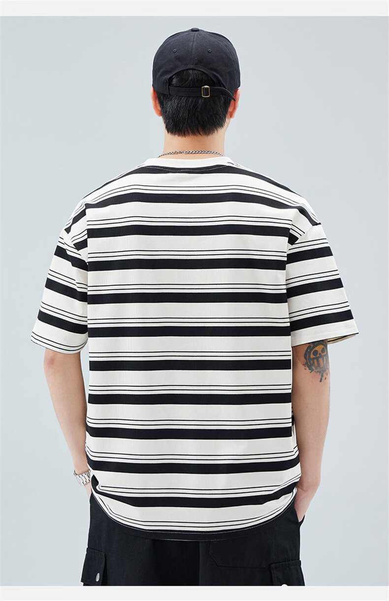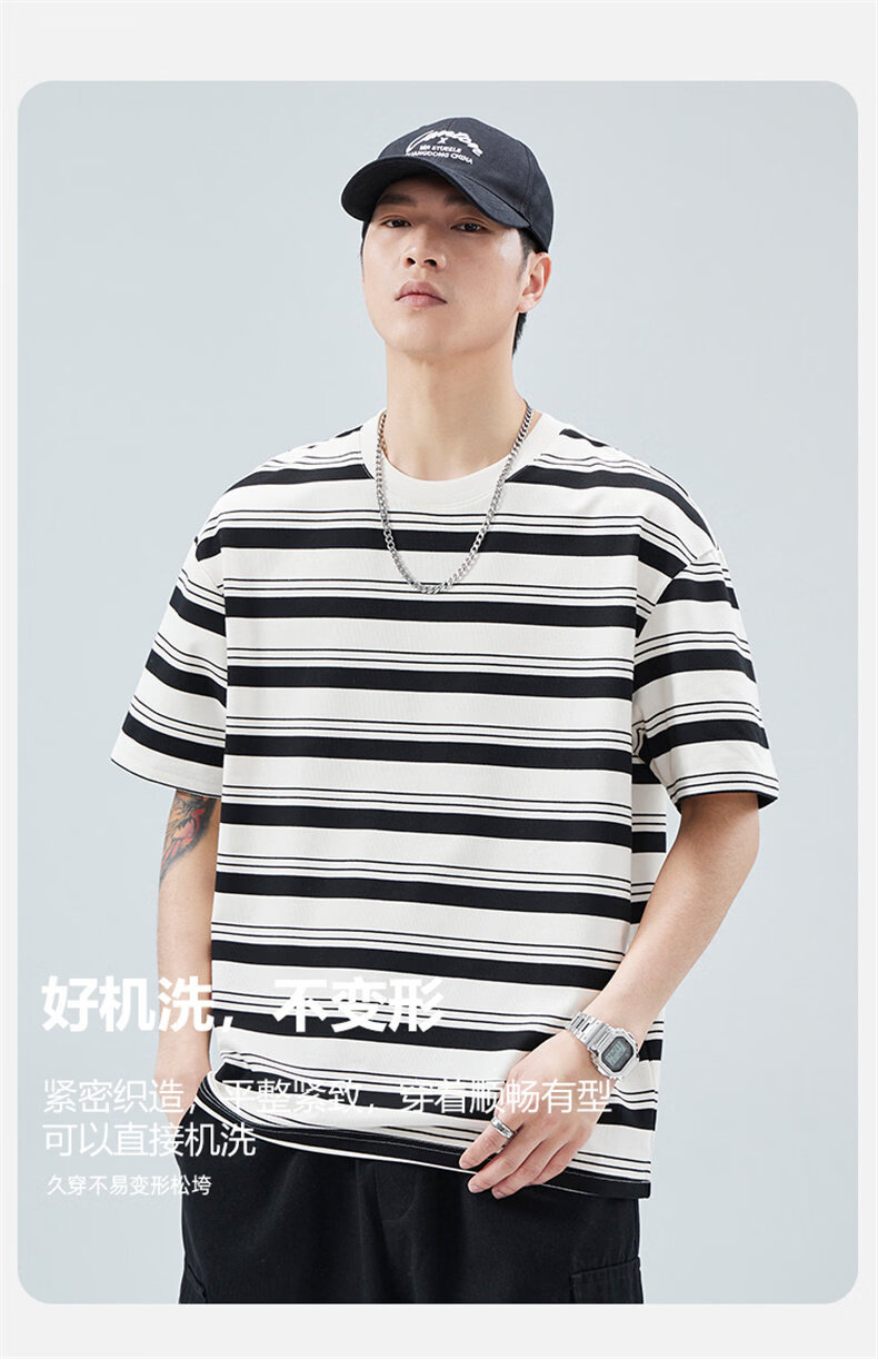 真维斯(Jeanswest)真维斯条纹短袖T恤男2025夏季新款宽松圆领半袖潮牌休闲百搭上衣 509白色 【夏季薄款】 M 建议身高160-165cm