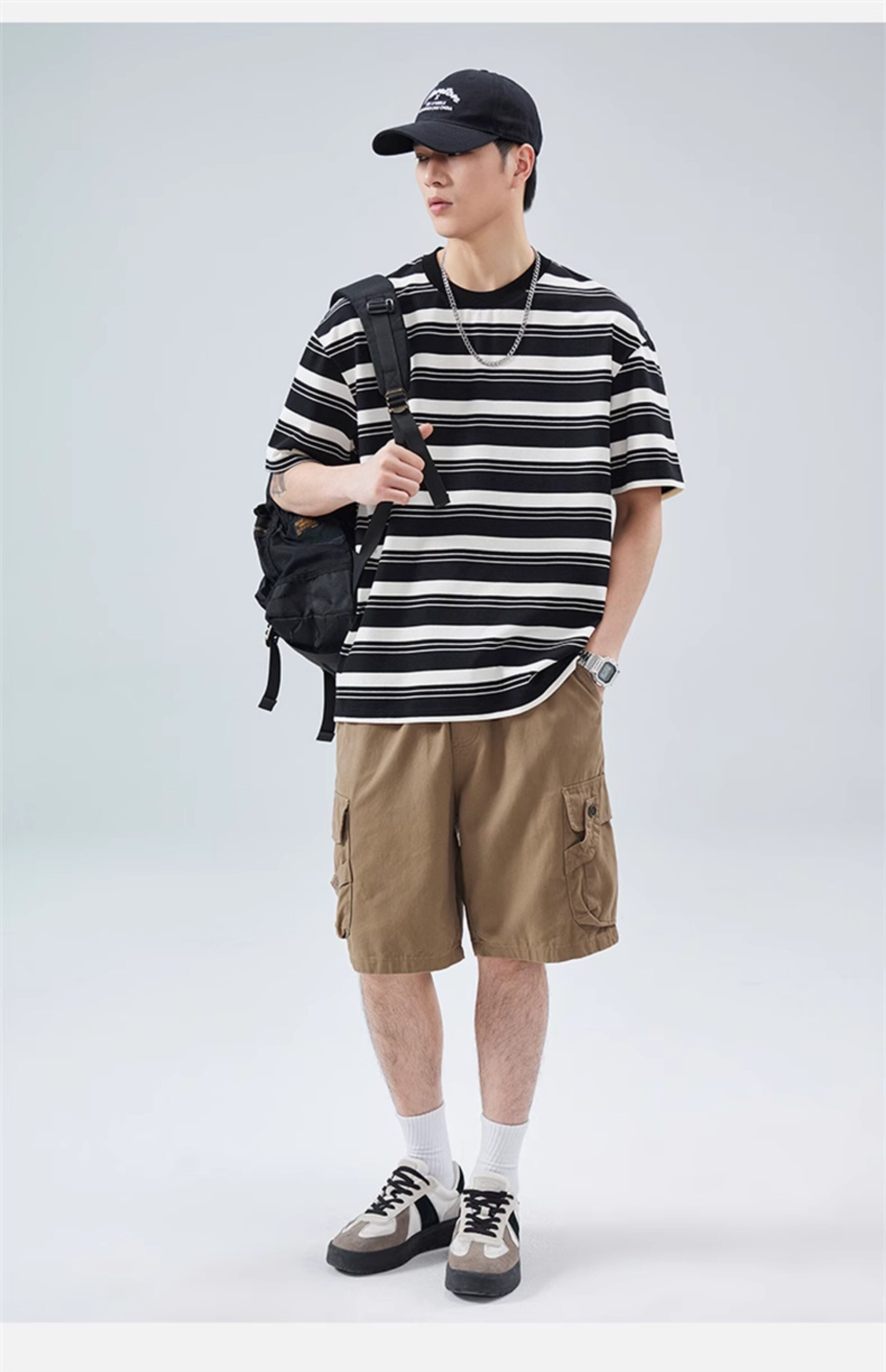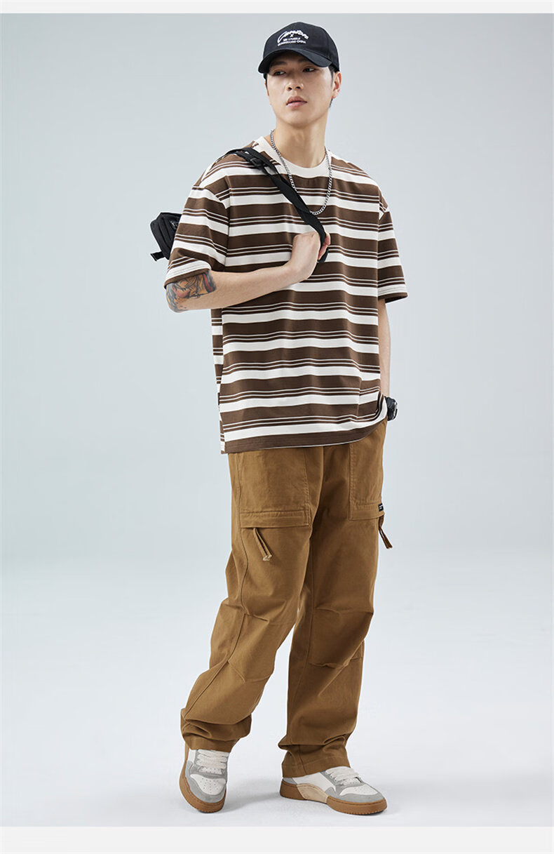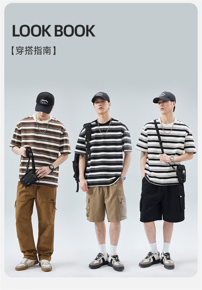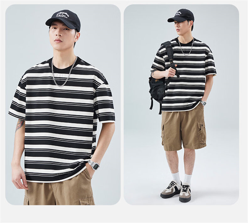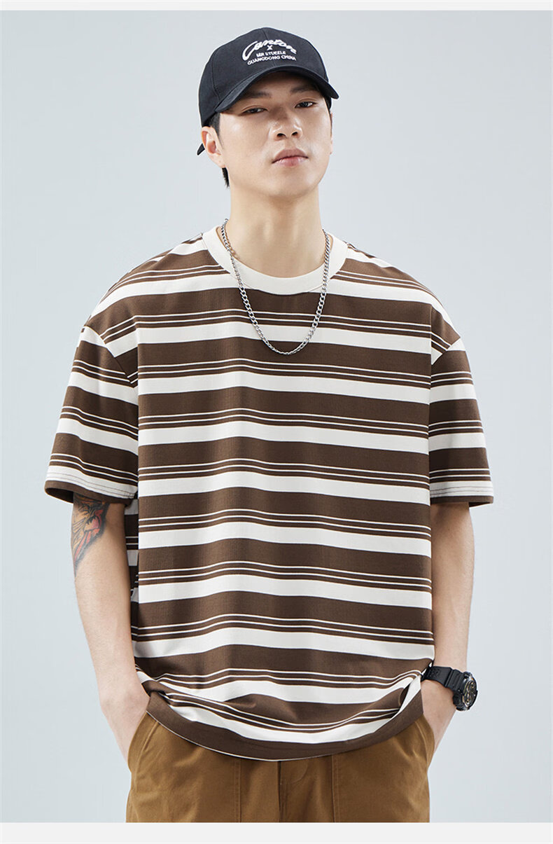 真维斯(Jeanswest)真维斯条纹短袖T恤男2025夏季新款宽松圆领半袖潮牌休闲百搭上衣 509白色 【夏季薄款】 M 建议身高160-165cm