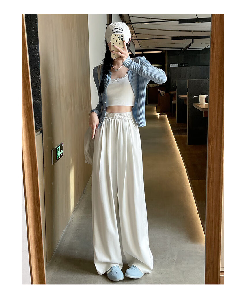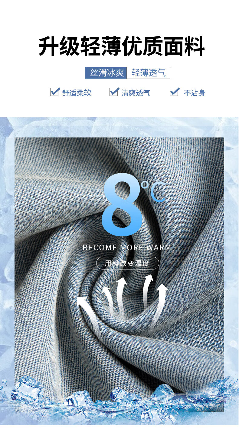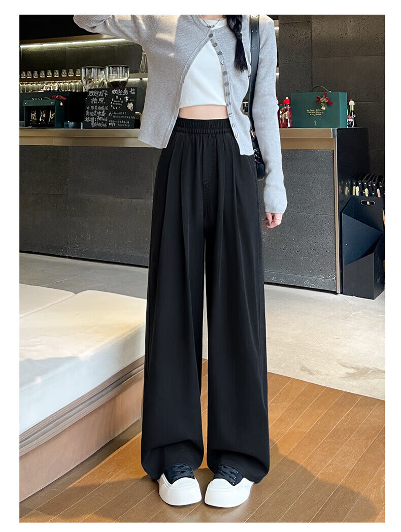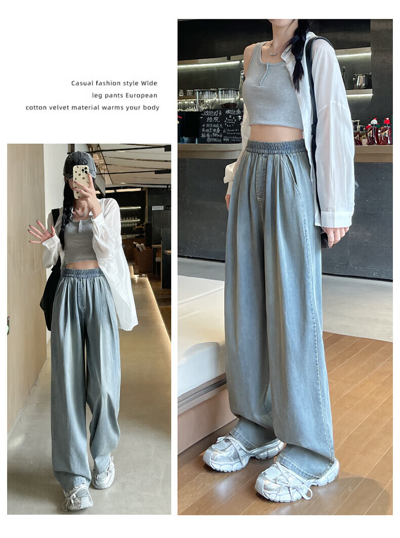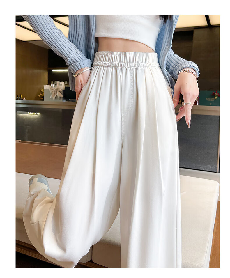 浪莎天丝牛仔裤女夏季薄款2026新款显瘦直筒宽松垂感冰丝松紧腰阔腿裤 蓝色 S 【适合80-105斤】
