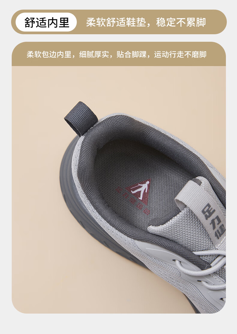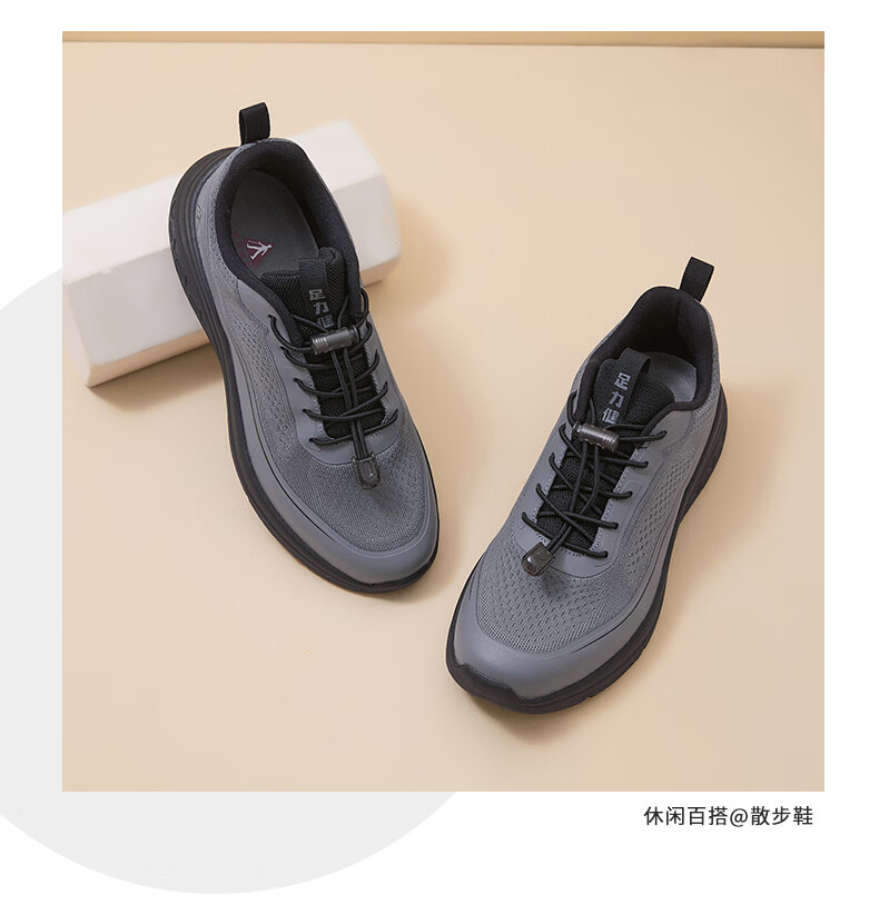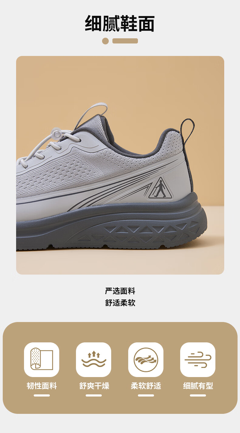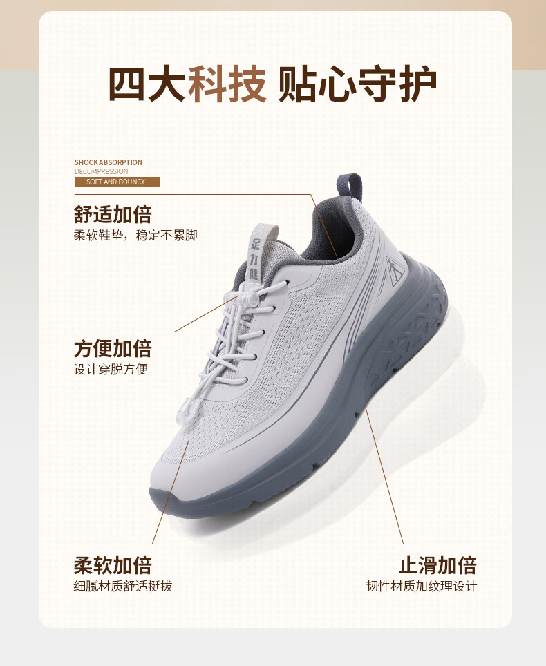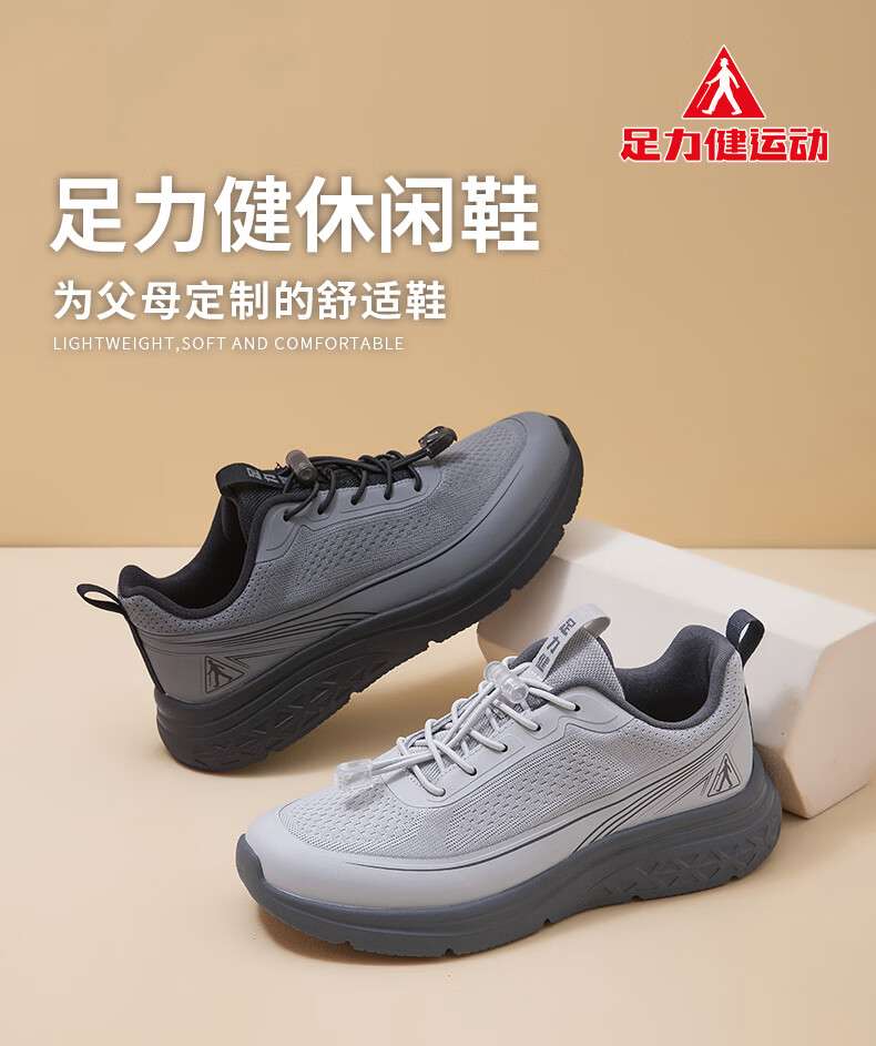足力健老人鞋男鞋春夏季软底轻便健步鞋中老人耐磨运动鞋新款防滑爸爸鞋 浅灰色 45