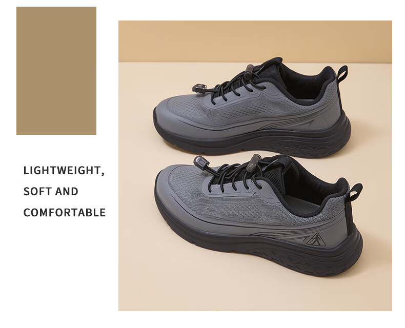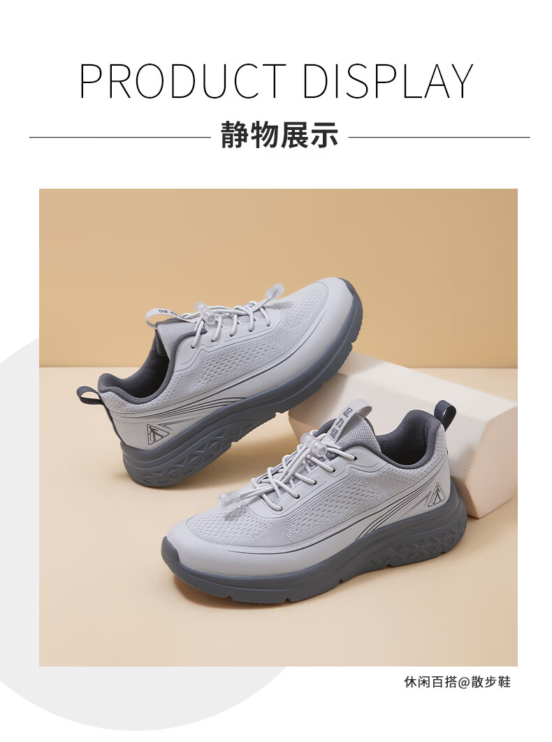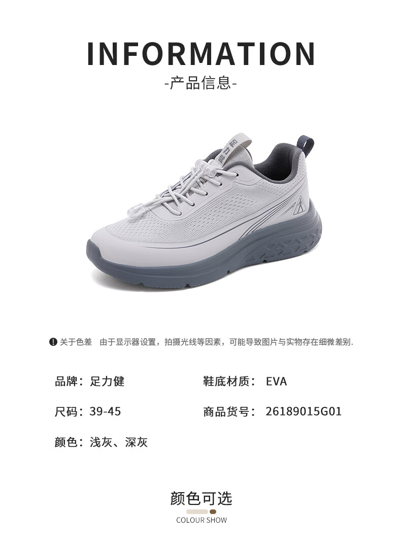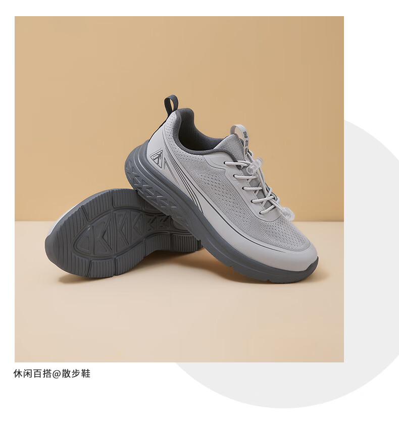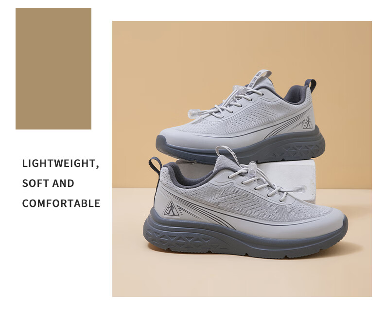 足力健老人鞋男鞋春夏季软底轻便健步鞋中老人耐磨运动鞋新款防滑爸爸鞋 浅灰色 45