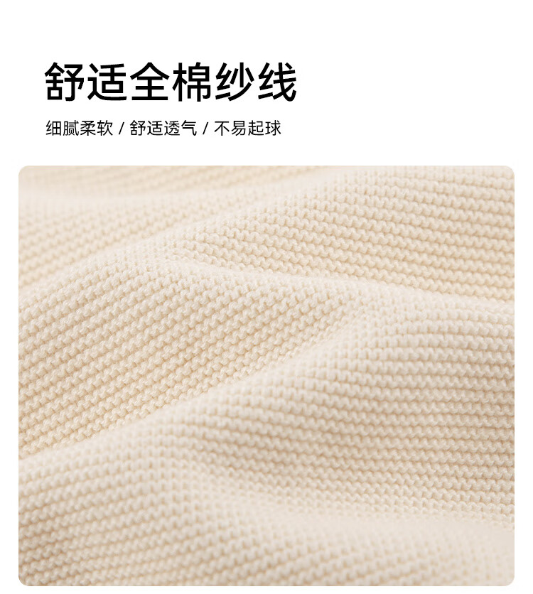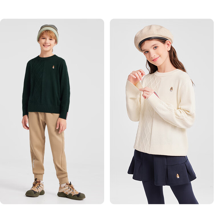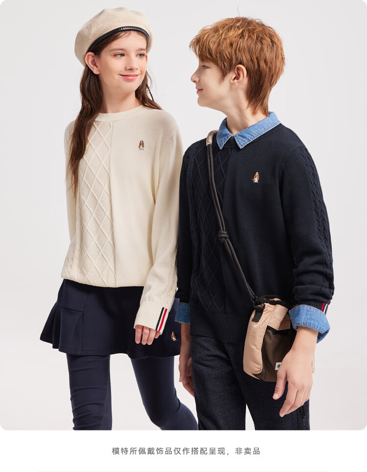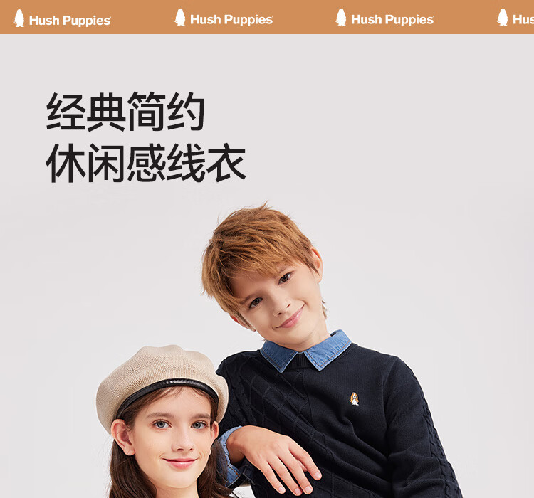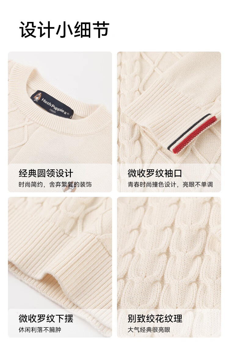 暇步士(Hush Puppies)【经典款】童装儿童男女大童秋季新款简约舒适时尚百搭线衣 奶油色 130 cm