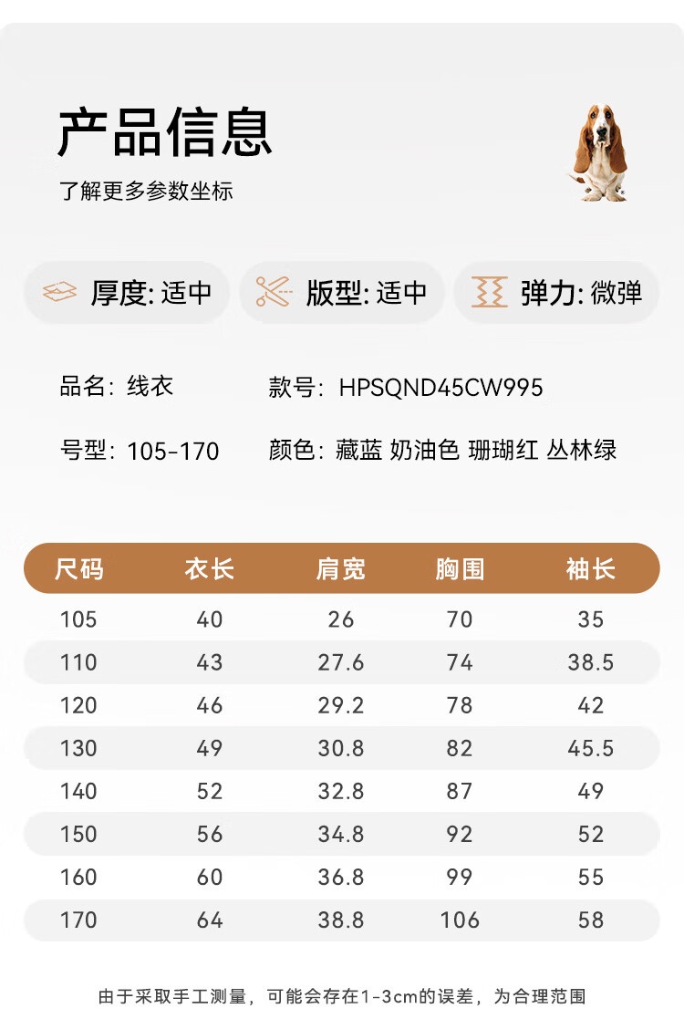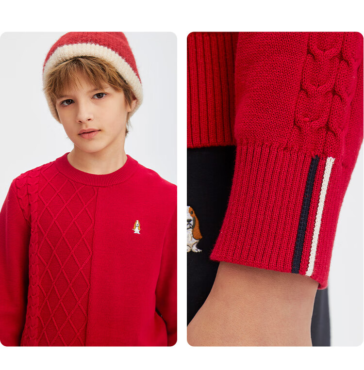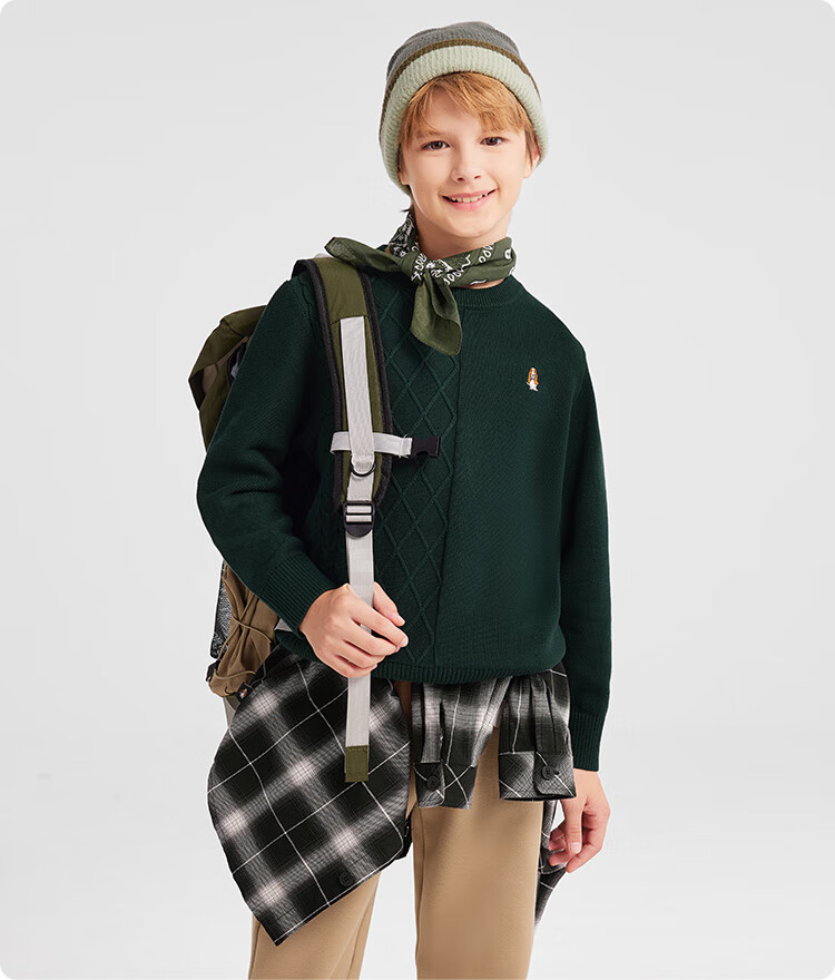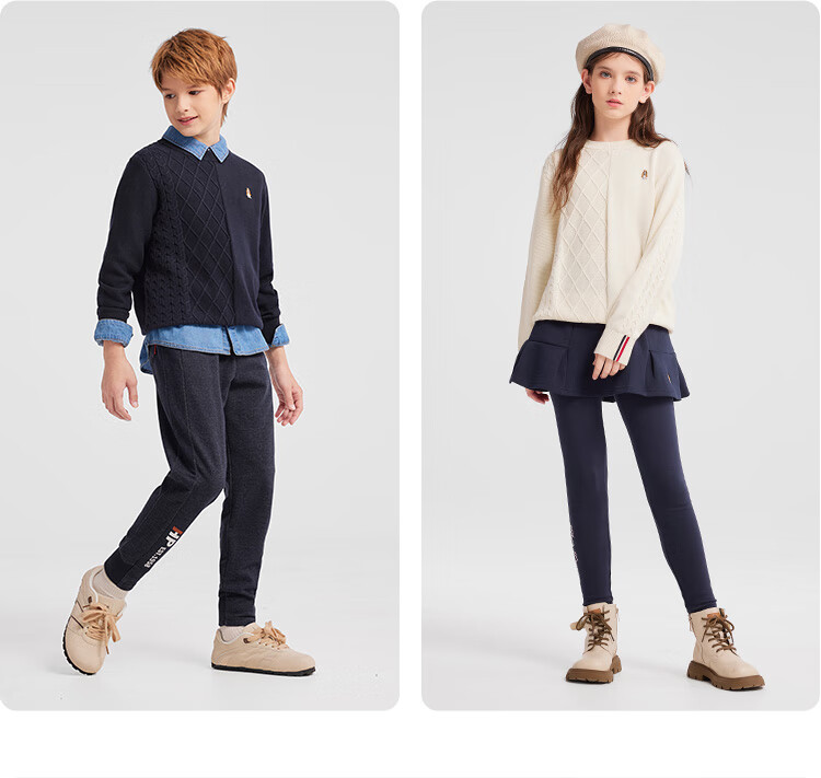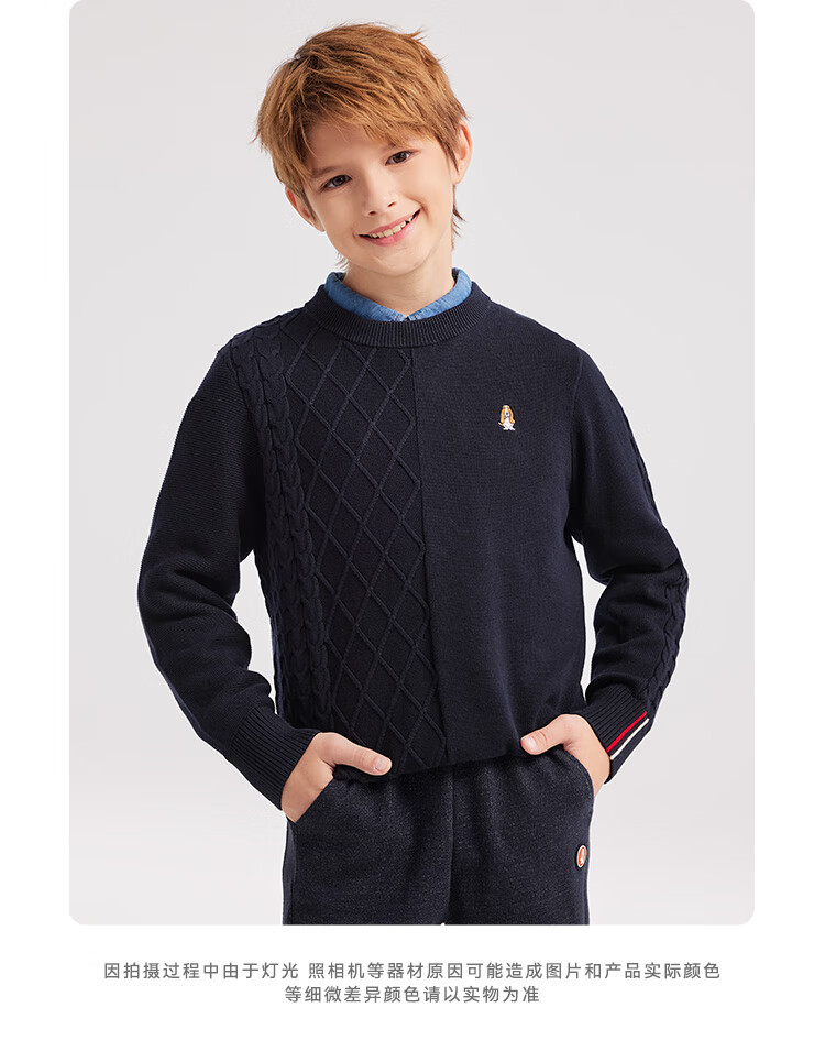 暇步士(Hush Puppies)【经典款】童装儿童男女大童秋季新款简约舒适时尚百搭线衣 奶油色 130 cm
