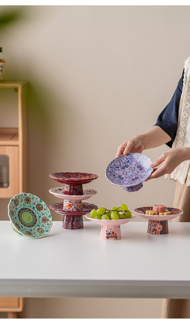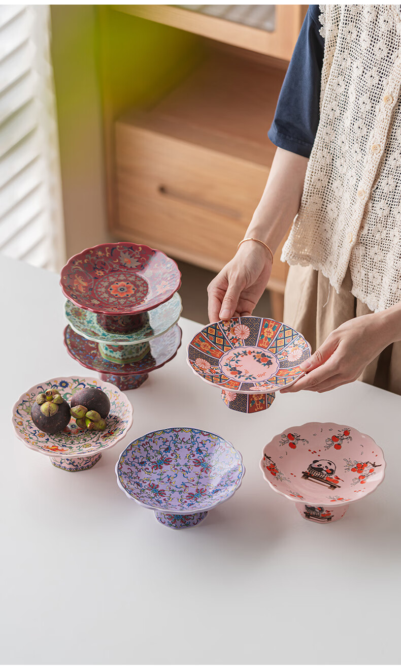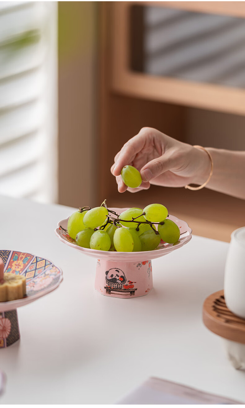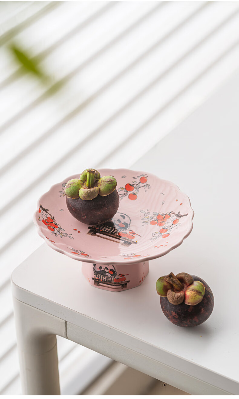 豪祥【现货直发】陶瓷果盘高端精致高颜值水果盘客厅茶几家用下午茶点 珐琅彩果盘-熊猫柿柿如意 无规格