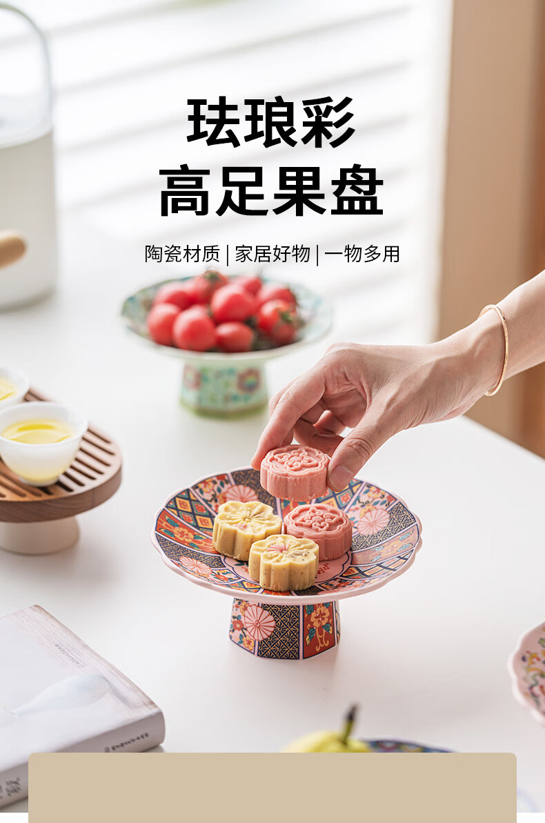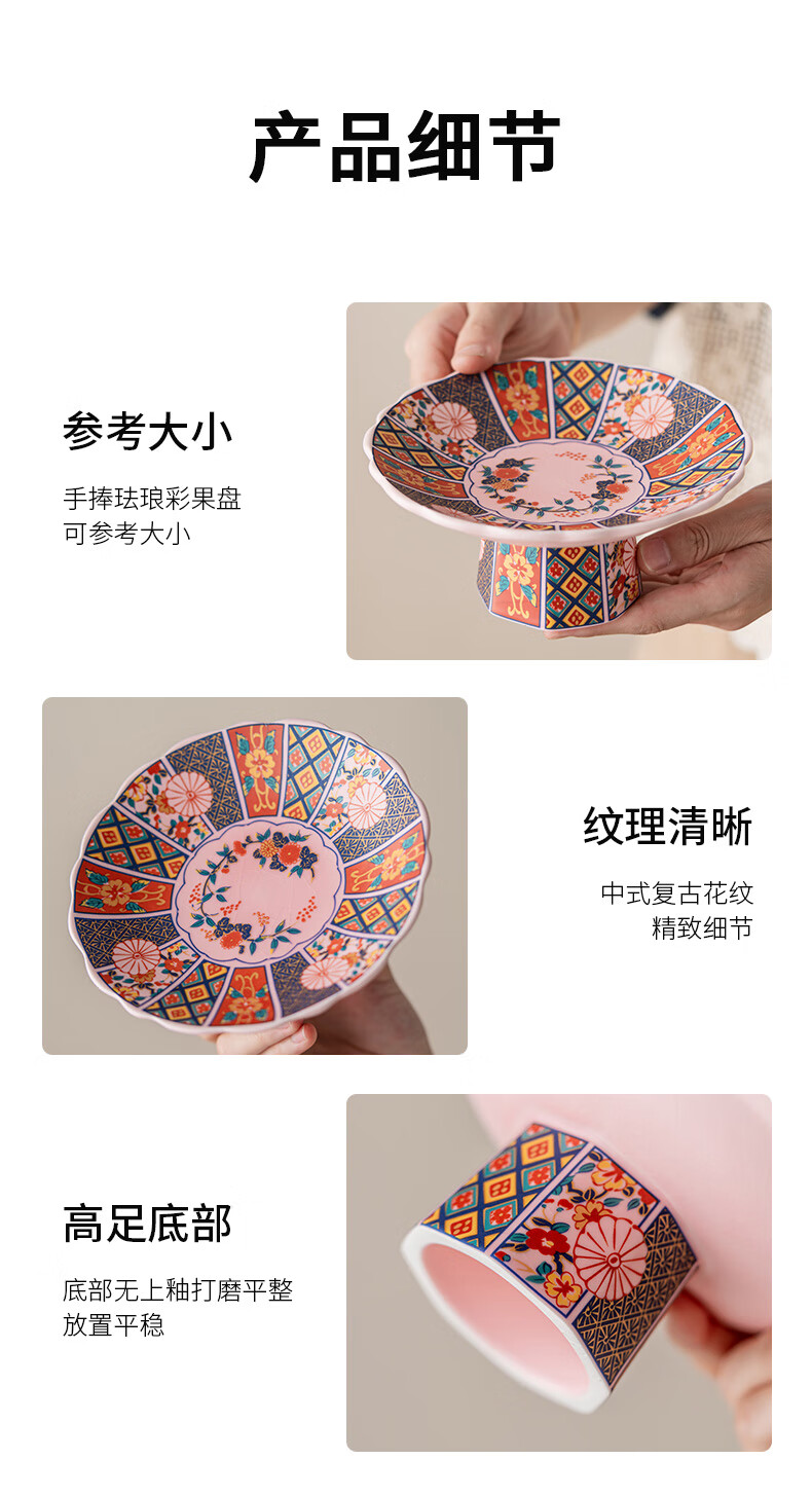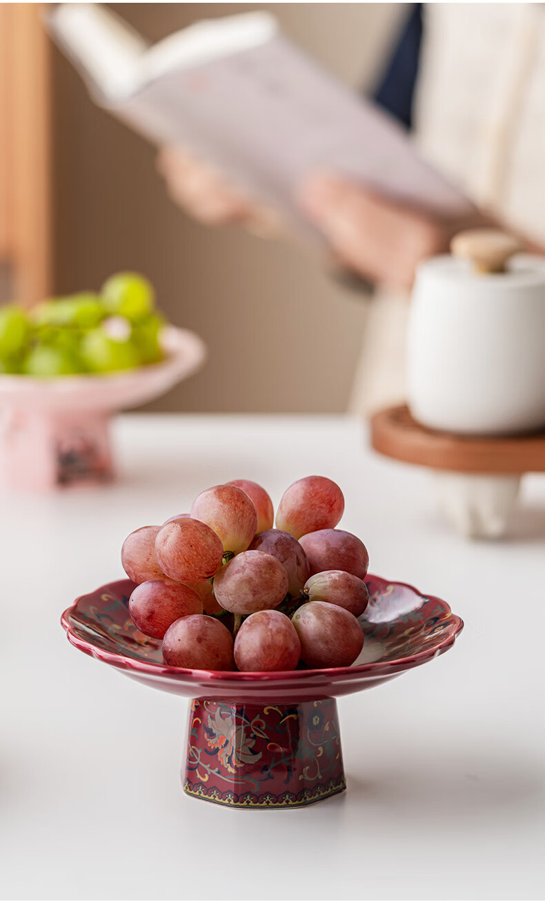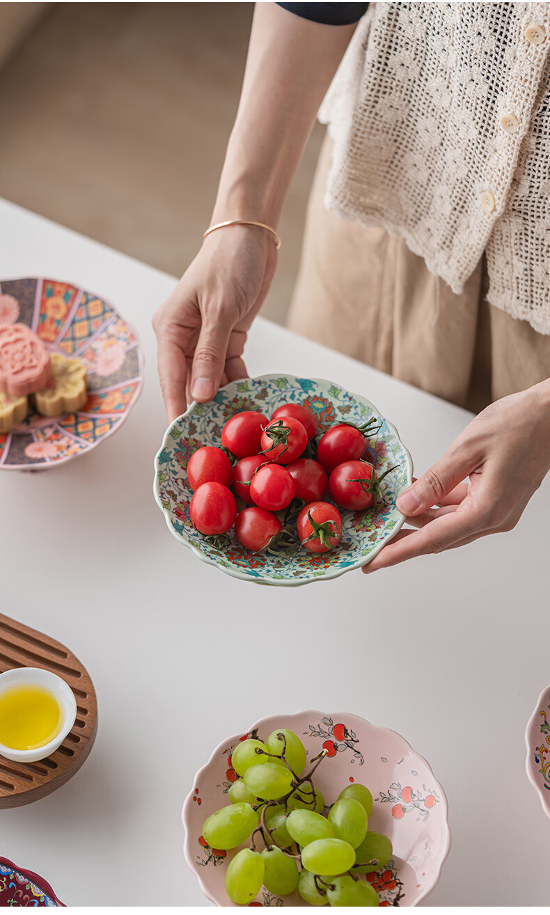 豪祥【现货直发】陶瓷果盘高端精致高颜值水果盘客厅茶几家用下午茶点 珐琅彩果盘-熊猫柿柿如意 无规格