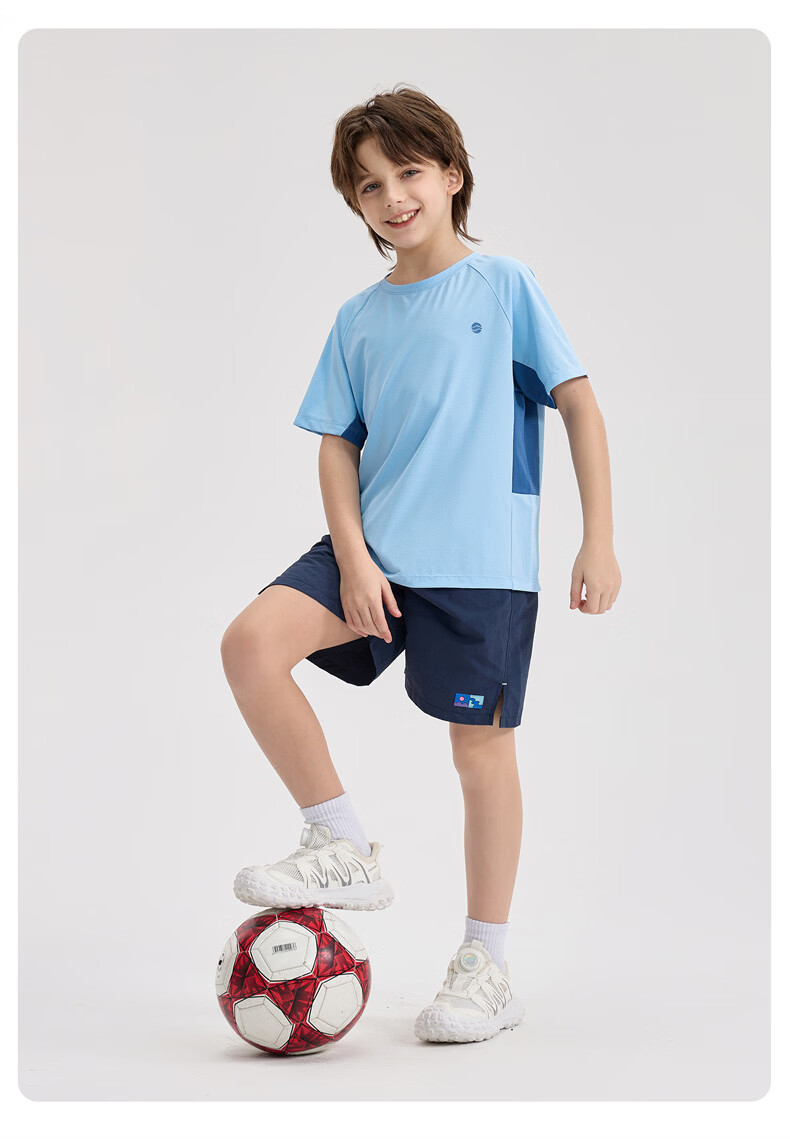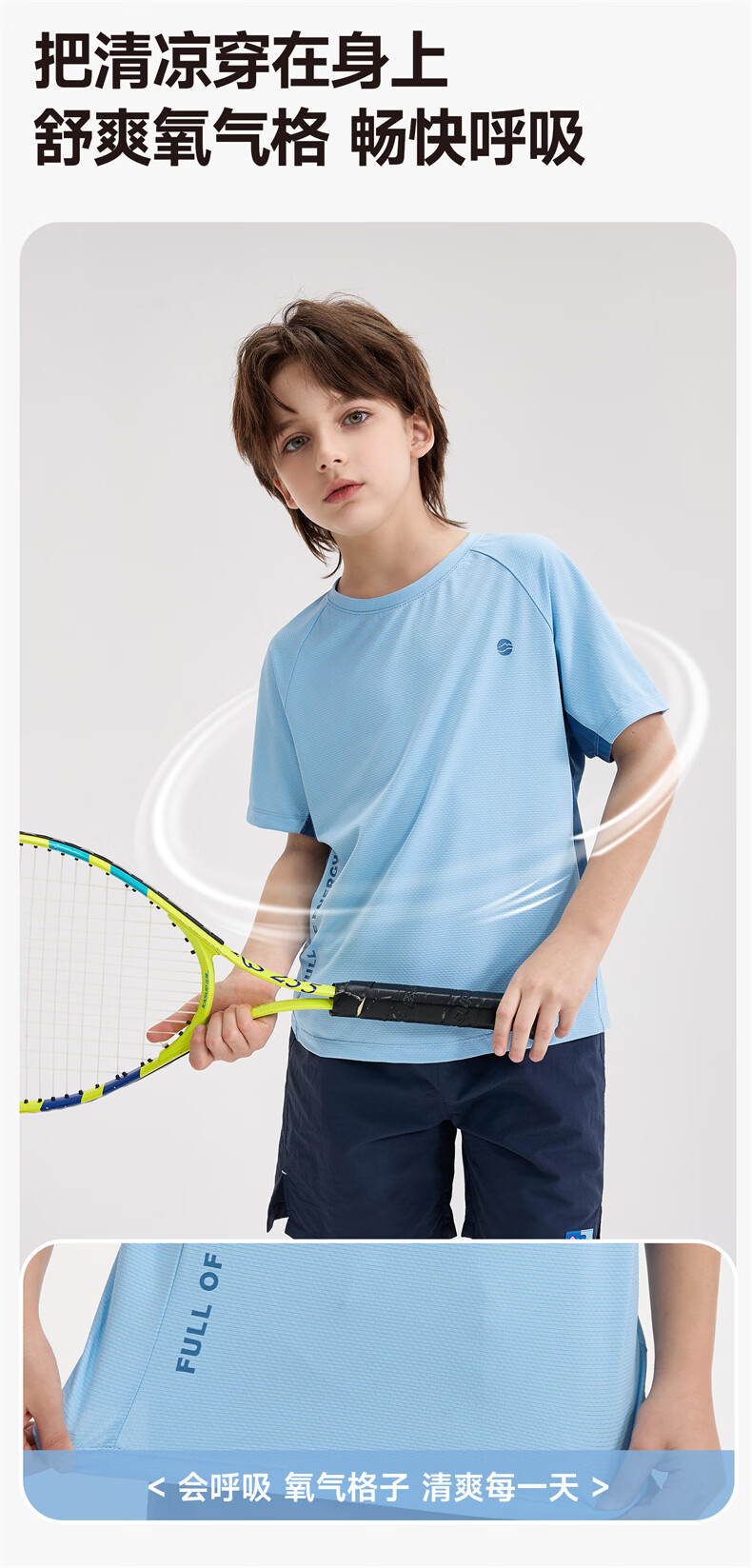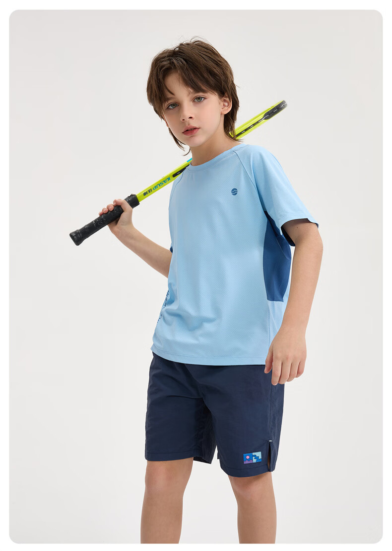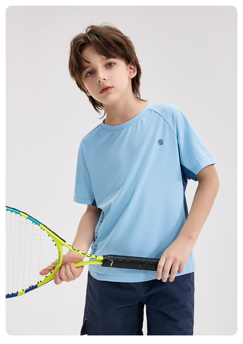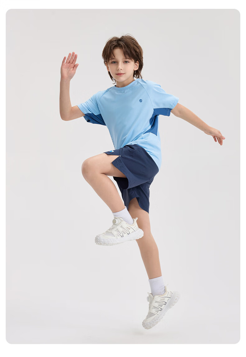 雪中飞儿童夏季短袖T恤2026新款男童女童运动网眼短袖上衣吸湿透气 蓝色 130