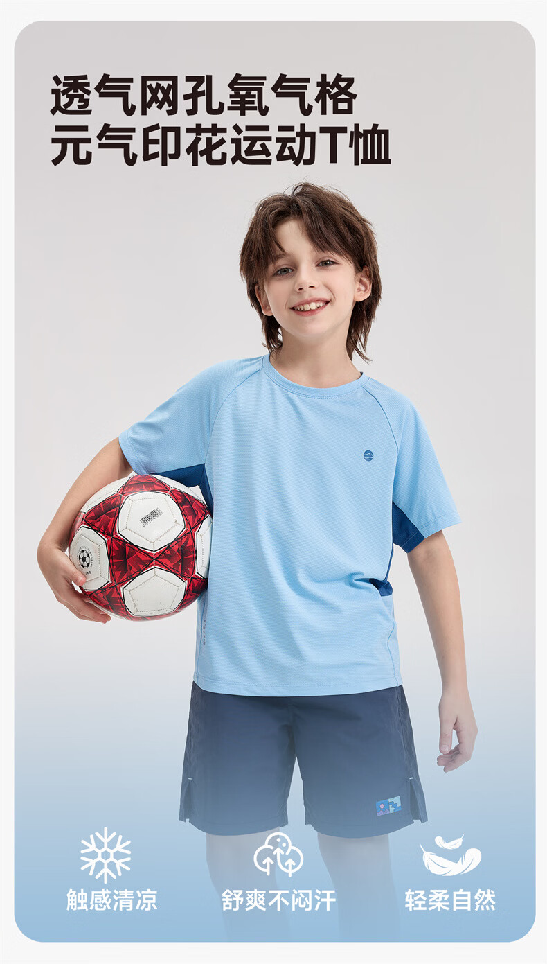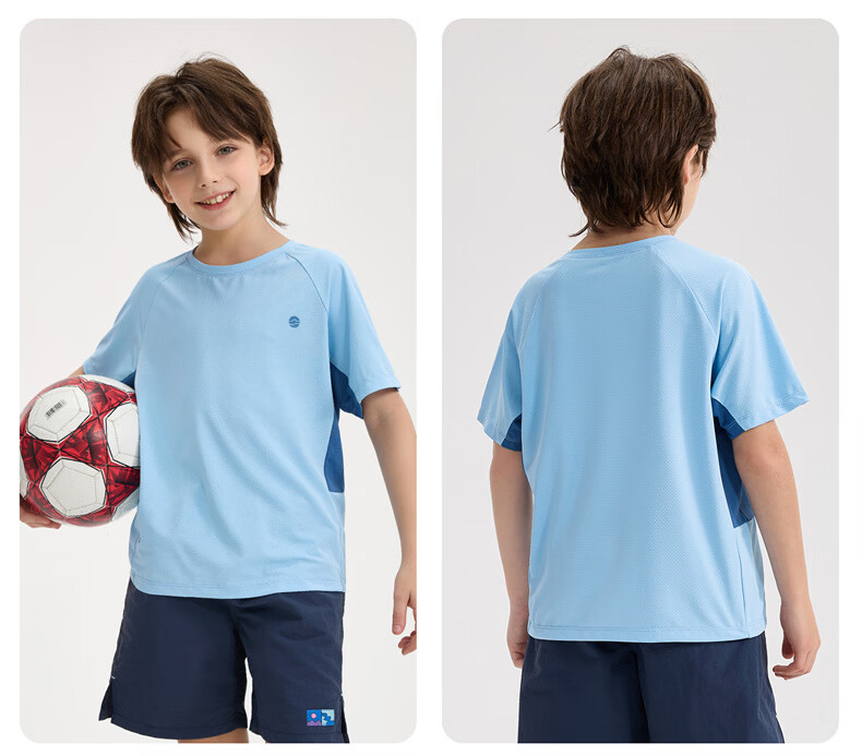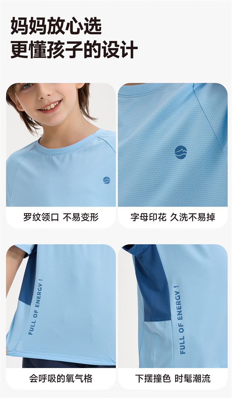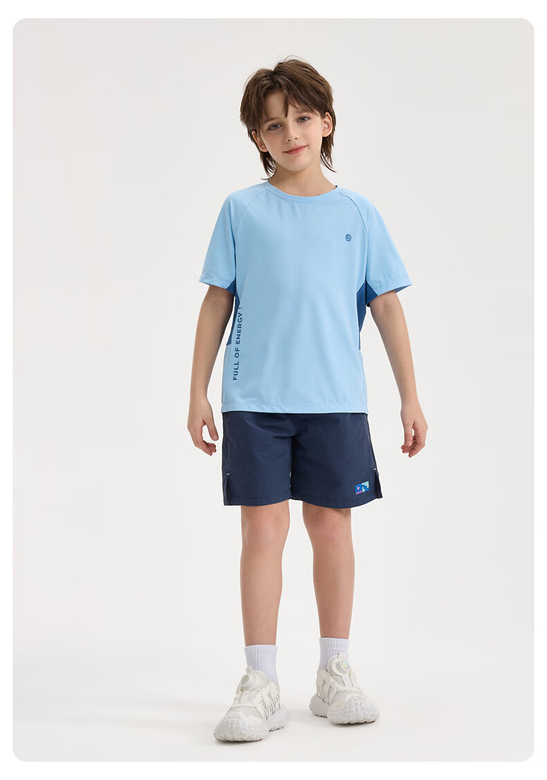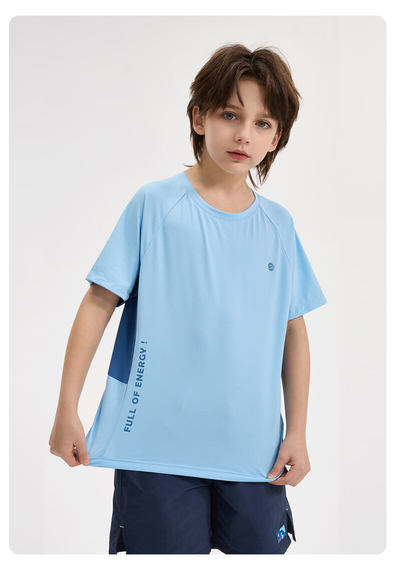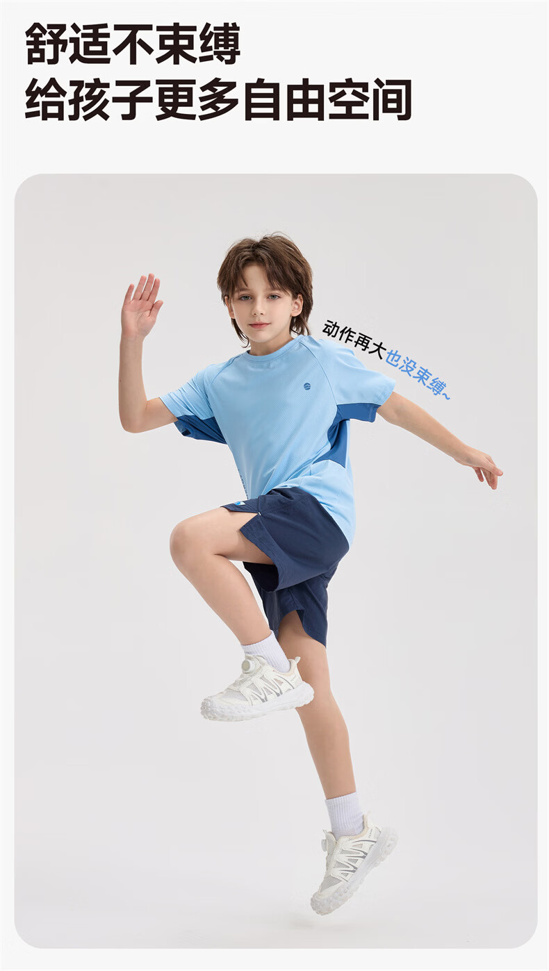 雪中飞儿童夏季短袖T恤2026新款男童女童运动网眼短袖上衣吸湿透气 蓝色 130