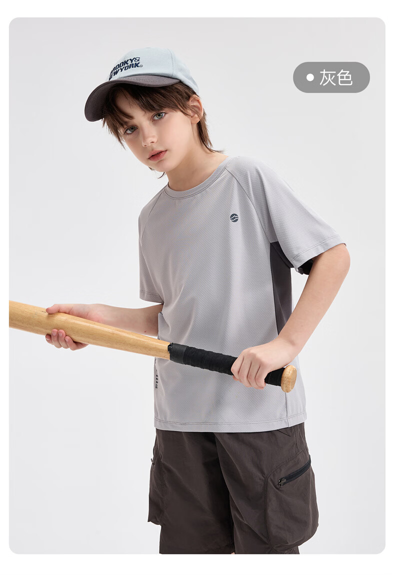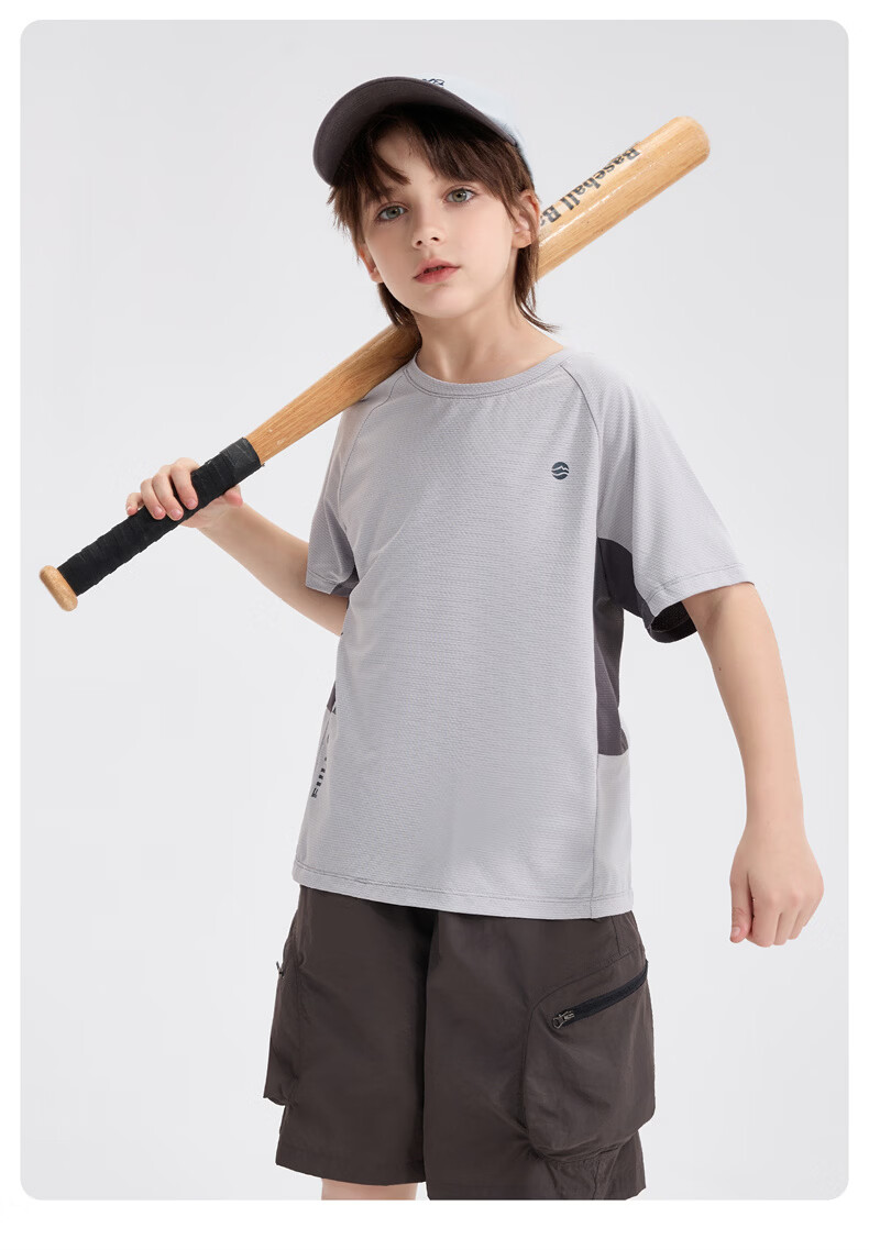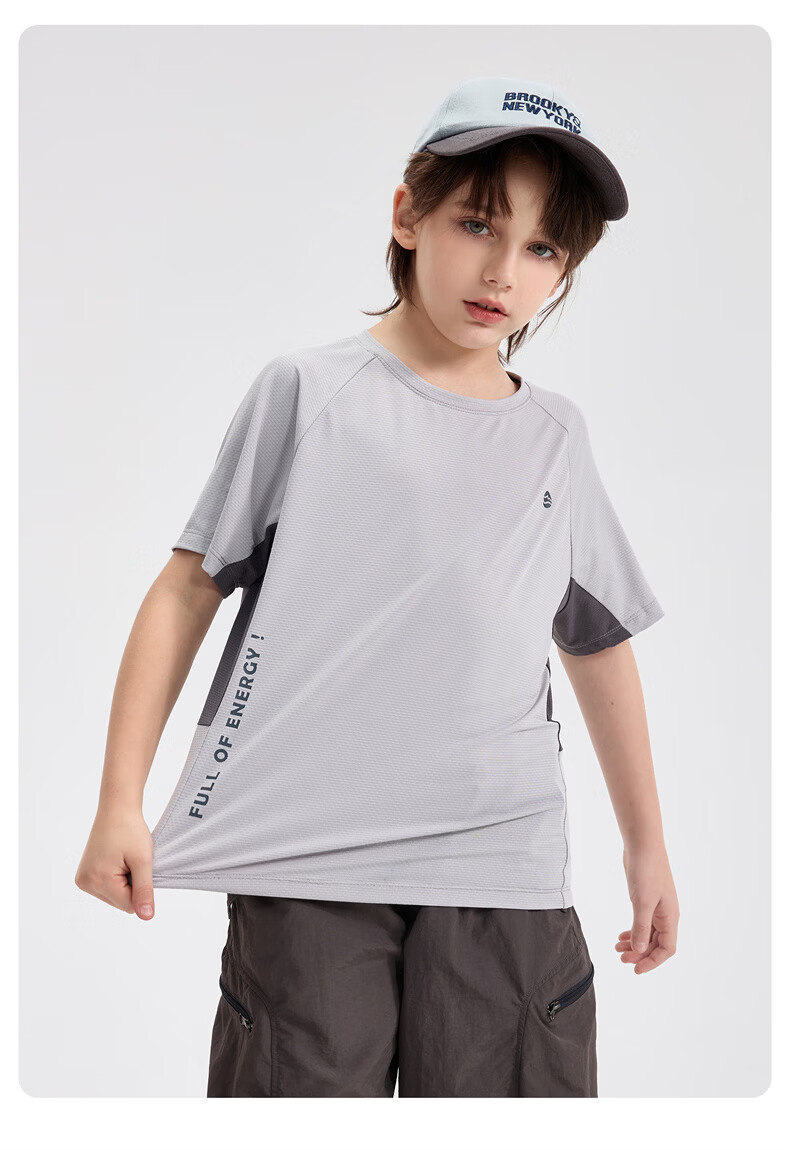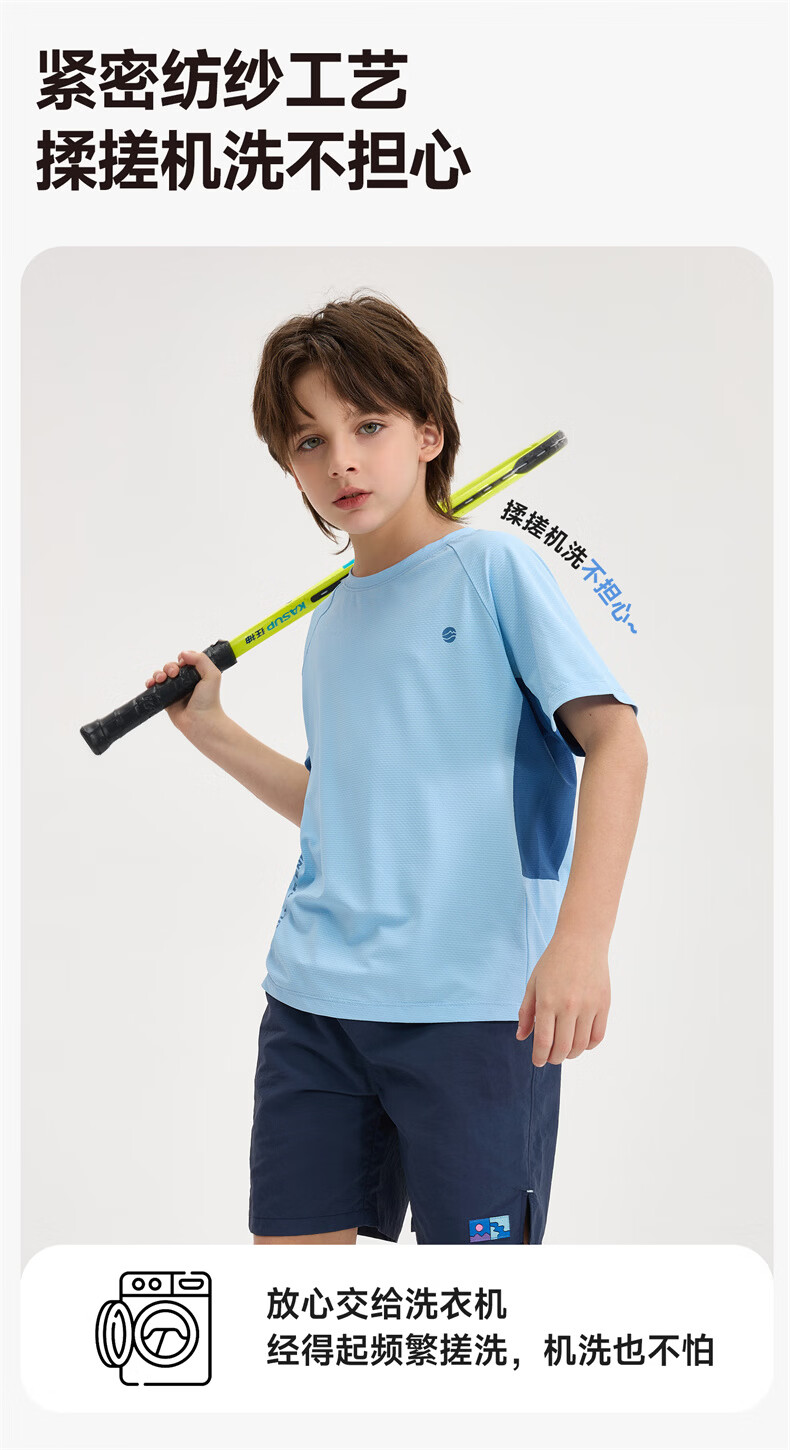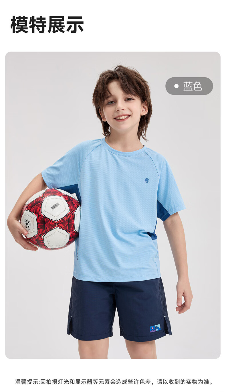 雪中飞儿童夏季短袖T恤2026新款男童女童运动网眼短袖上衣吸湿透气 蓝色 130