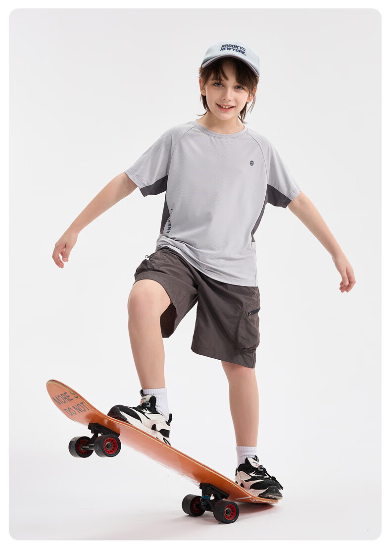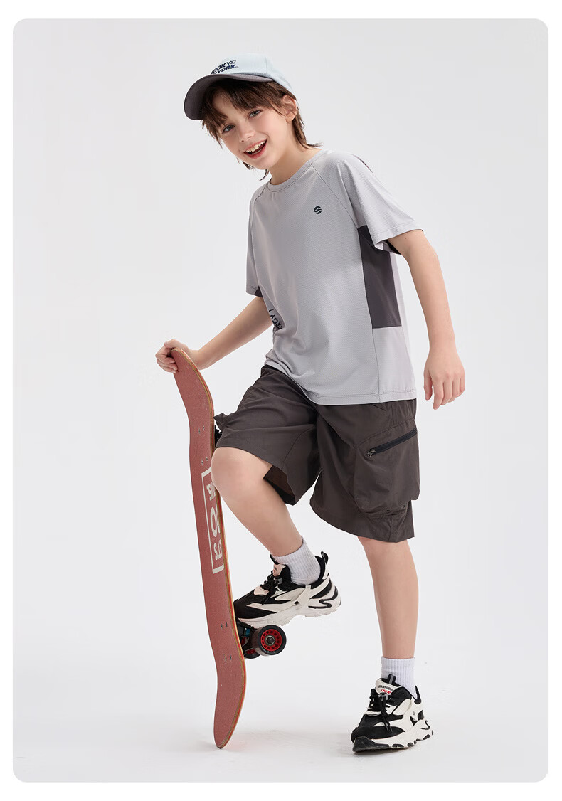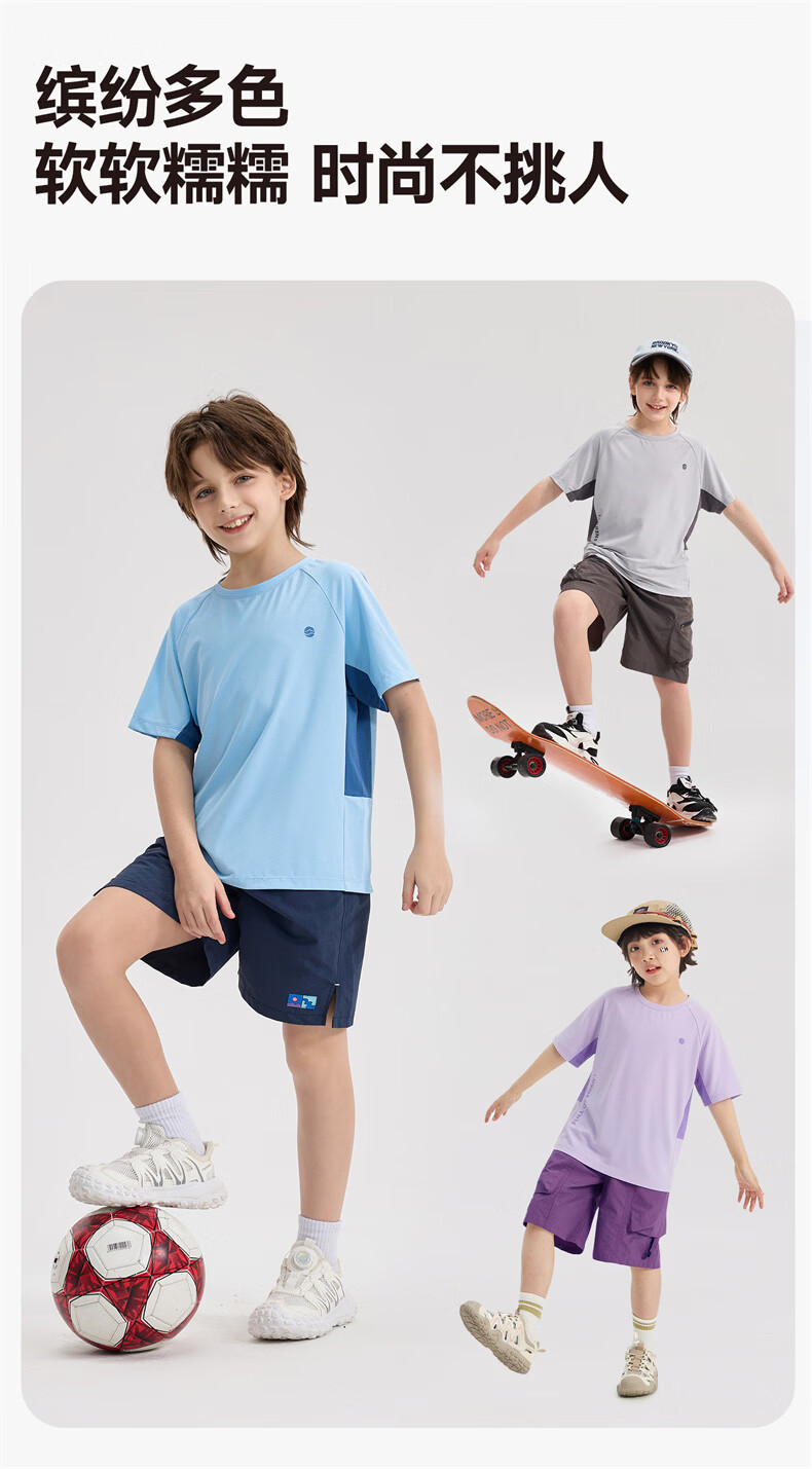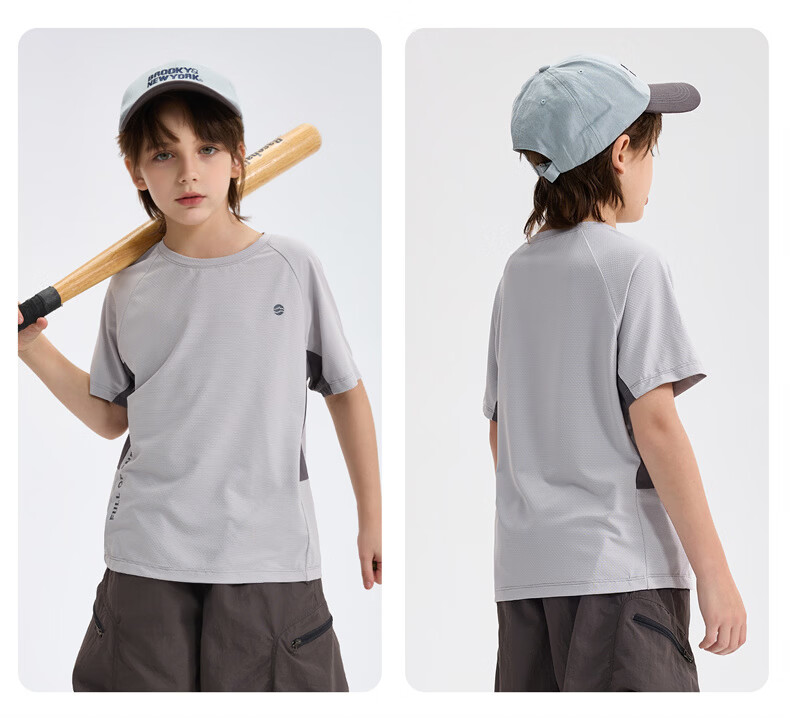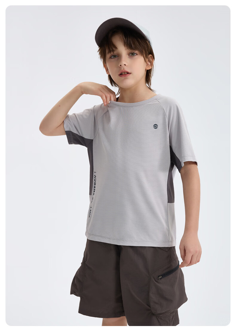 雪中飞儿童夏季短袖T恤2026新款男童女童运动网眼短袖上衣吸湿透气 蓝色 130