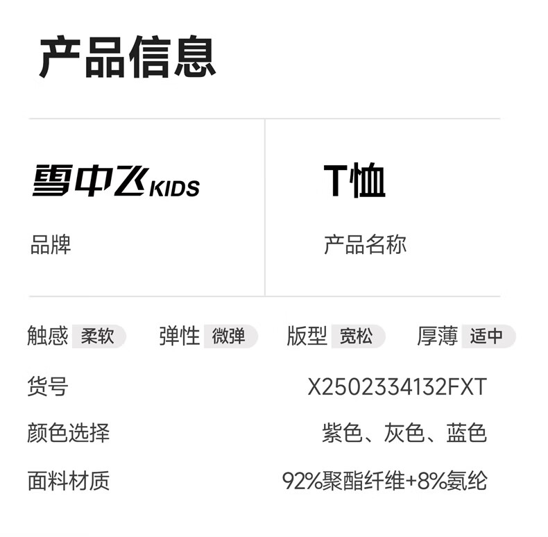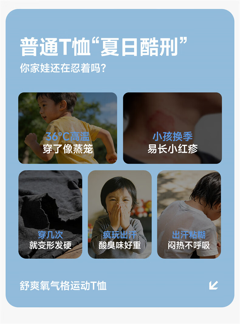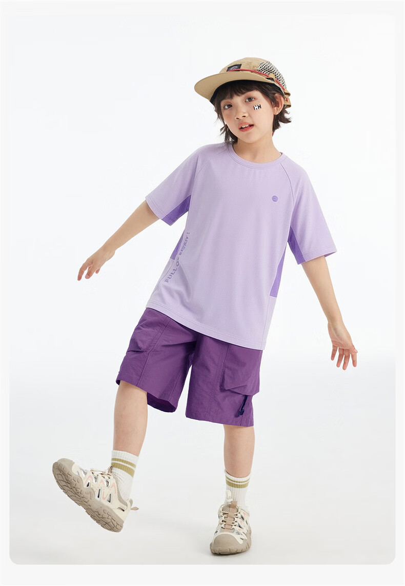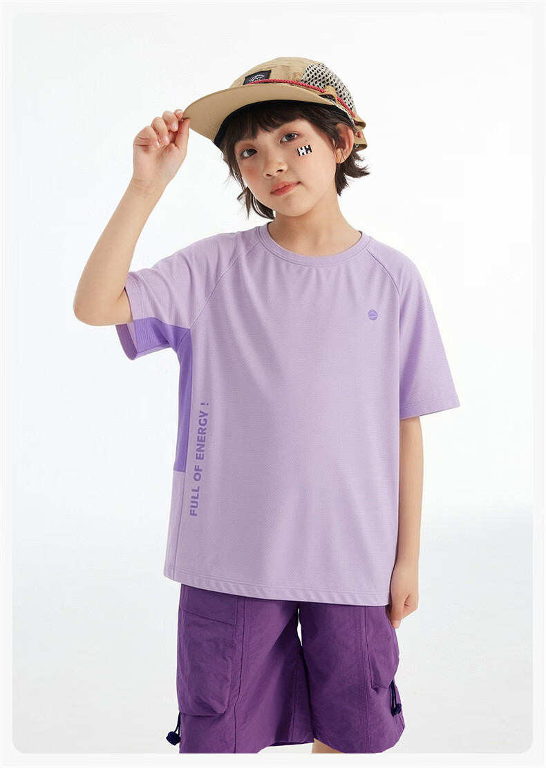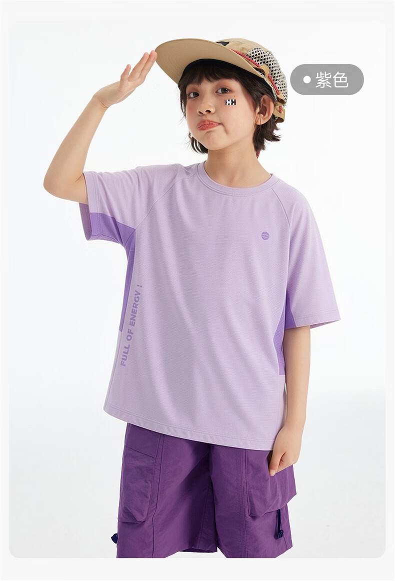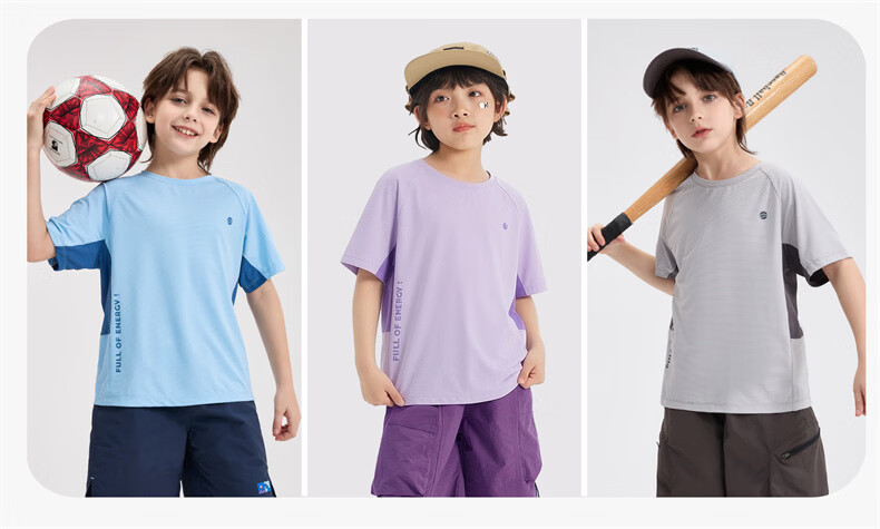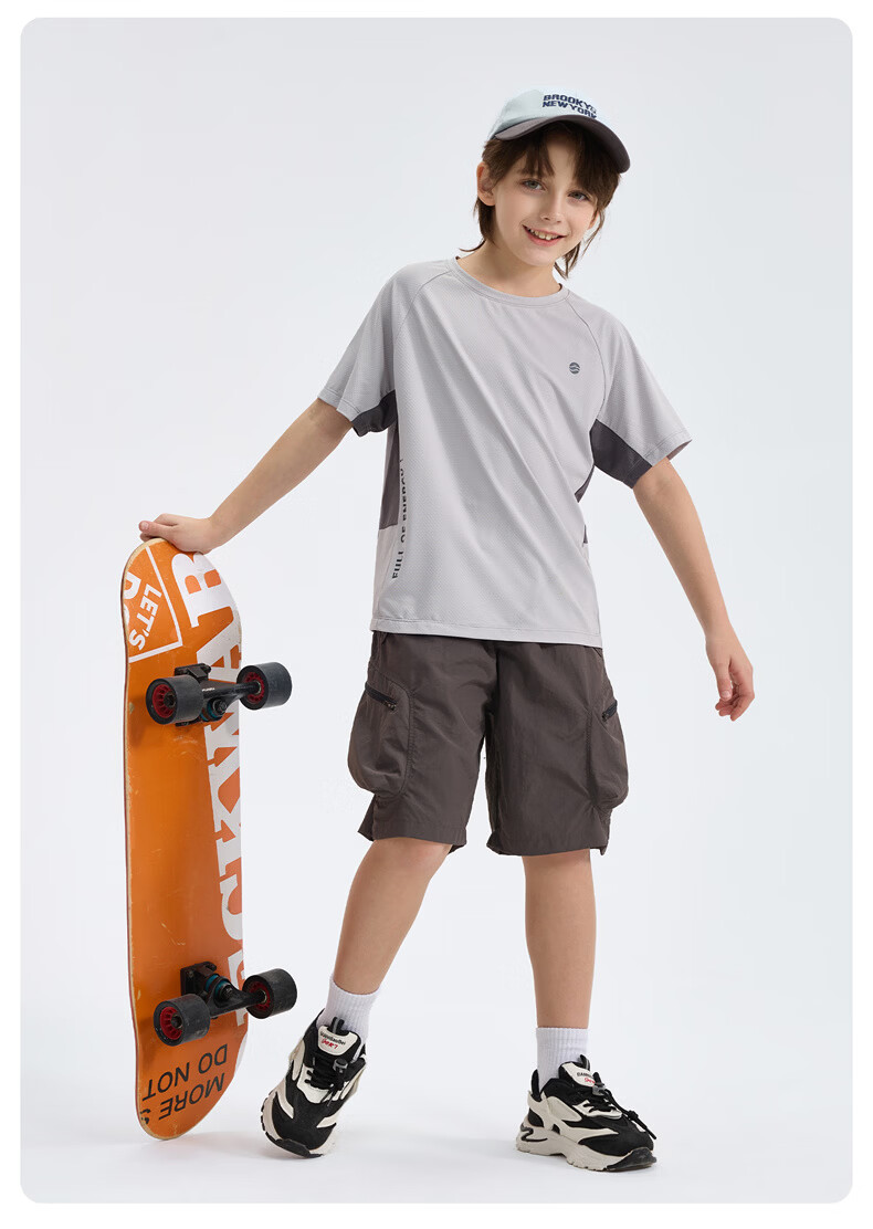 雪中飞儿童夏季短袖T恤2026新款男童女童运动网眼短袖上衣吸湿透气 蓝色 130