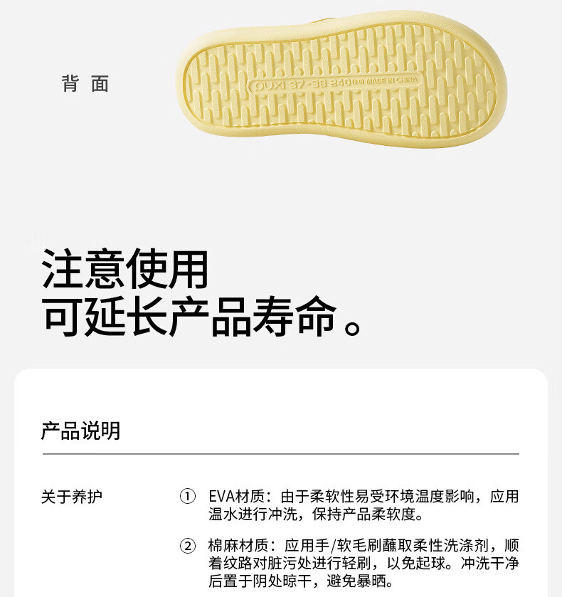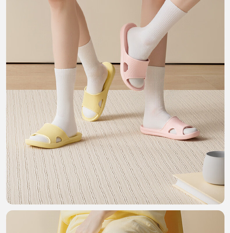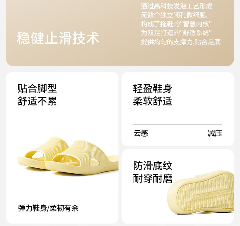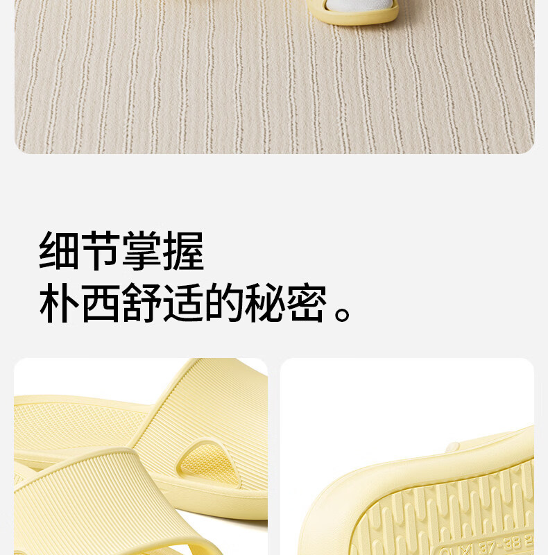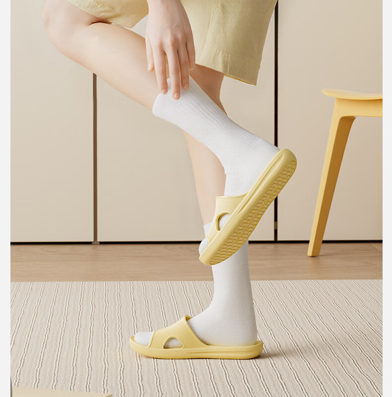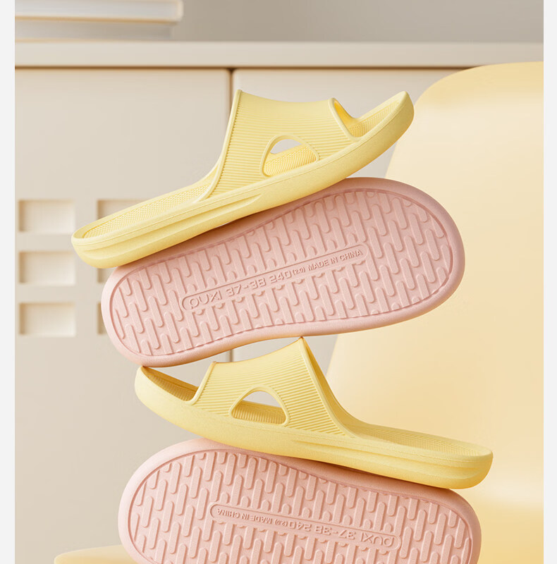 朴西云漫居家室内凉拖鞋时尚薄底春夏浴室防滑EVA可外穿凉拖鞋女 奶油黄 39-40