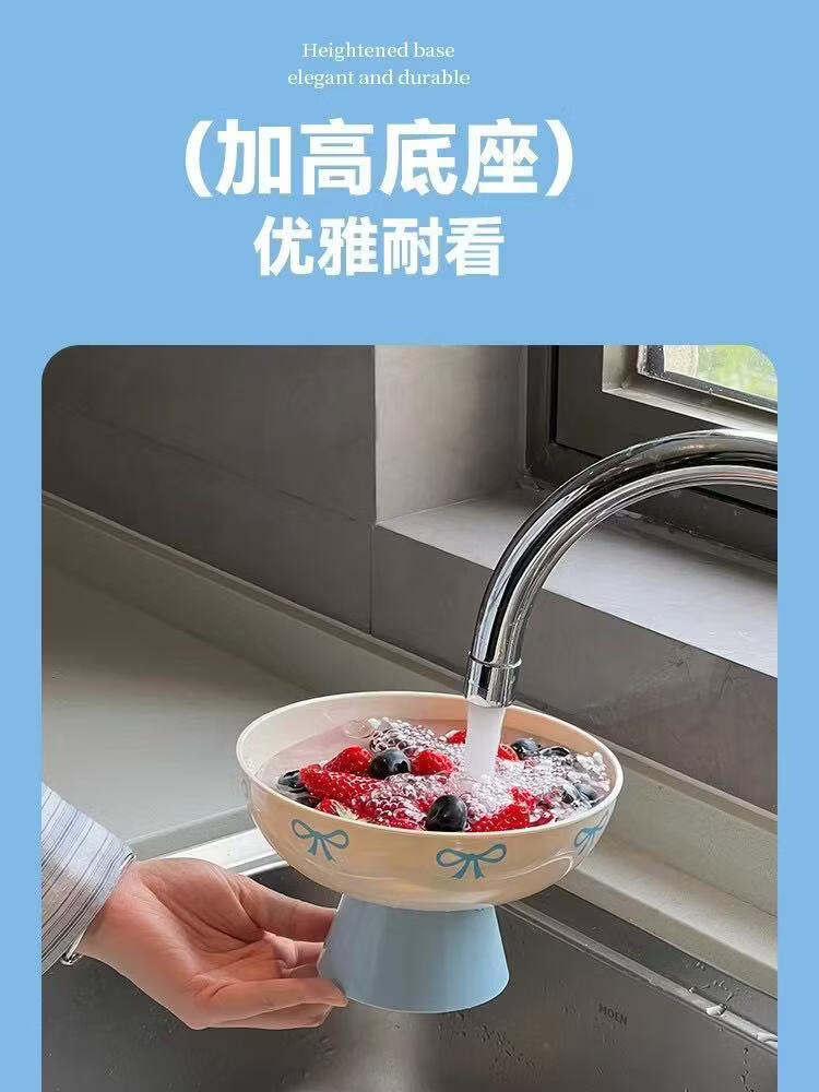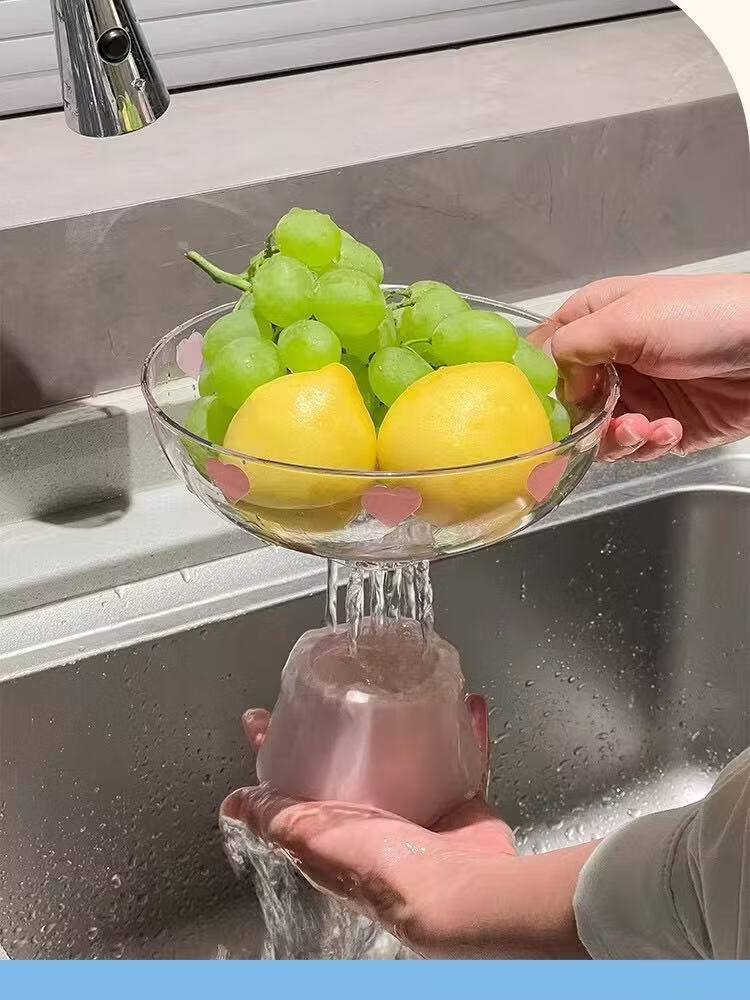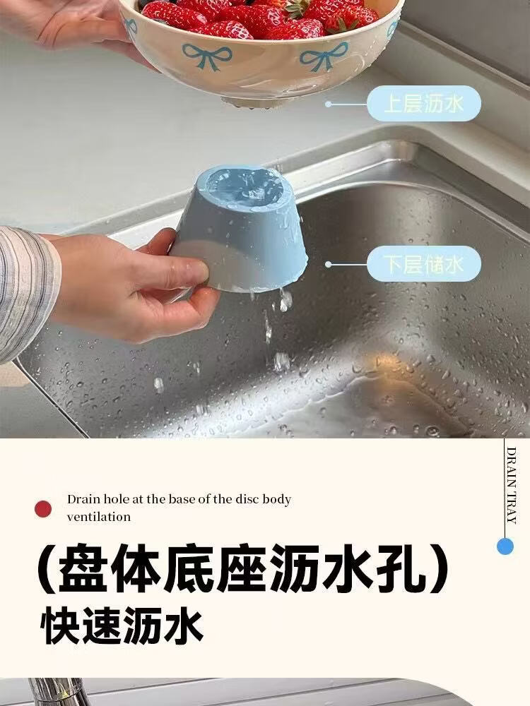 洋臣多巴胺水果盘客厅家用新款高颜值高档沥水托盘创意零食摆放盘 果盘 1层 带托盘 【颜色随机】2个装