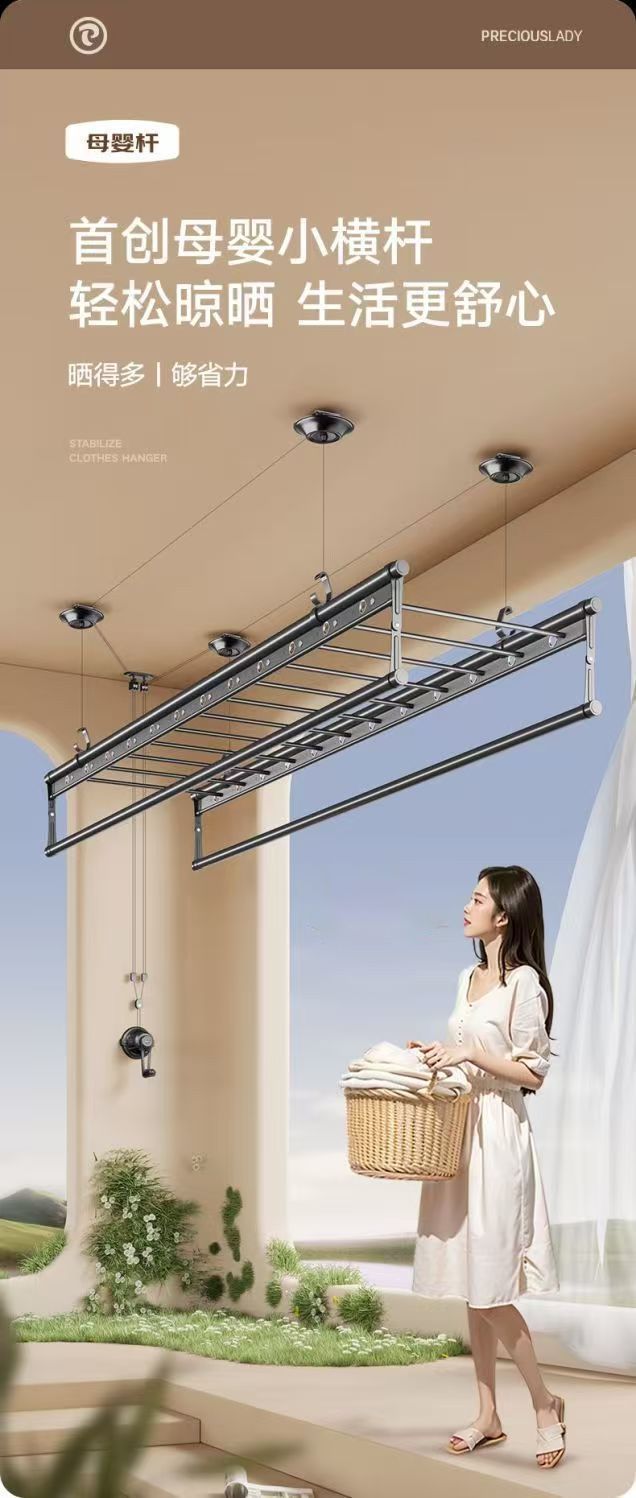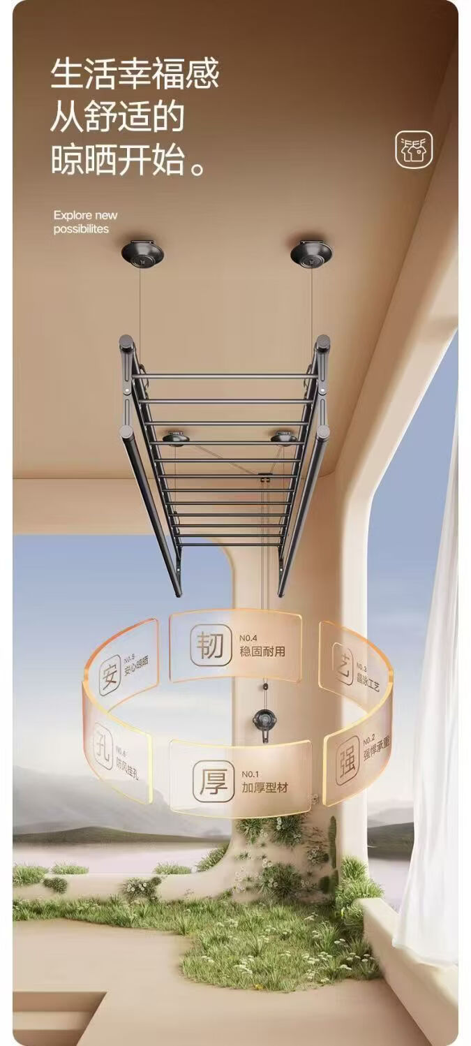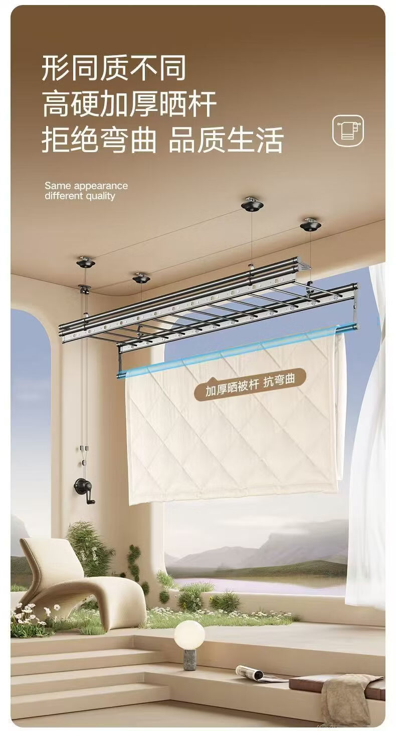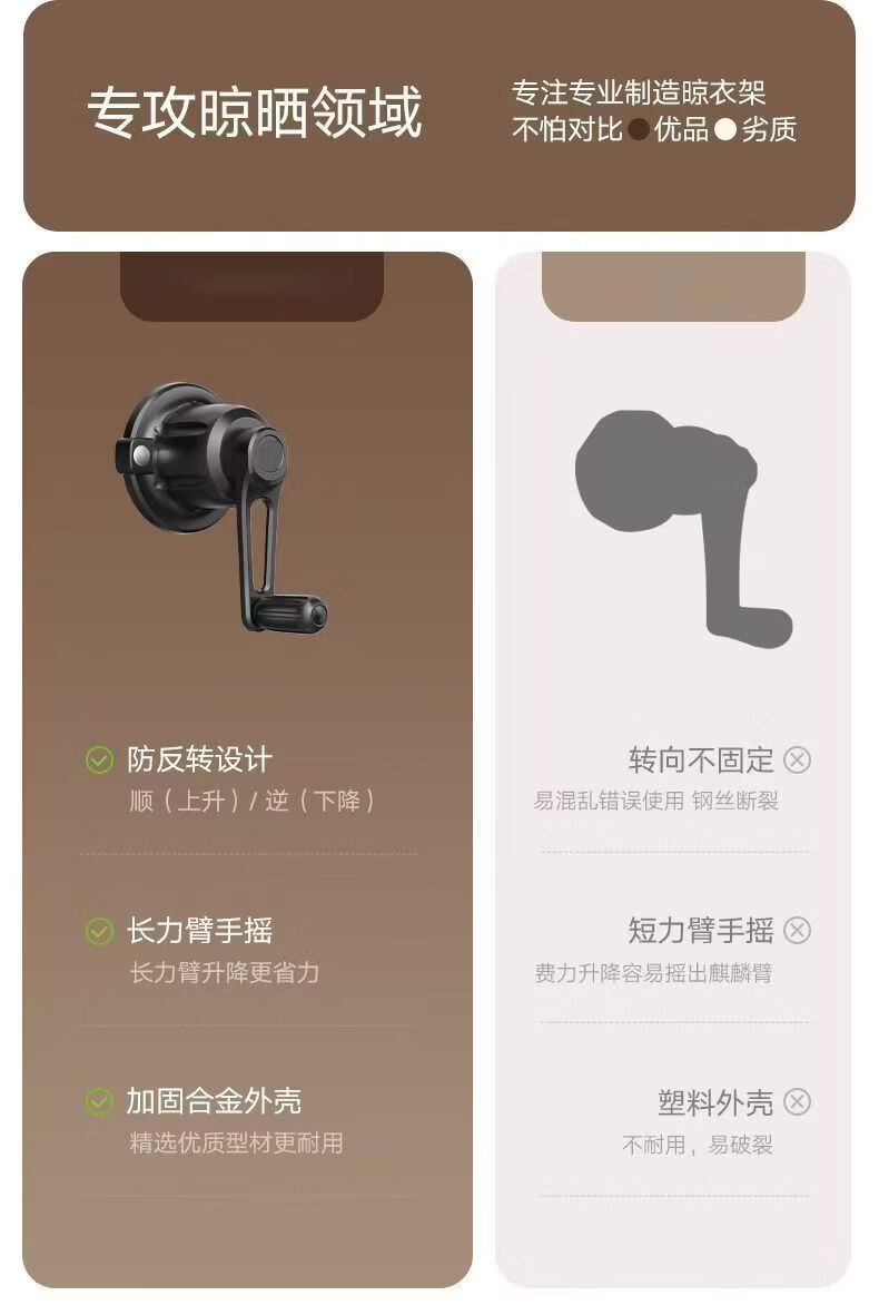 好太太京选晾衣架升降手摇可折叠晒衣架手动阳台室内伸缩晾衣杆 2.0米白色四杆 商家包安装