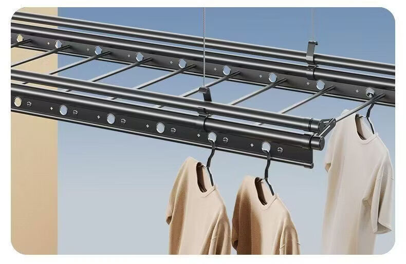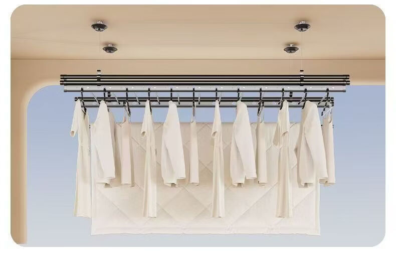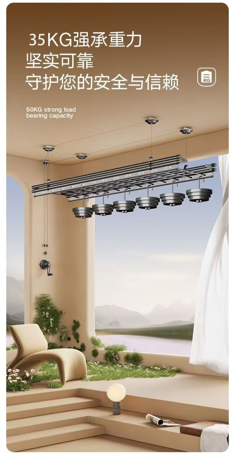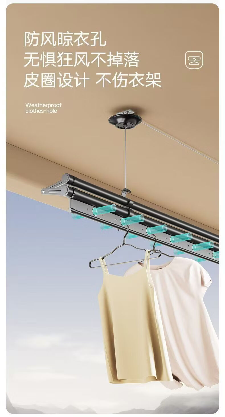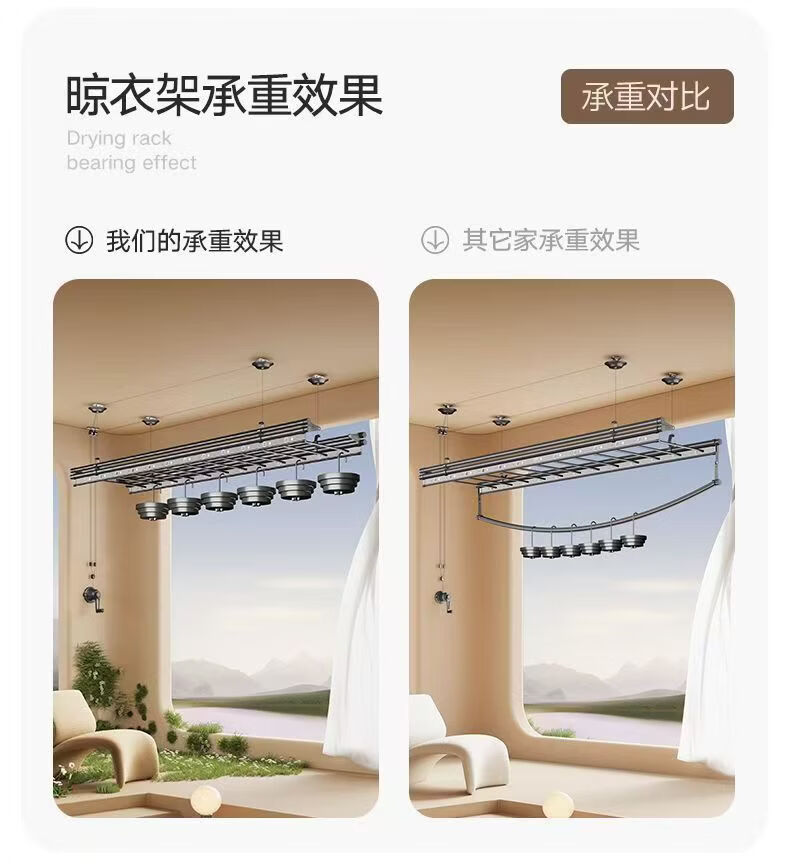 好太太京选晾衣架升降手摇可折叠晒衣架手动阳台室内伸缩晾衣杆 2.0米白色四杆 商家包安装