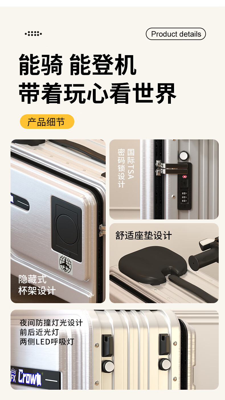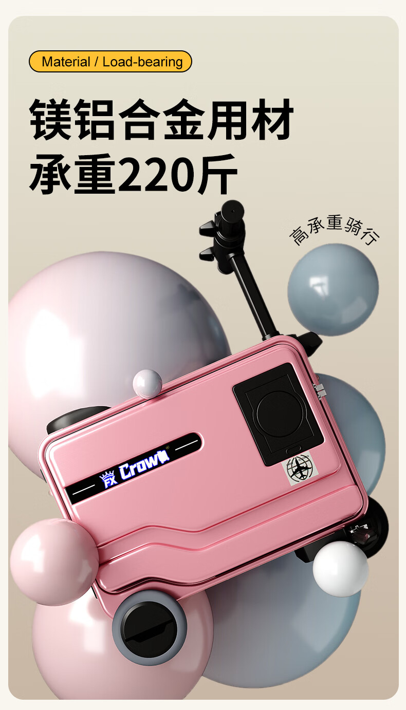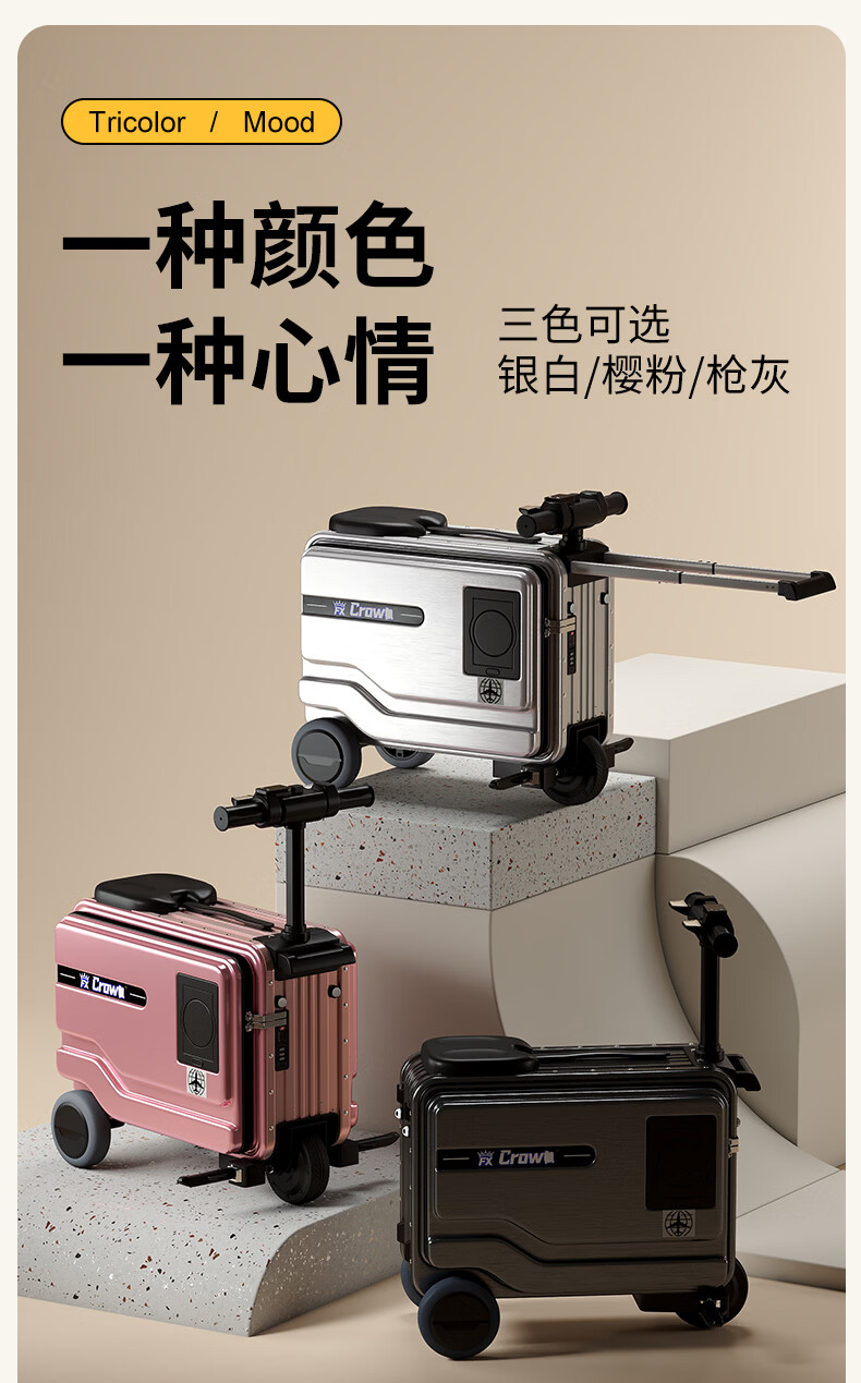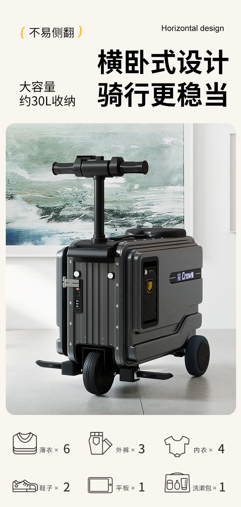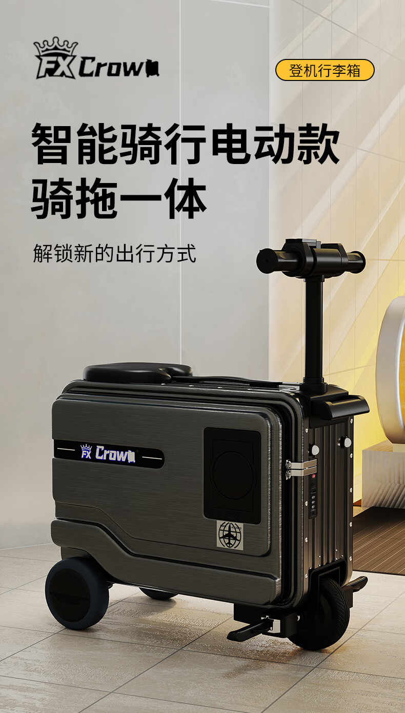 FX CROWN电动行李箱可骑行拉杆登机箱铝框可坐智能代步遛娃20英寸旅行箱 2个电池【骑行20公里+承重220斤】可登机 20英寸 墨绿色