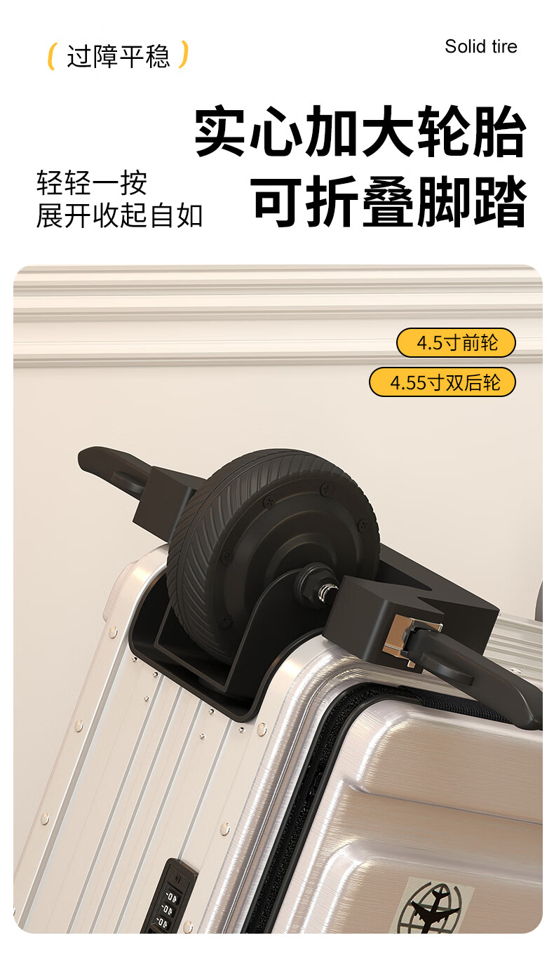 新秀丽可登机箱可扩展行李箱出国留学密码旅行商务出差拉杆箱银色20英寸