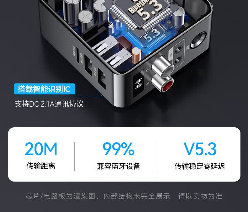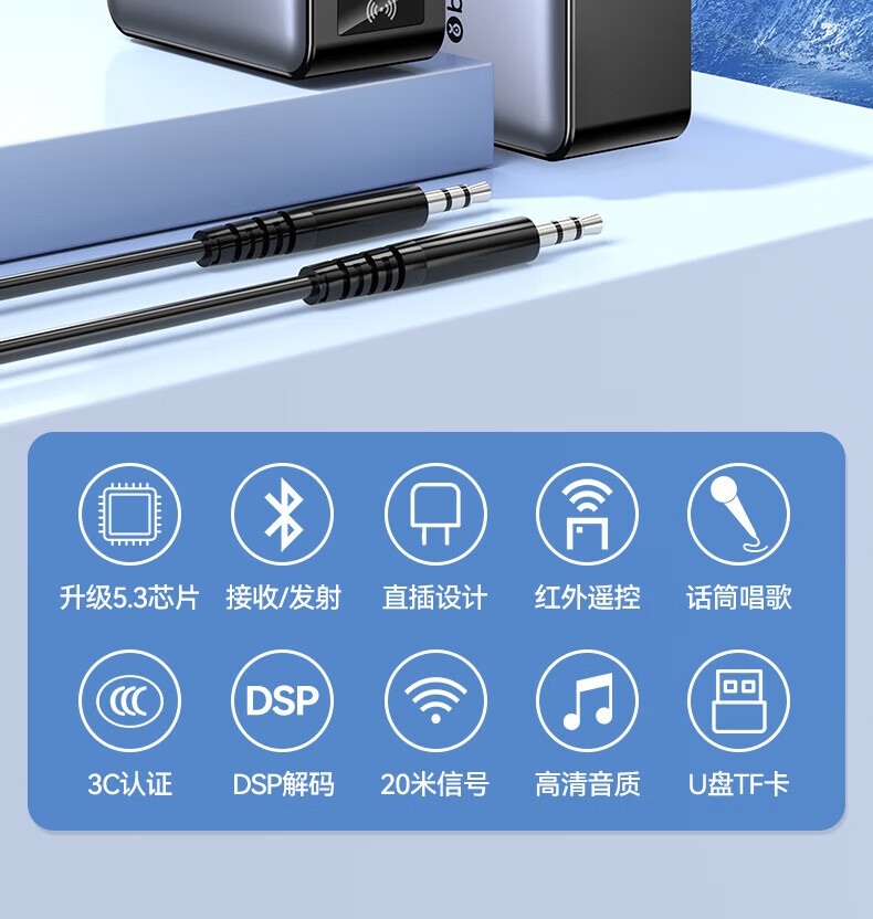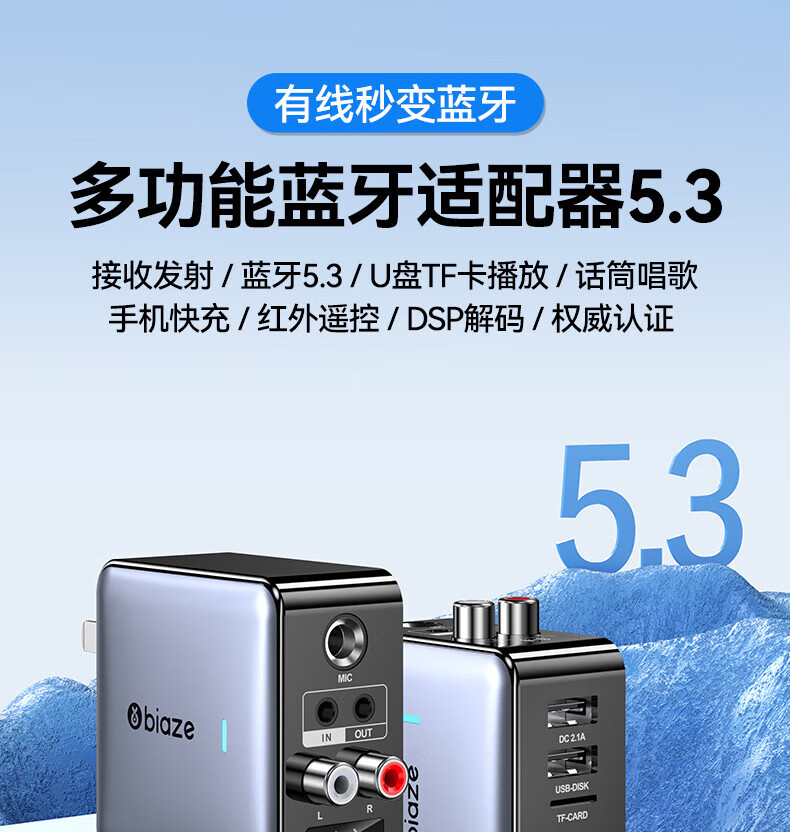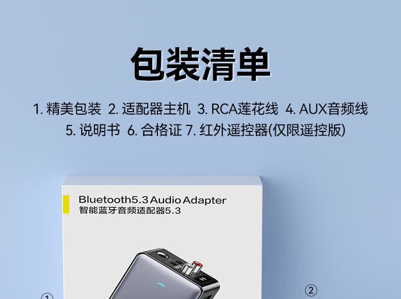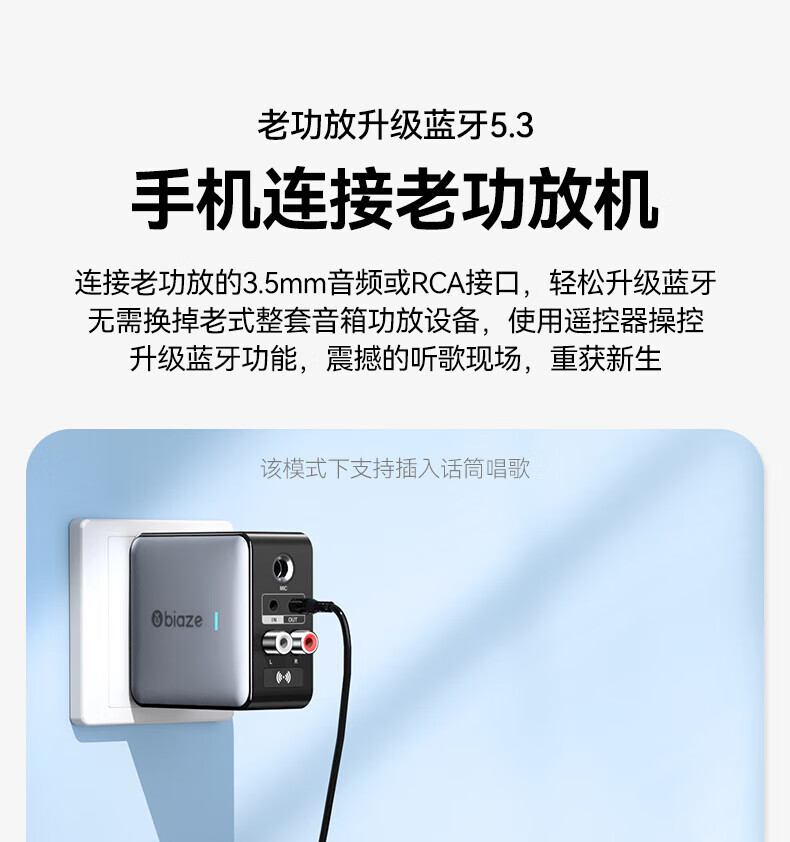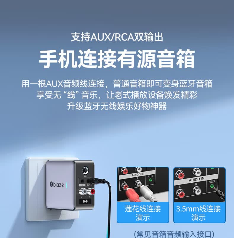 毕亚兹蓝牙接收器5.3适配器转音箱aux接老式功放 无损立体声无线转接台式电脑笔记本电视机音频发射器 升级5.3蓝牙(DSP解码/遥控器)