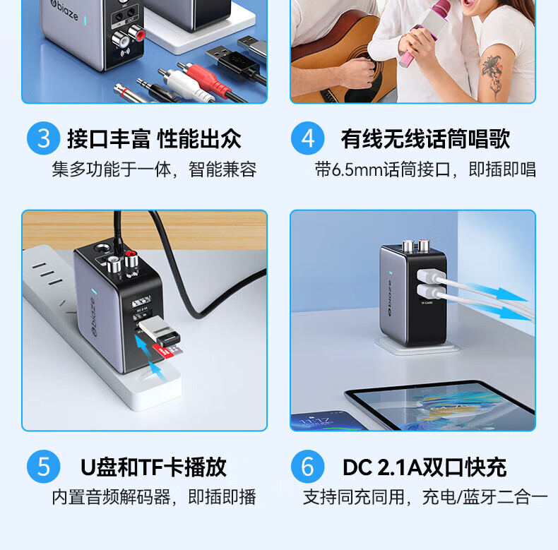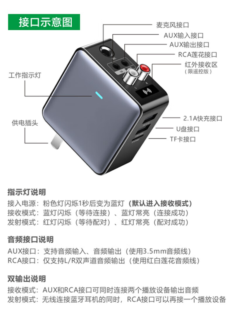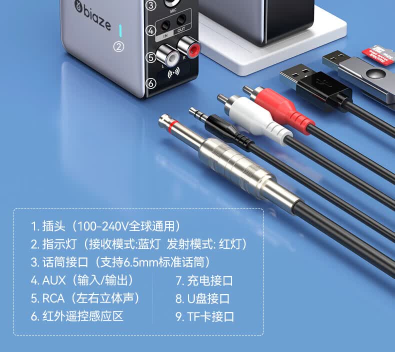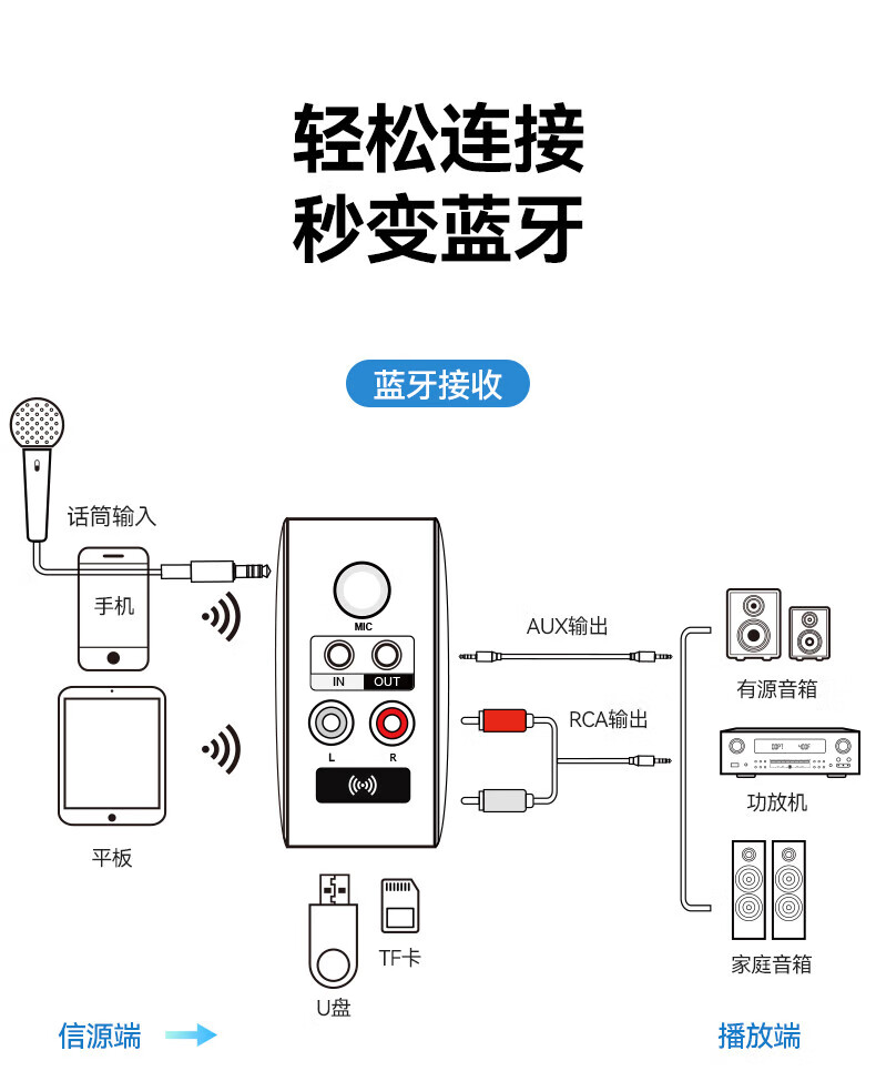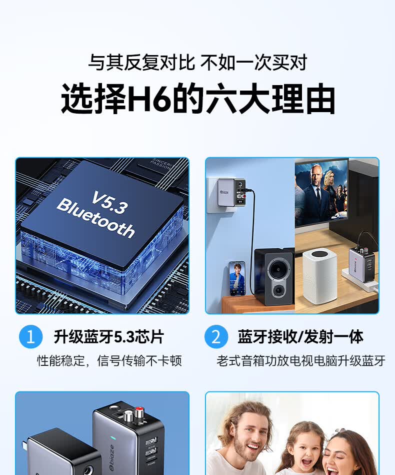 毕亚兹蓝牙接收器5.3适配器转音箱aux接老式功放 无损立体声无线转接台式电脑笔记本电视机音频发射器 升级5.3蓝牙(DSP解码/遥控器)