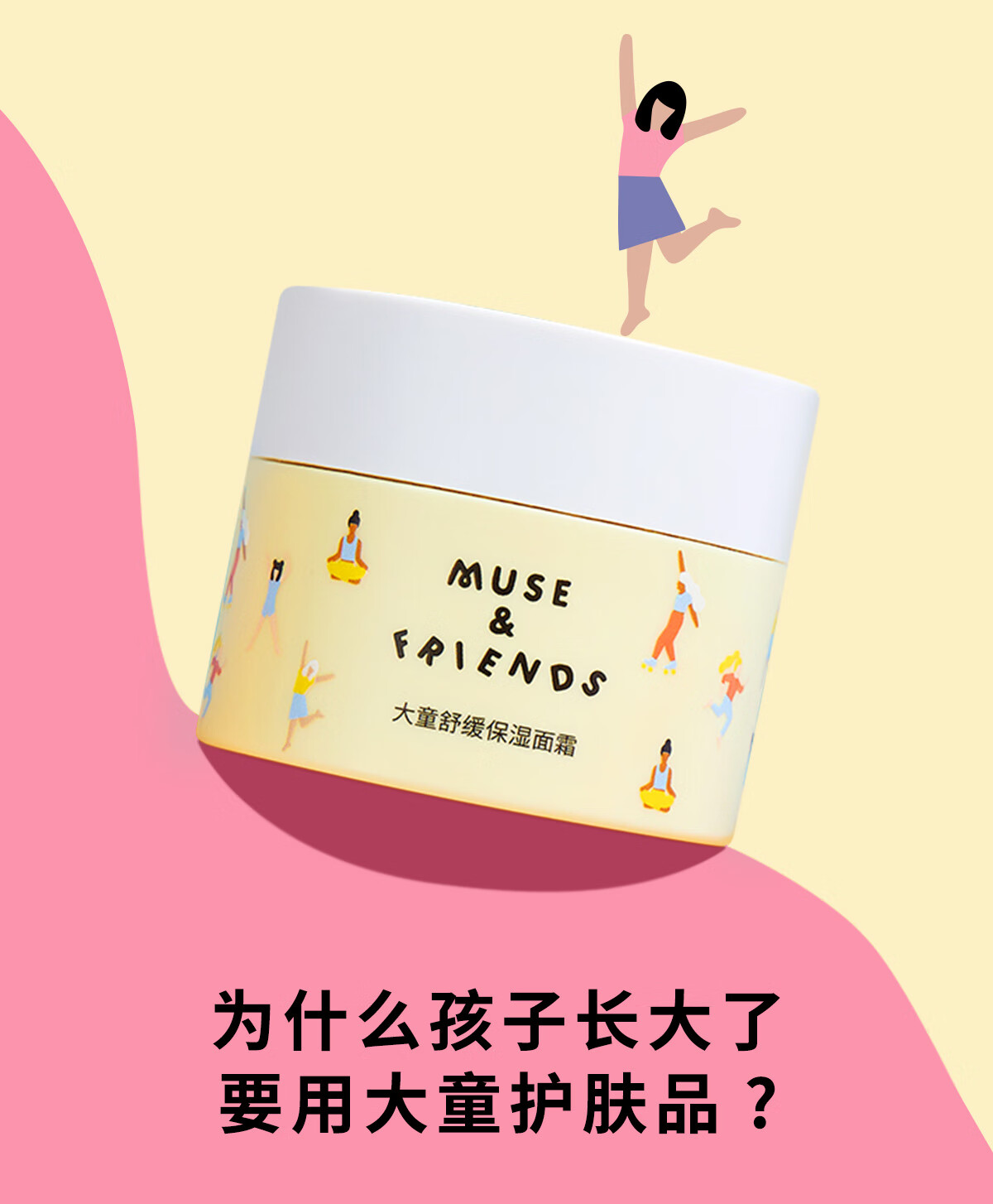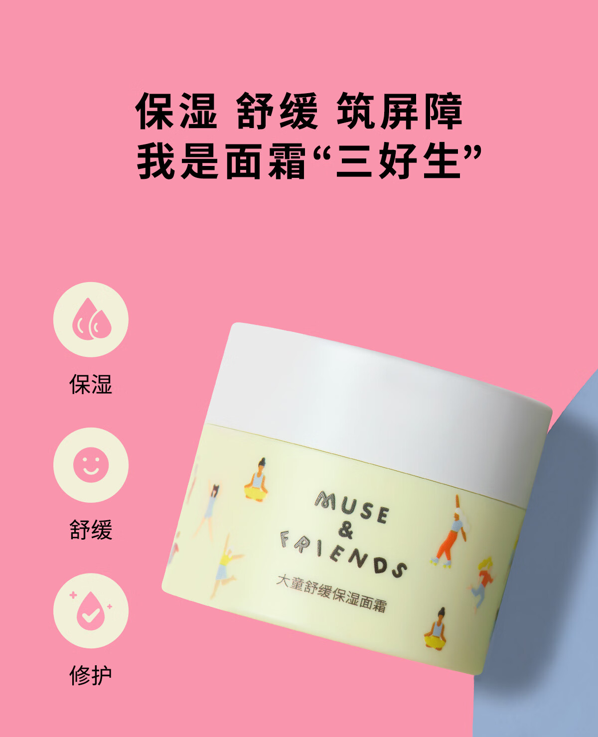 MUSE&FRIENDS儿童舒缓保湿面霜 大童轻盈补水滋润5-6岁以上宝宝润肤霜春夏季 四季通用 儿童舒缓保湿面霜50g【清爽版】